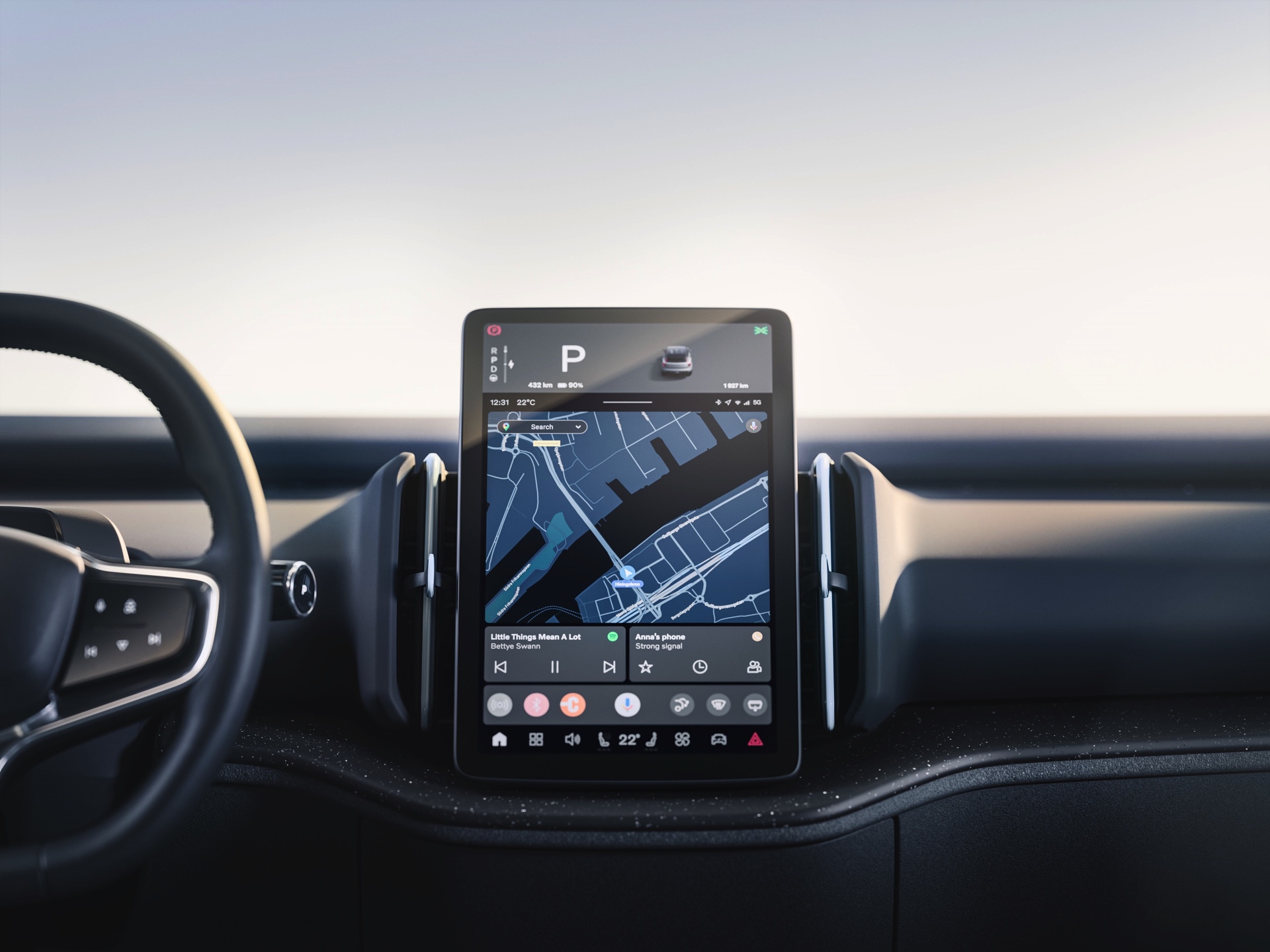 Zur Attraktivität des Volvo EX30 trägt auch seine klare Design-Sprache bei, die typisch-skandinavische Elemente modern interpretiert. Im auf das Wesentliche reduzierten Innenraum konzentrieren sich alle Anzeigen auf ein zentrales Display, das wie ein Tablet senkrecht in der Mitte des Armaturenträgers platziert ist. In gewisser Weise könnte man diesen Look als kantige Variation des neuen MINI-Interieurs sehen, das mit einem großen runden Center Display auch im neuen MINI Countryman (U25) zu sehen sein wird – und dieser wird in seiner Elektro-Ausführung ebenfalls zu den Rivalen des EX30 zählen.