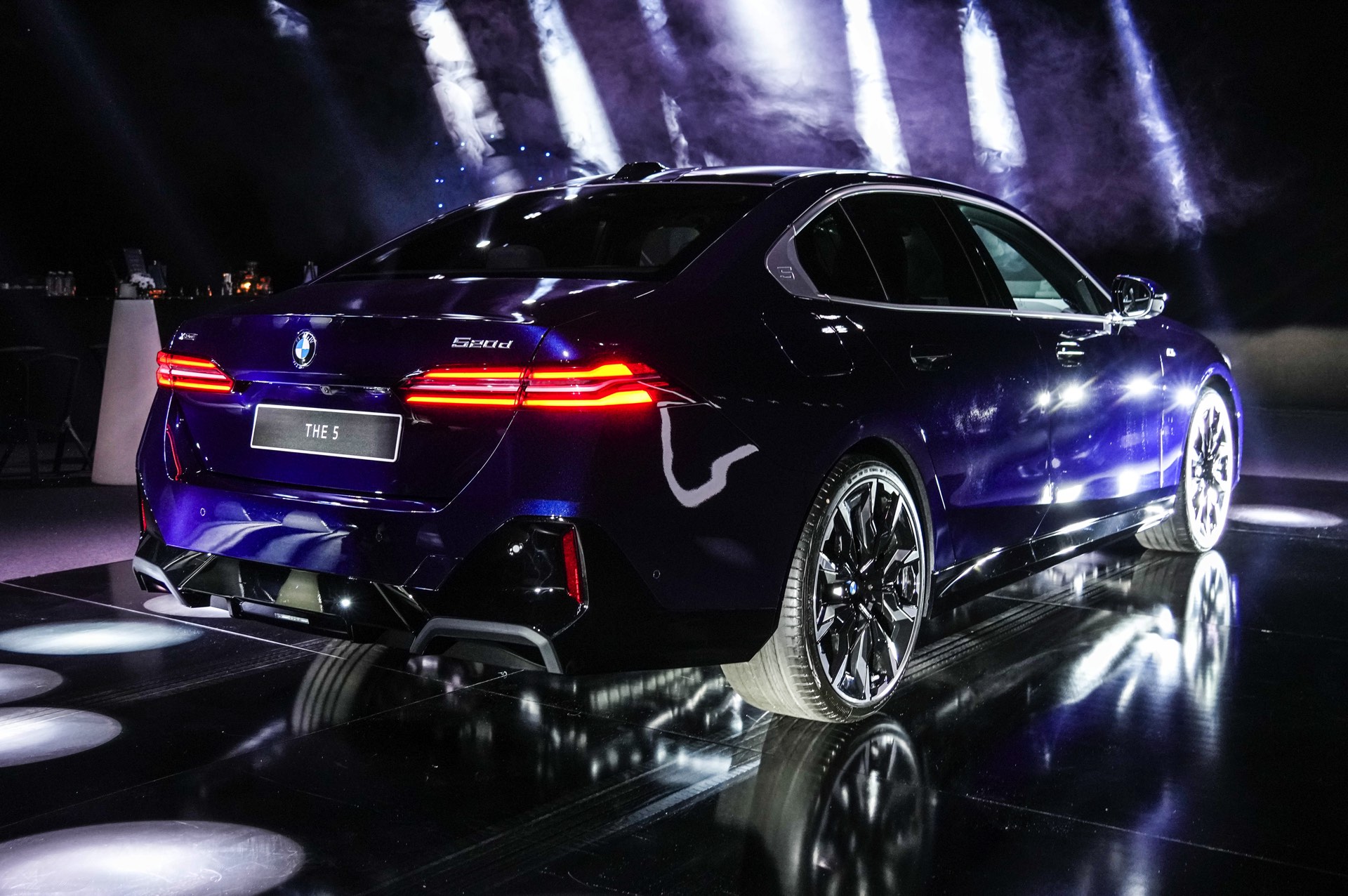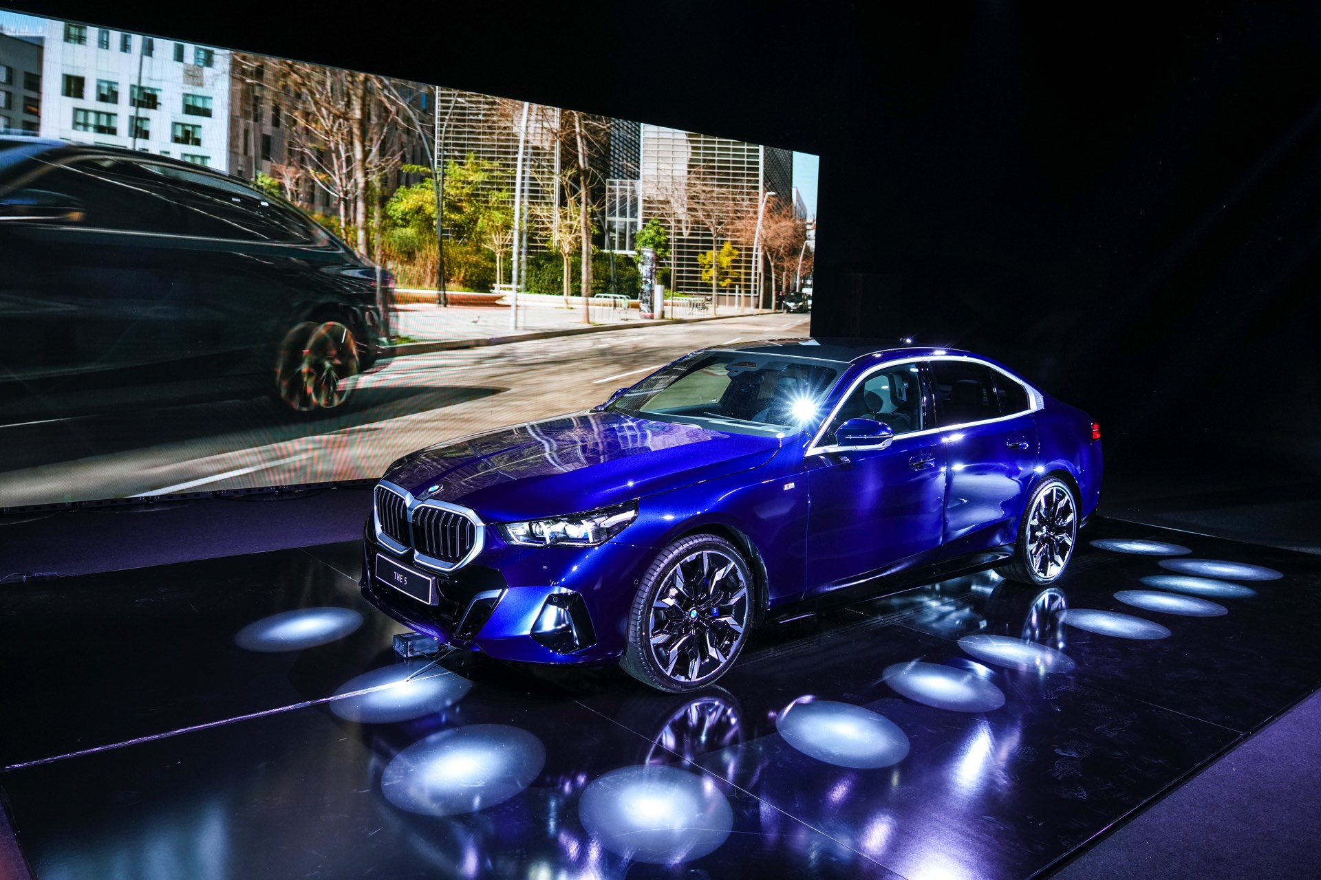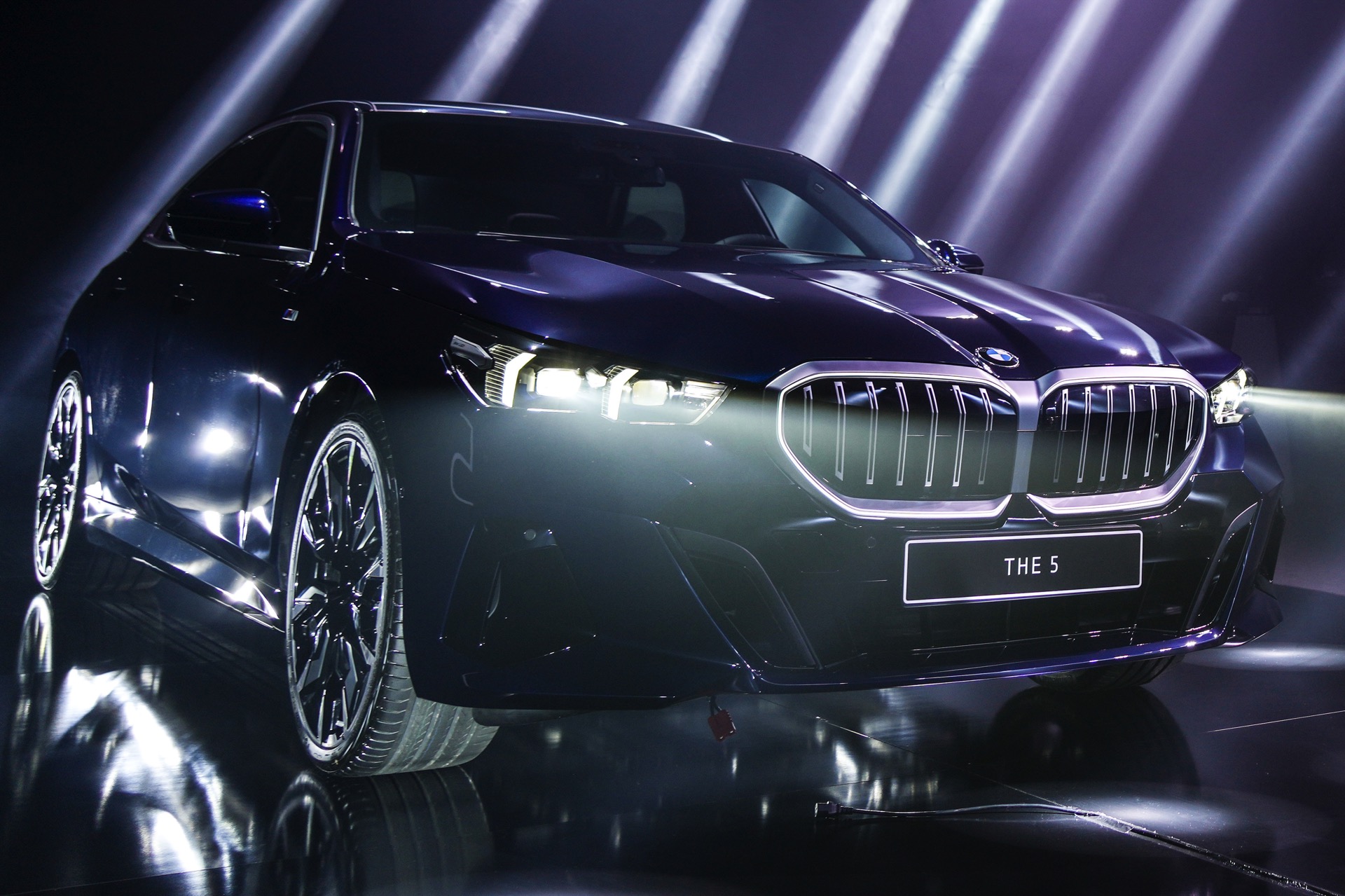 Auf den aktuellen Fotos von der G60-Premiere in Bulgarien sehen wir den BMW 5er mit M Sport-Paket und Lackierung in Tansanitblau Metallic. In den Radhäusern sehen wir die markanten BMW Individual Aerodynamikräder 954 I Bicolor Jetblack im 21-Zoll-Format und dank der aufwändigen Beleuchtung erhalten wir auch einen weiteren guten Eindruck vom Nacht-Design inklusive der Iconic Glow-Niere mit beleuchteter Einfassung.