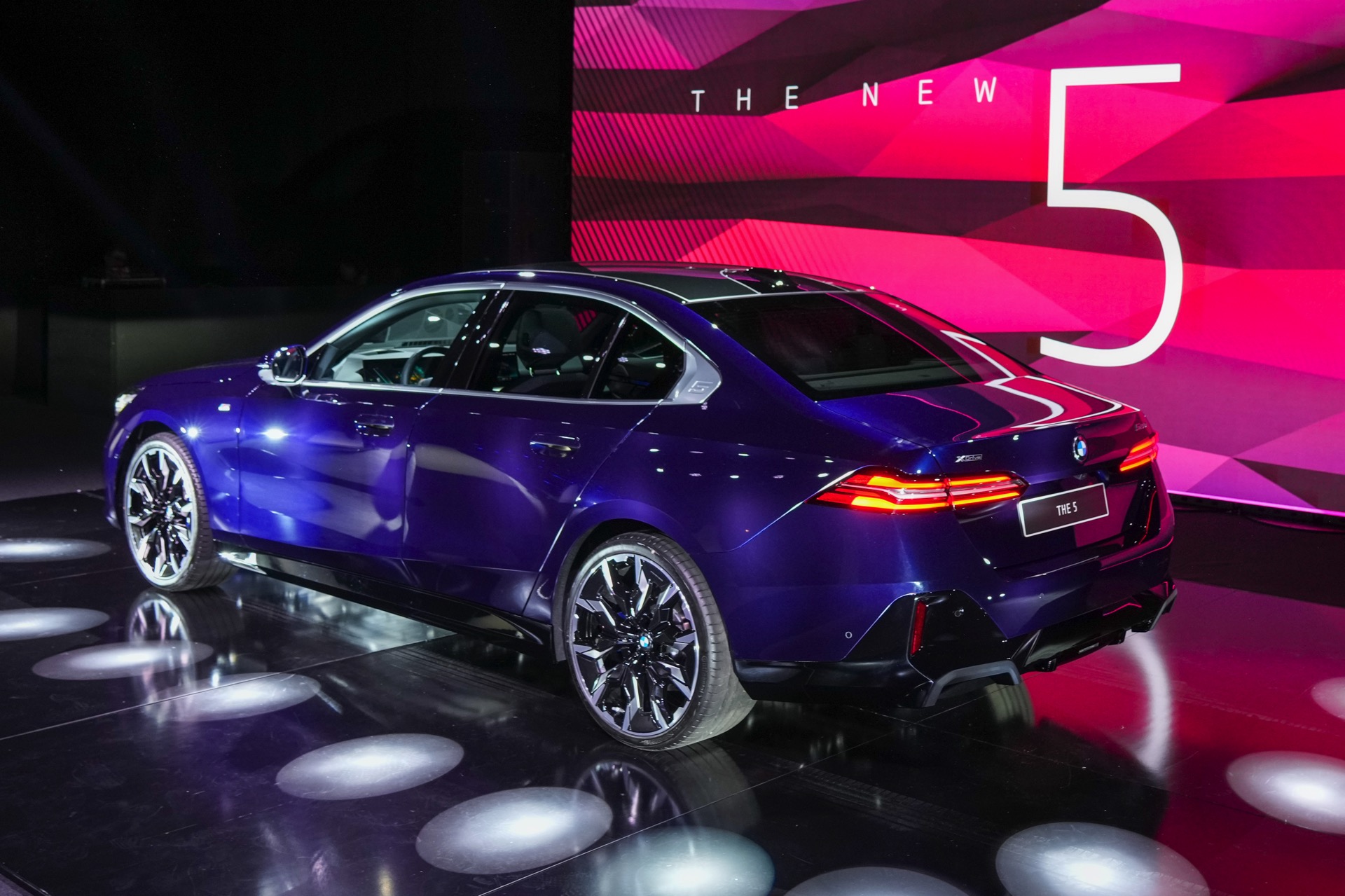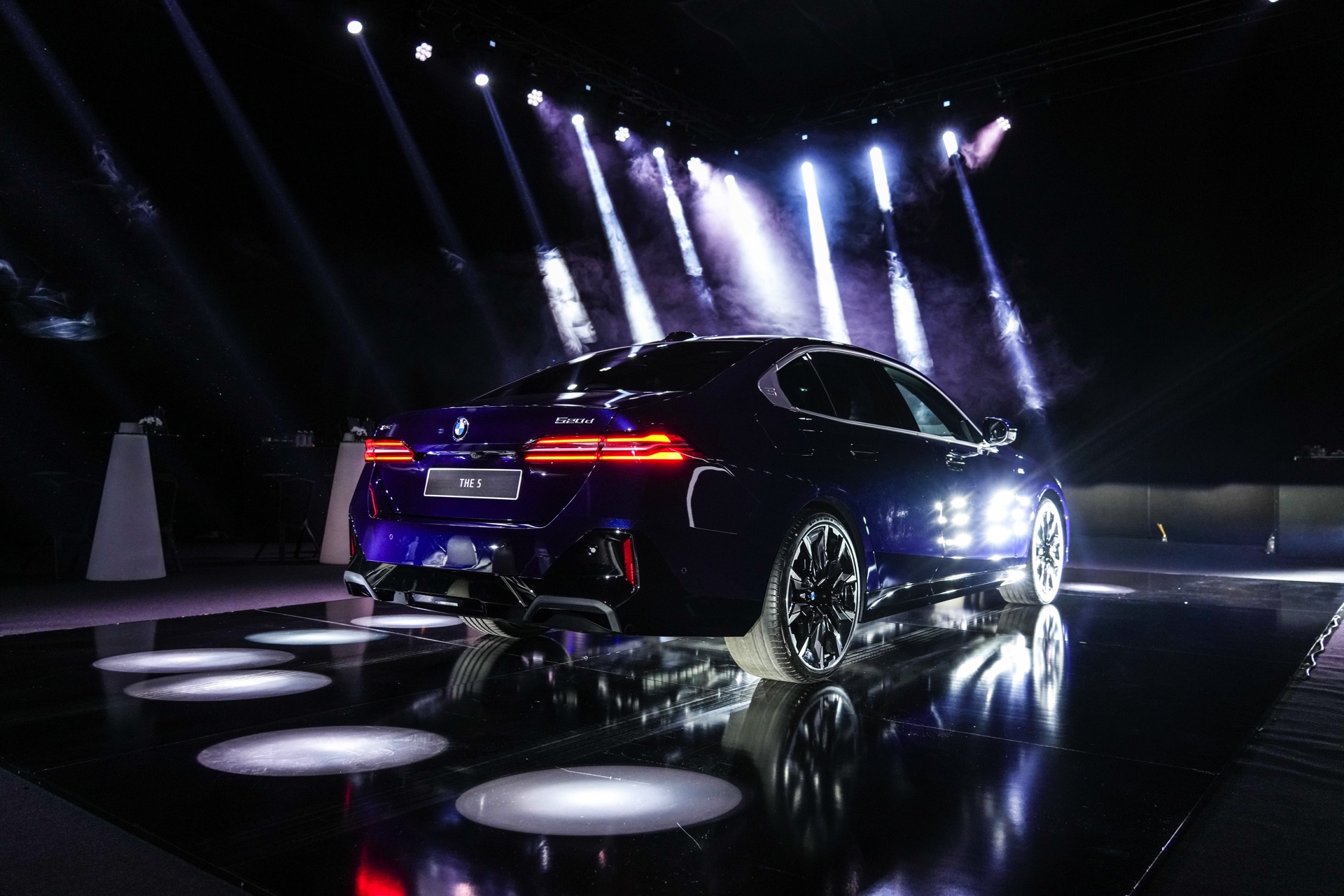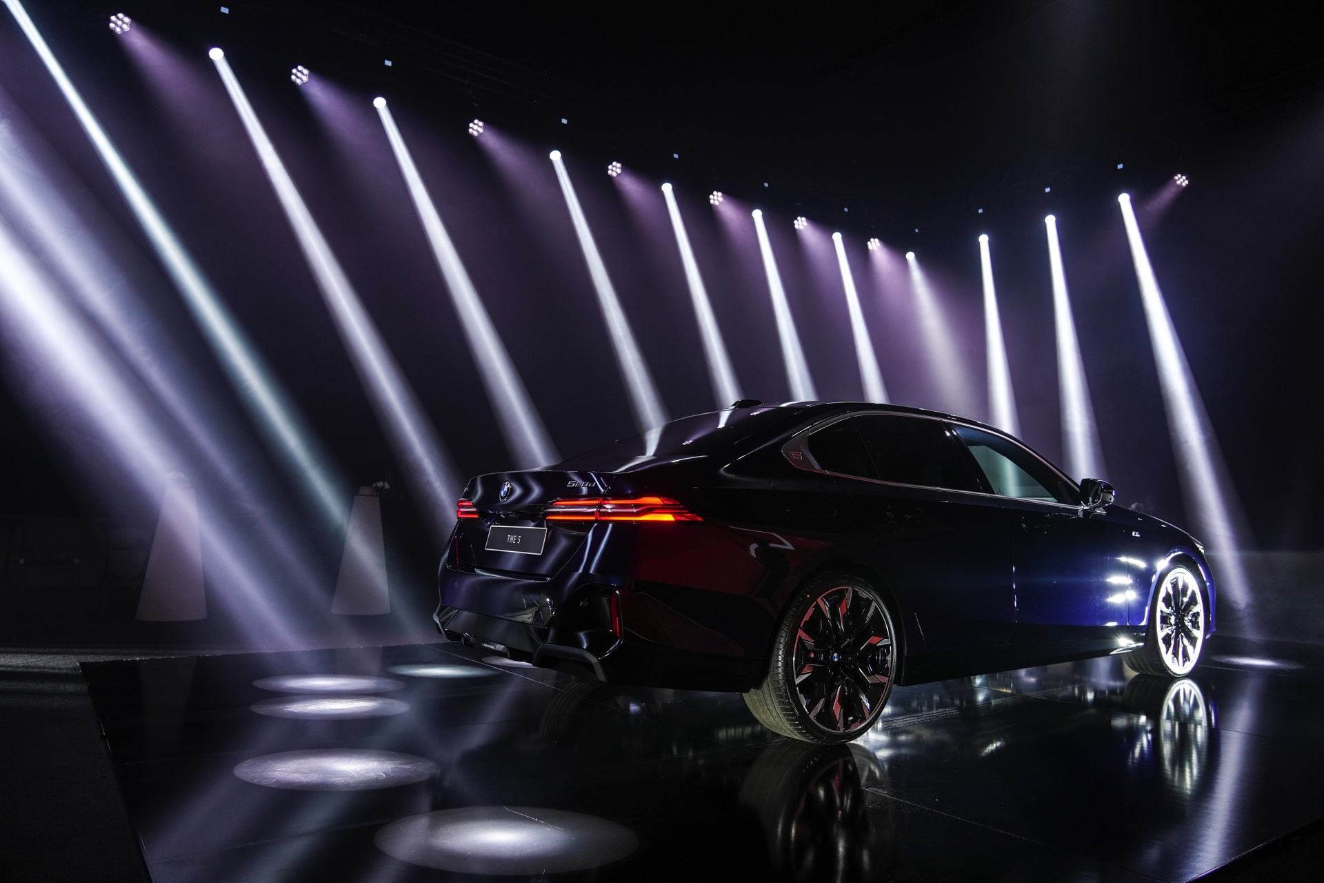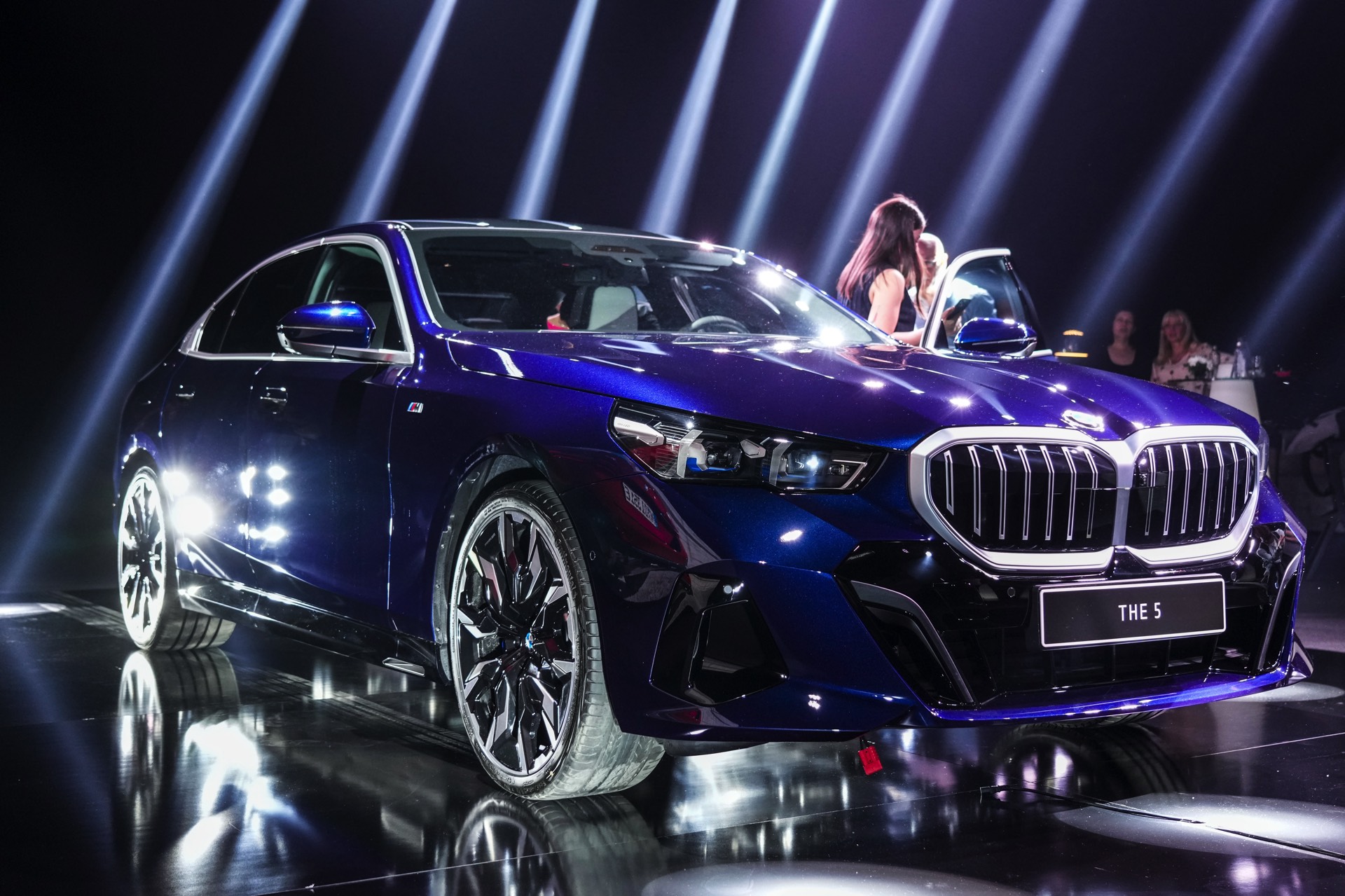 Auf den aktuellen Fotos von der G60-Premiere in Bulgarien sehen wir den BMW 5er mit M Sport-Paket und Lackierung in Tansanitblau Metallic. In den Radhäusern sehen wir die markanten BMW Individual Aerodynamikräder 954 I Bicolor Jetblack im 21-Zoll-Format und dank der aufwändigen Beleuchtung erhalten wir auch einen weiteren guten Eindruck vom Nacht-Design inklusive der Iconic Glow-Niere mit beleuchteter Einfassung.