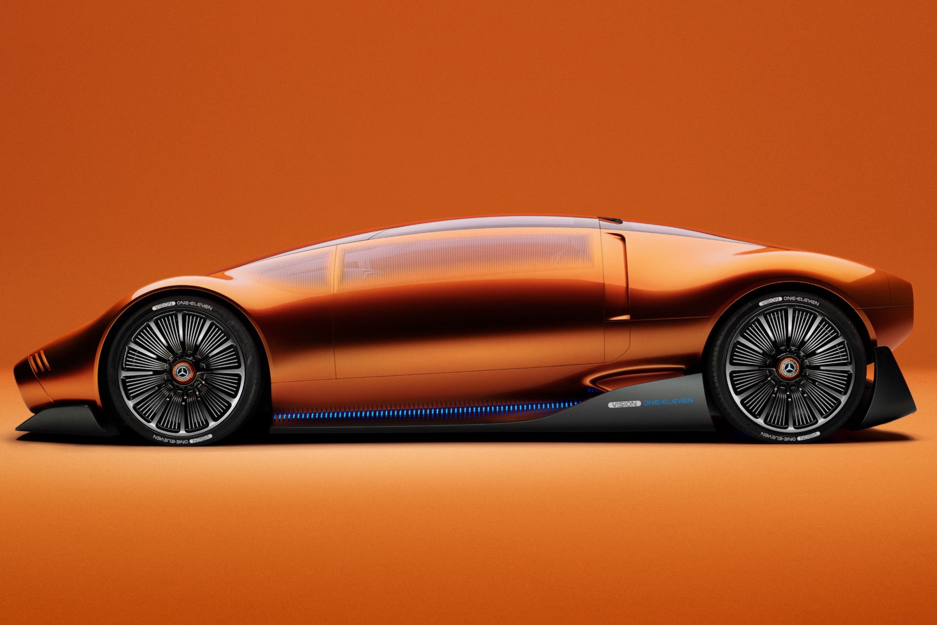 Der heute präsentierte Mercedes One-Eleven verzichtet anders als seine von Wankel-Motoren angetriebenen Vorgänger komplett auf einen Verbrenner. Die Verbindung des historischen Versuchsträger-Designs mit dem heutigen One-Bow-Design der Stuttgarter sorgt für einen Look, der einerseits Erinnerungen an längst vergangene Zeiten weckt und andererseits auch sehr futuristisch wirkt. Unter der nur 1,17 Meter flachen Außenhaut steckt ein von der britischen Mercedes-Tochter Yasa entwickelter Axialfluss-Antrieb, der ein Vorbote auf künftige High Performance-Antriebe für Elektroautos sein soll. Die Axialfluss-Motoren sollen im Vergleich zu heute üblichen Radialfluss-Elektromotoren deutlich mehr Spitzen- und Dauerleistung bieten und gleichzeitig kompakter bauen. "