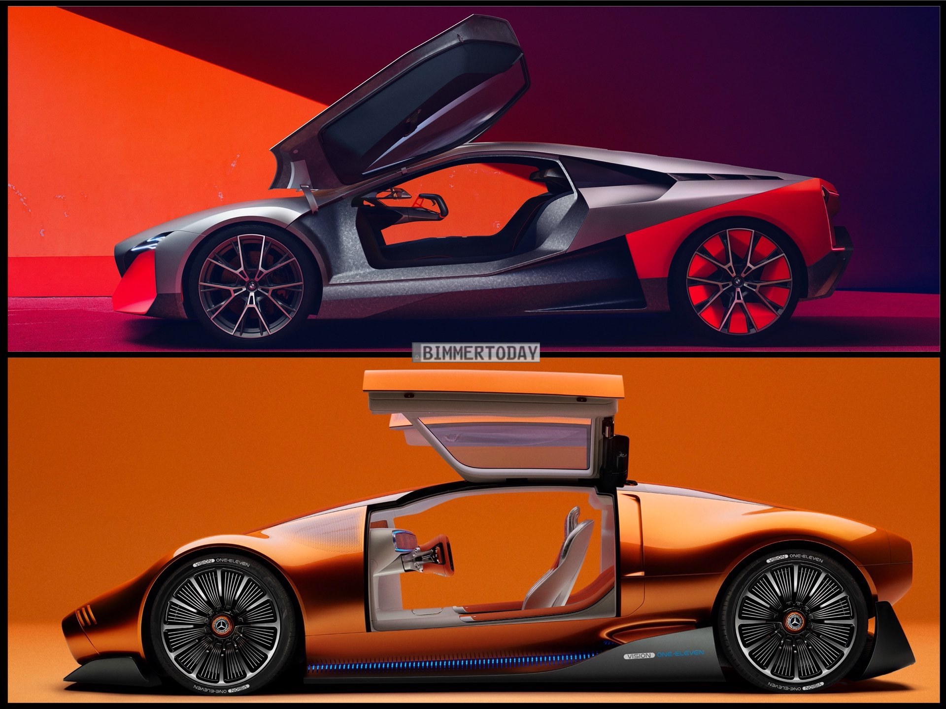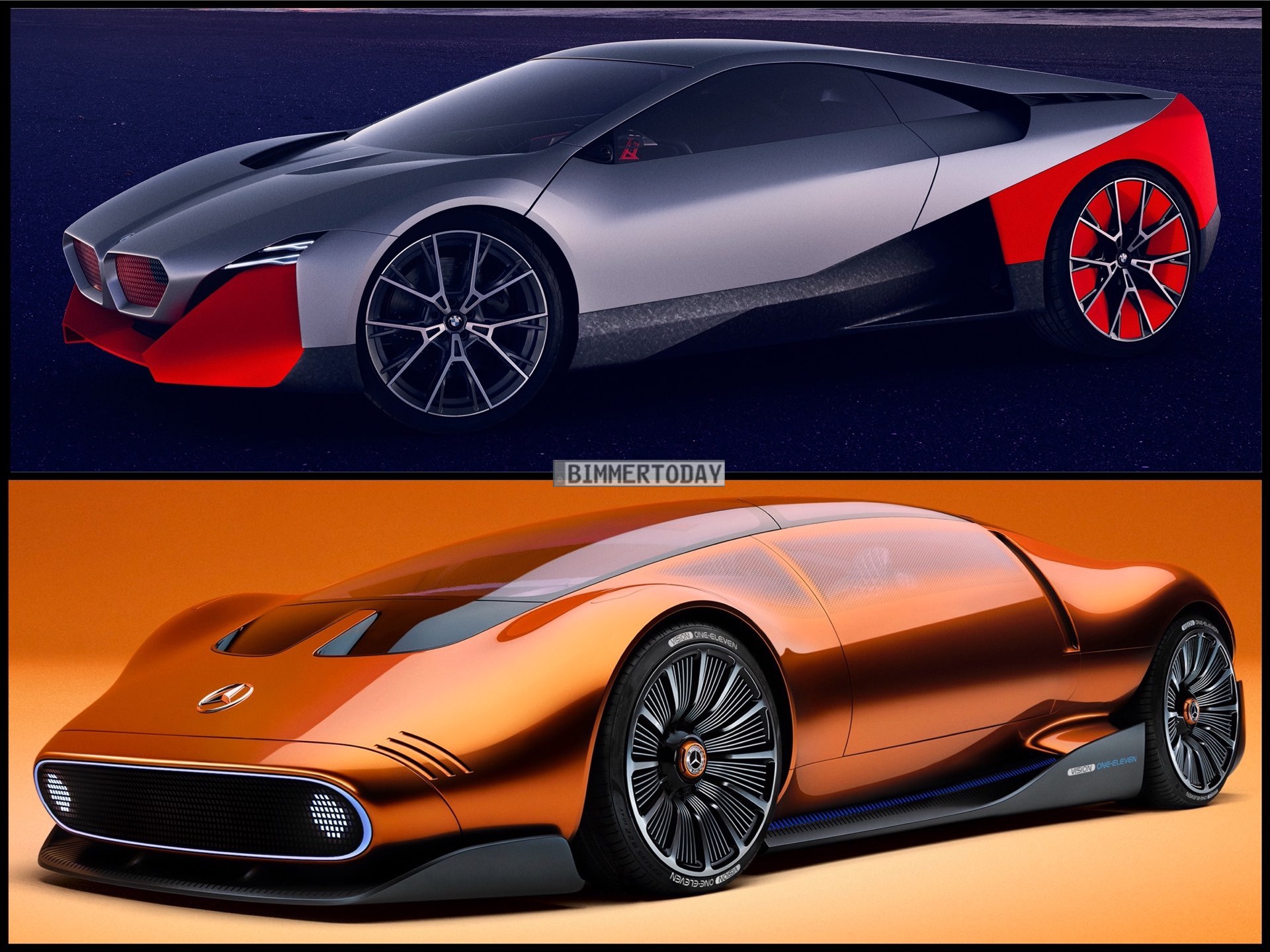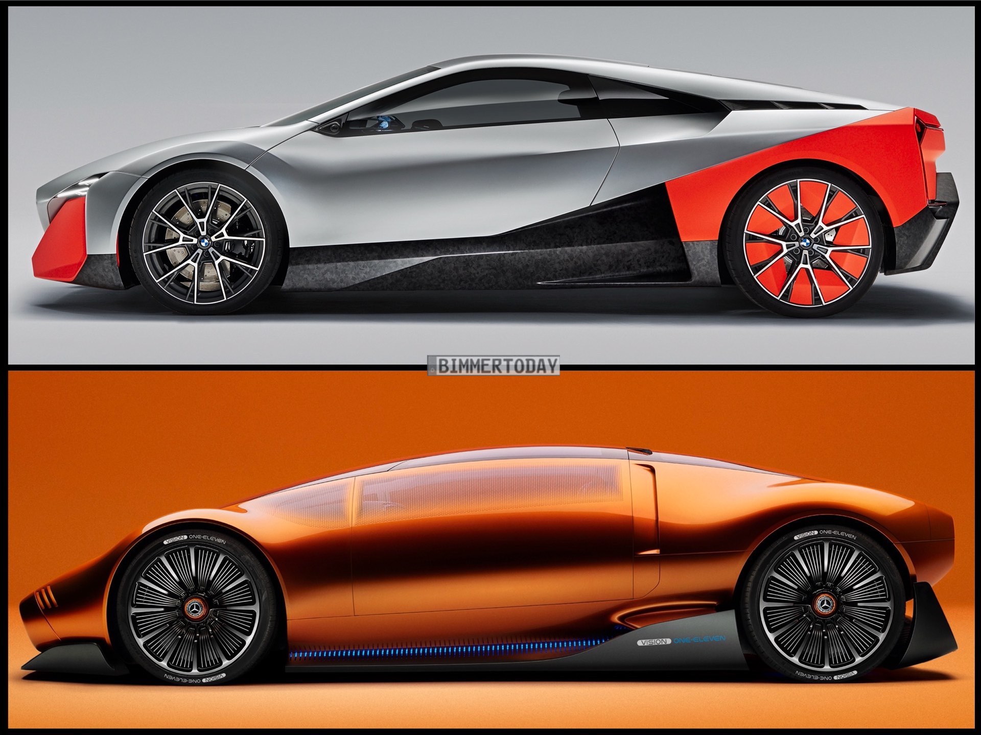 Als Vorbote elektrischer Sportwagen der Zukunft präsentiert sich der Mercedes Vision One-Eleven, der nicht nur mit Farbe und Name an den ikonischen C 111 der späten 60er- und frühen 70er-Jahre erinnert. Er geht damit einen durchaus ähnlichen Weg wie der 2019 präsentierte BMW Vision M Next, der Elemente von Klassikern wie dem BMW M1 und den Turbo-Studien mit Details des hochmodernen Hybrid-Sportlers i8 kombinierte. Genau wie der damalige i8 verfügte auch der BMW Vision M Next über einen Hybrid-Antrieb, der allerdings auf einen Vierzylinder als Verbrenner setzte und so mit 600 PS Systemleistung eine Höchstgeschwindigkeit von 300 km/h ermöglichen sollte.
