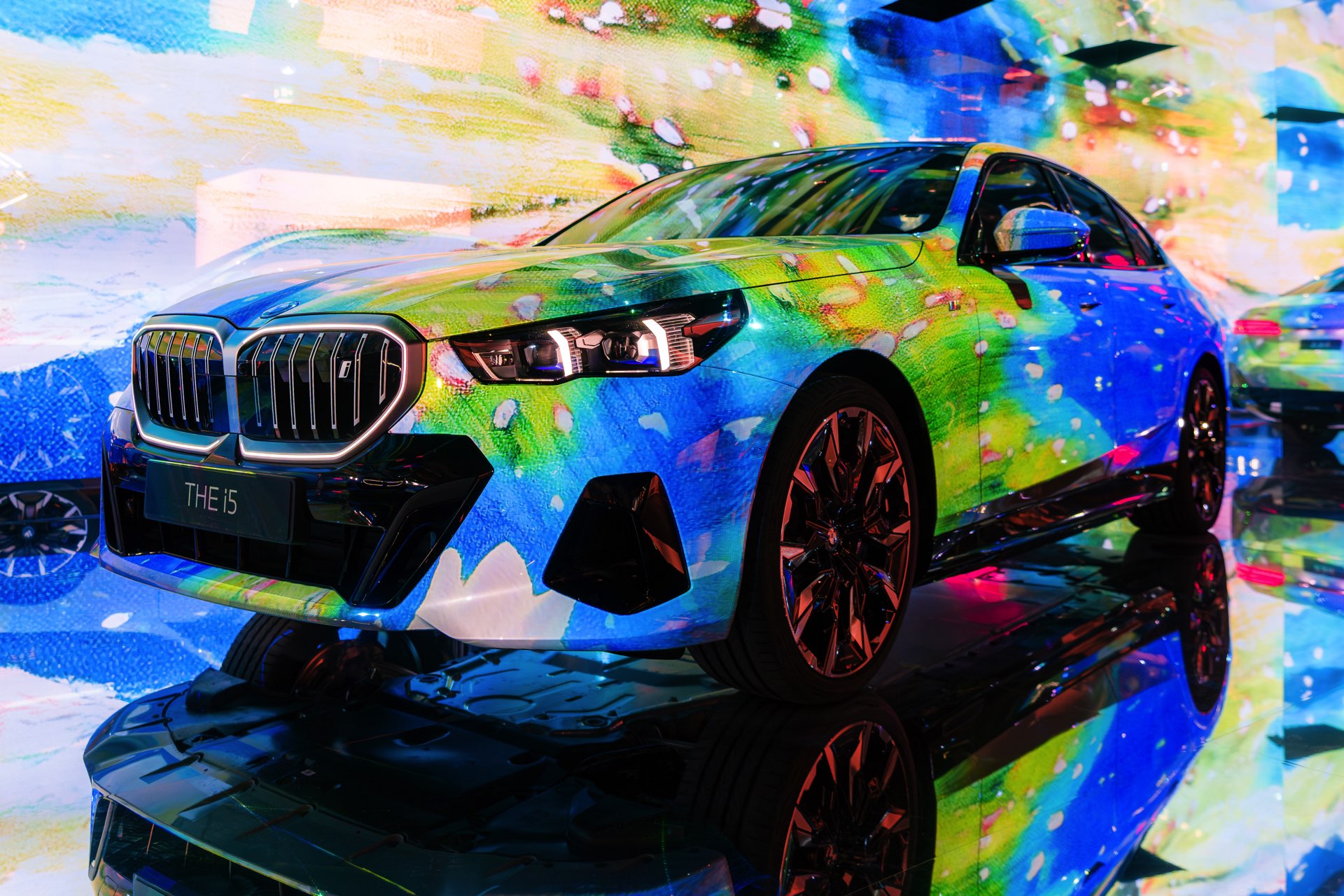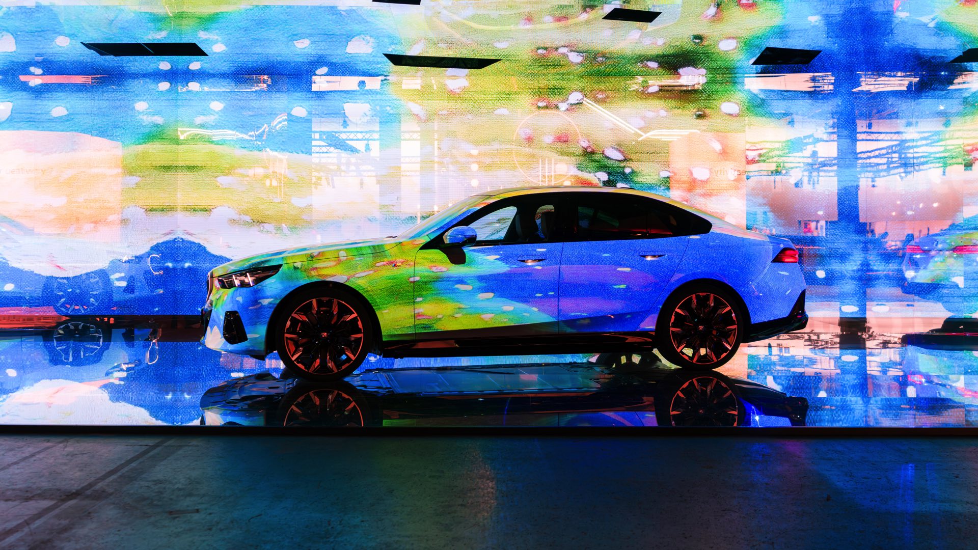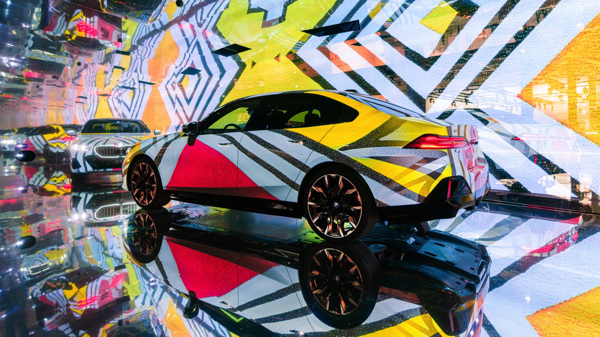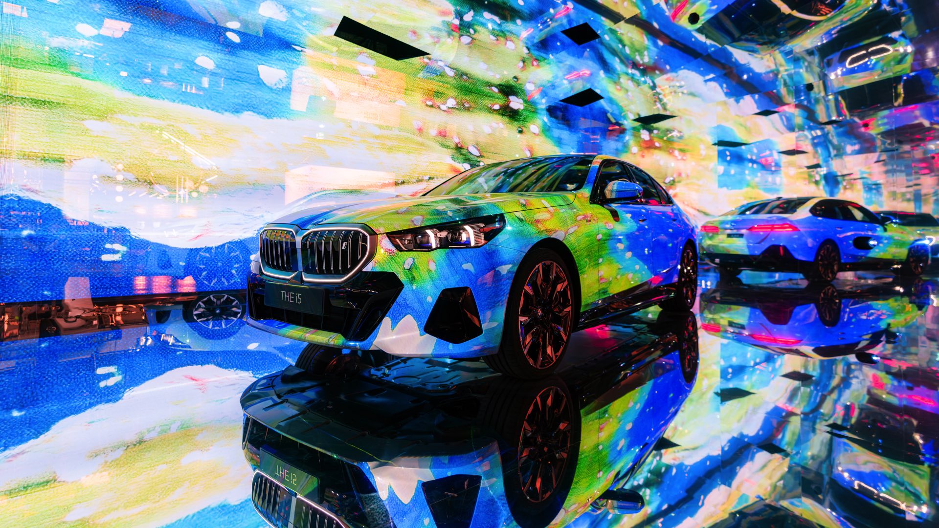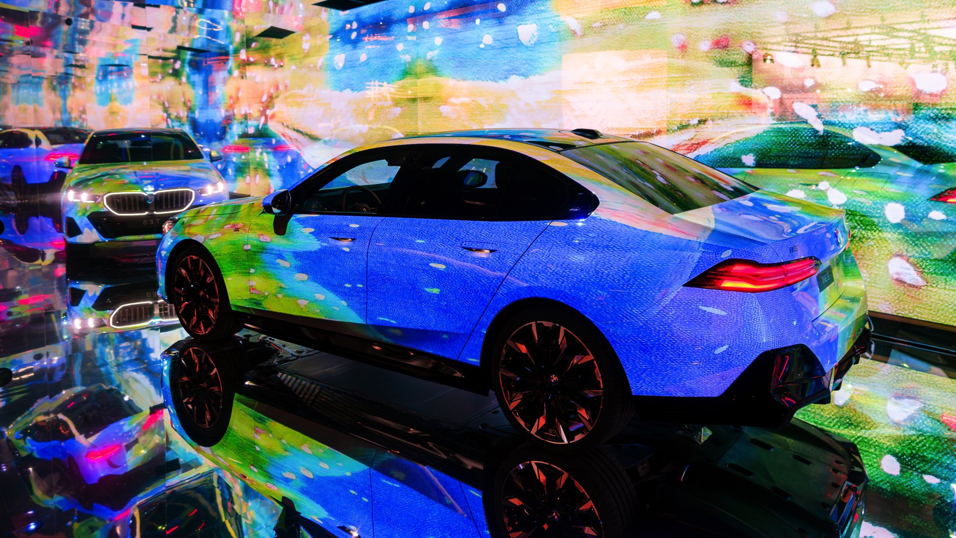 Als dreidimensionale Leinwand dient dabei ein BMW i5 eDrive40 mit M Sport-Paket, der zwischen mehreren spiegelnden Wänden platziert ist und dem Betrachter so den gleichzeitigen Blick auf verschiedene Seiten des Fahrzeugs ermöglicht. Und wer weiß, vielleicht werden die künstlich erzeugten Kunstwerke für den einen oder anderen auch zur Inspiration für eine farbenfrohe Folierung am eigenen 5er oder i5.