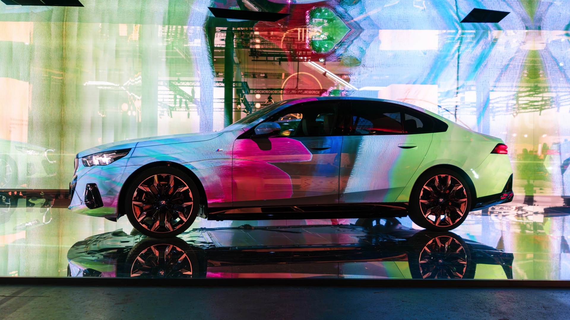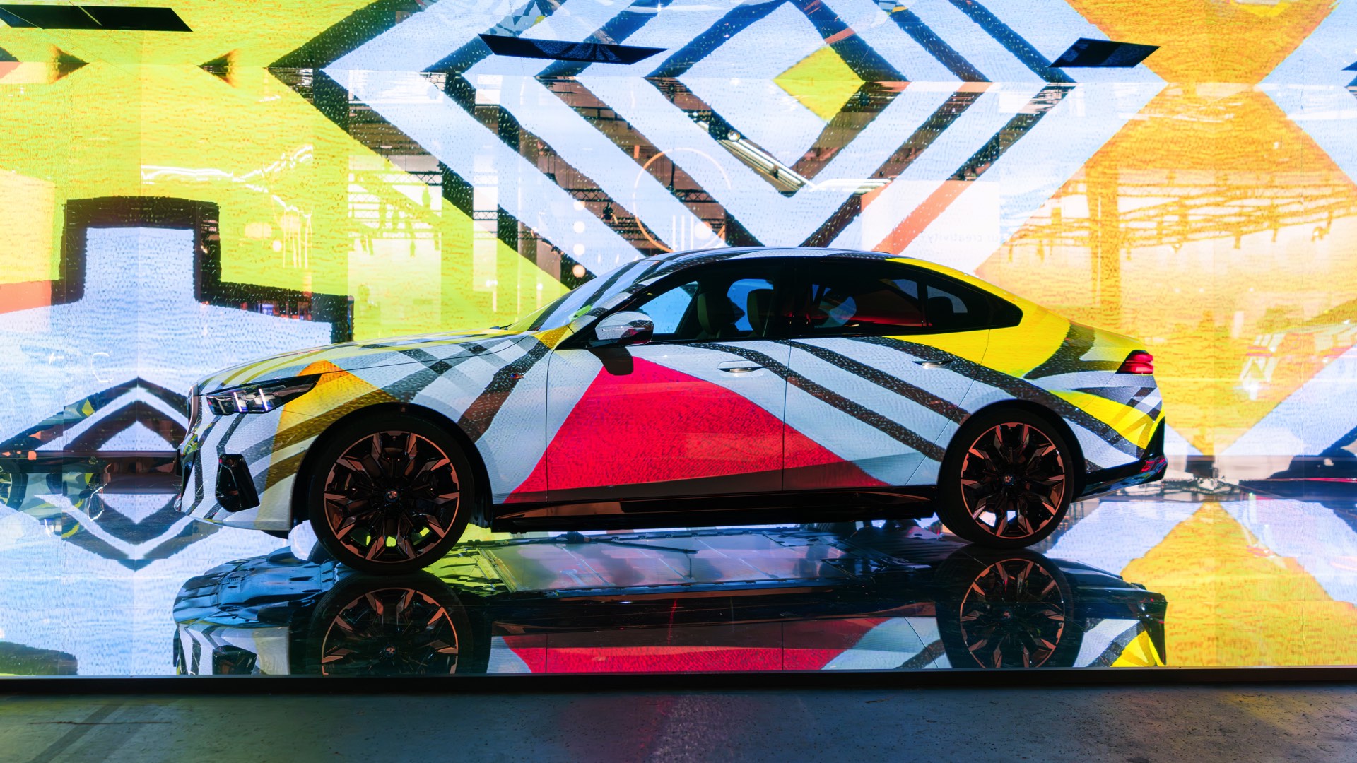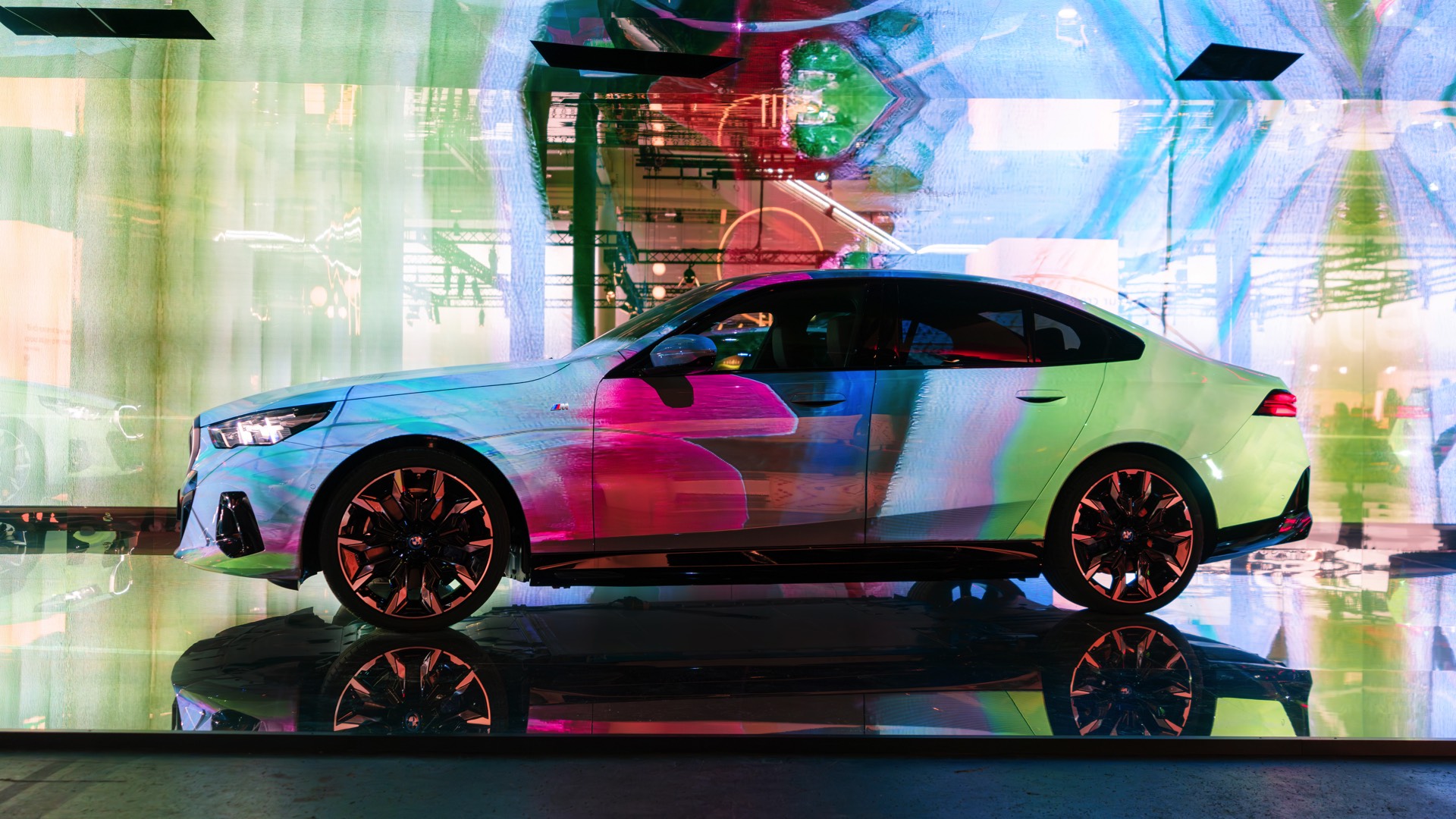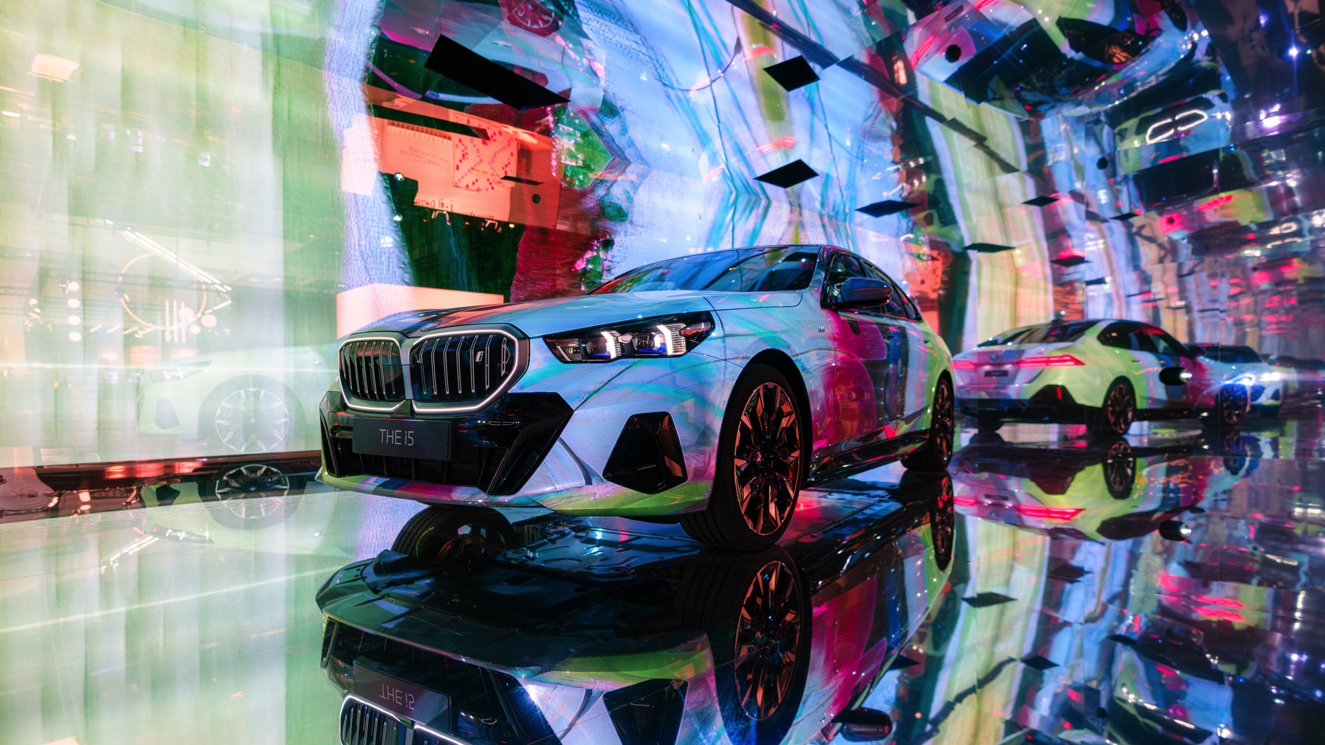 Als dreidimensionale Leinwand dient dabei ein BMW i5 eDrive40 mit M Sport-Paket, der zwischen mehreren spiegelnden Wänden platziert ist und dem Betrachter so den gleichzeitigen Blick auf verschiedene Seiten des Fahrzeugs ermöglicht. Und wer weiß, vielleicht werden die künstlich erzeugten Kunstwerke für den einen oder anderen auch zur Inspiration für eine farbenfrohe Folierung am eigenen 5er oder i5.
