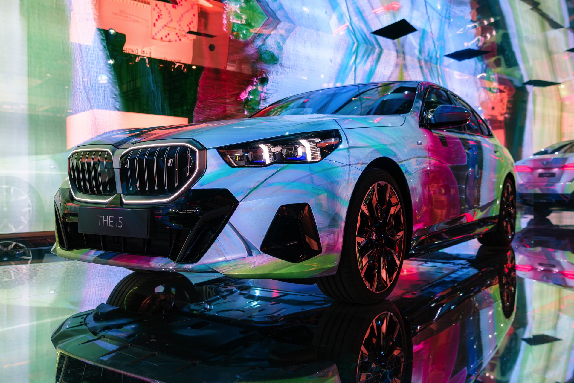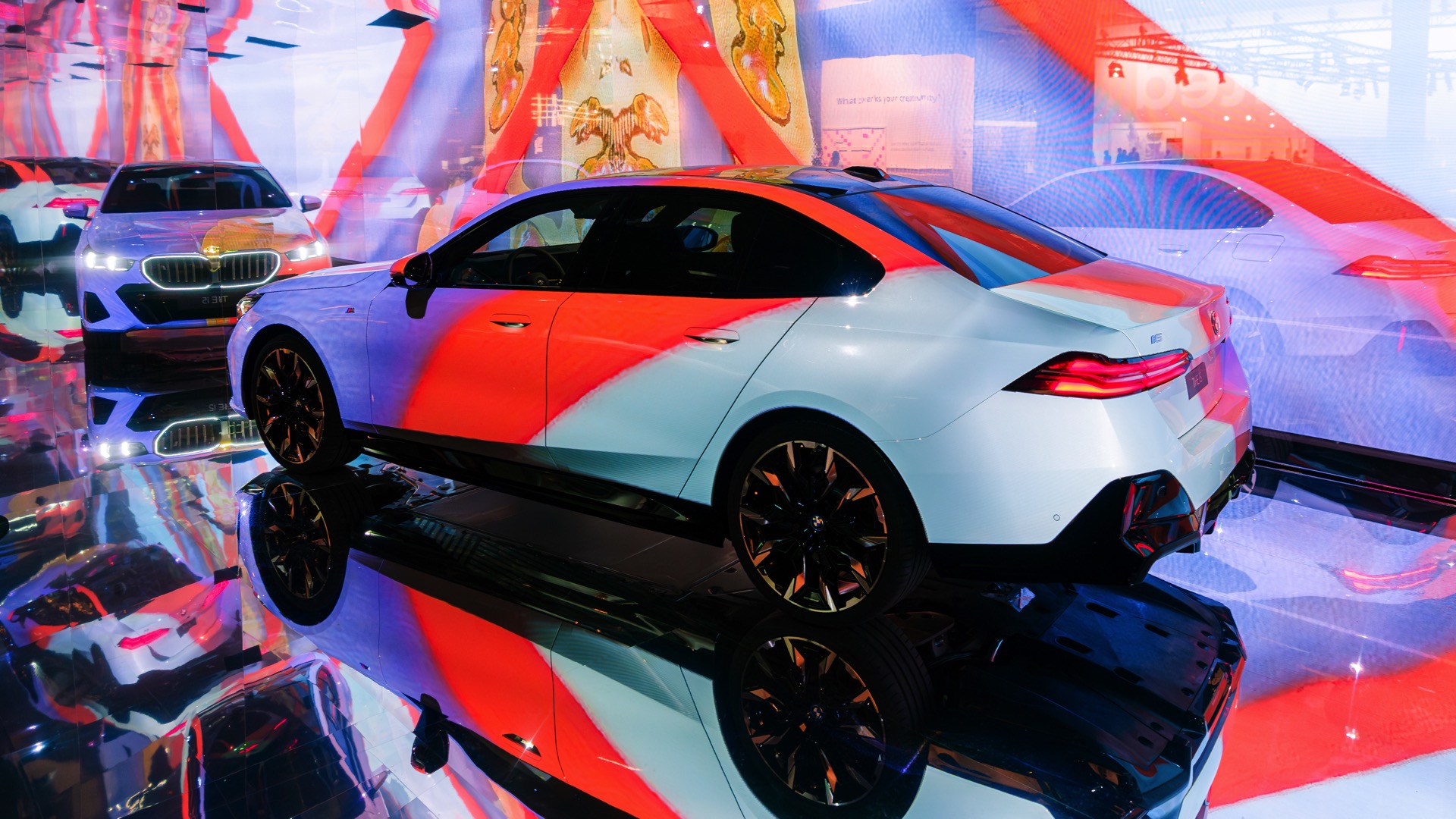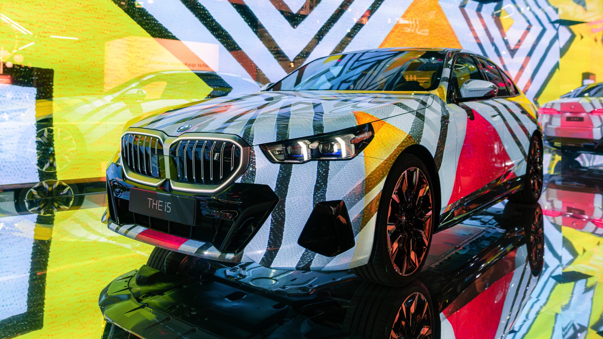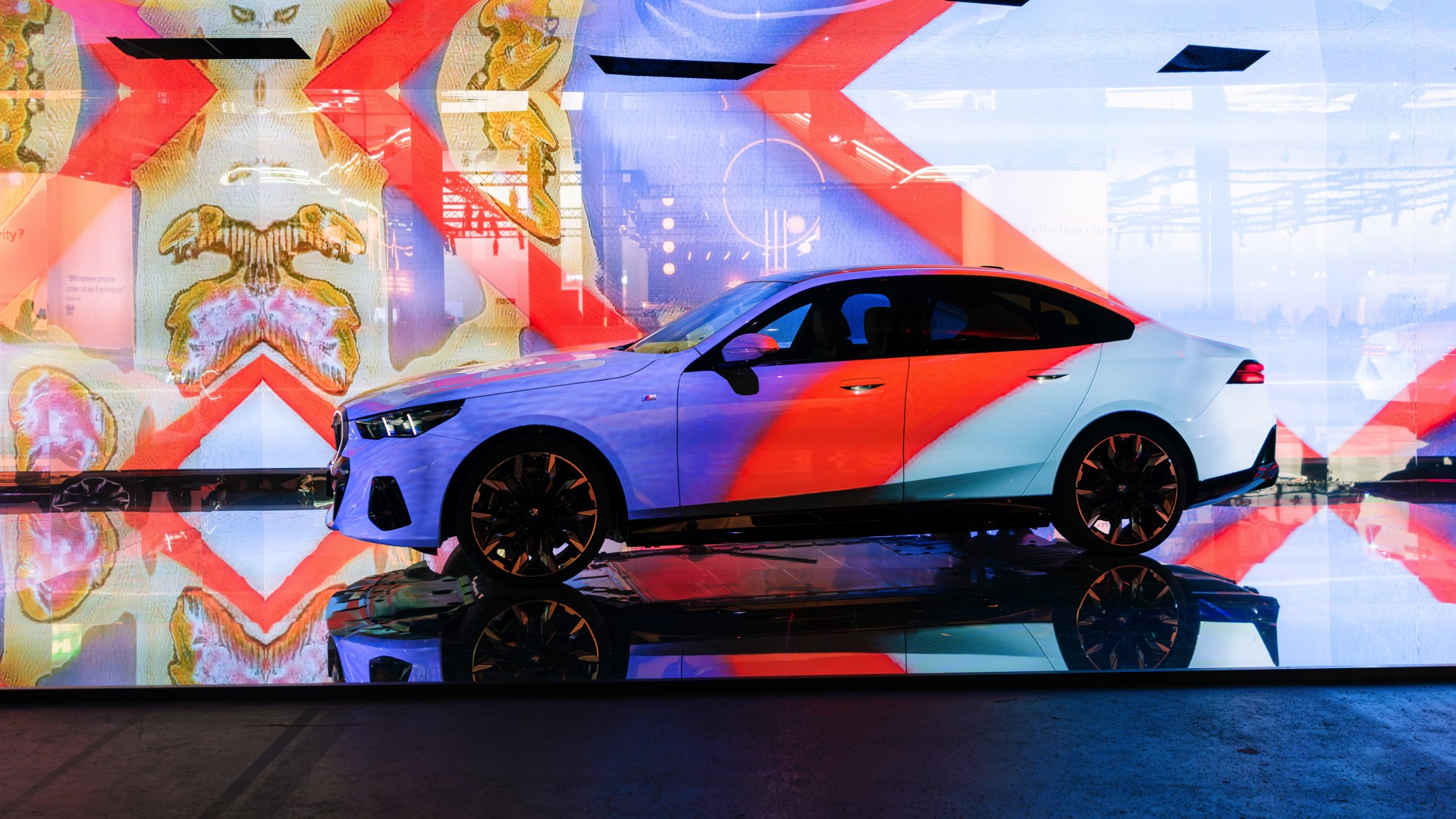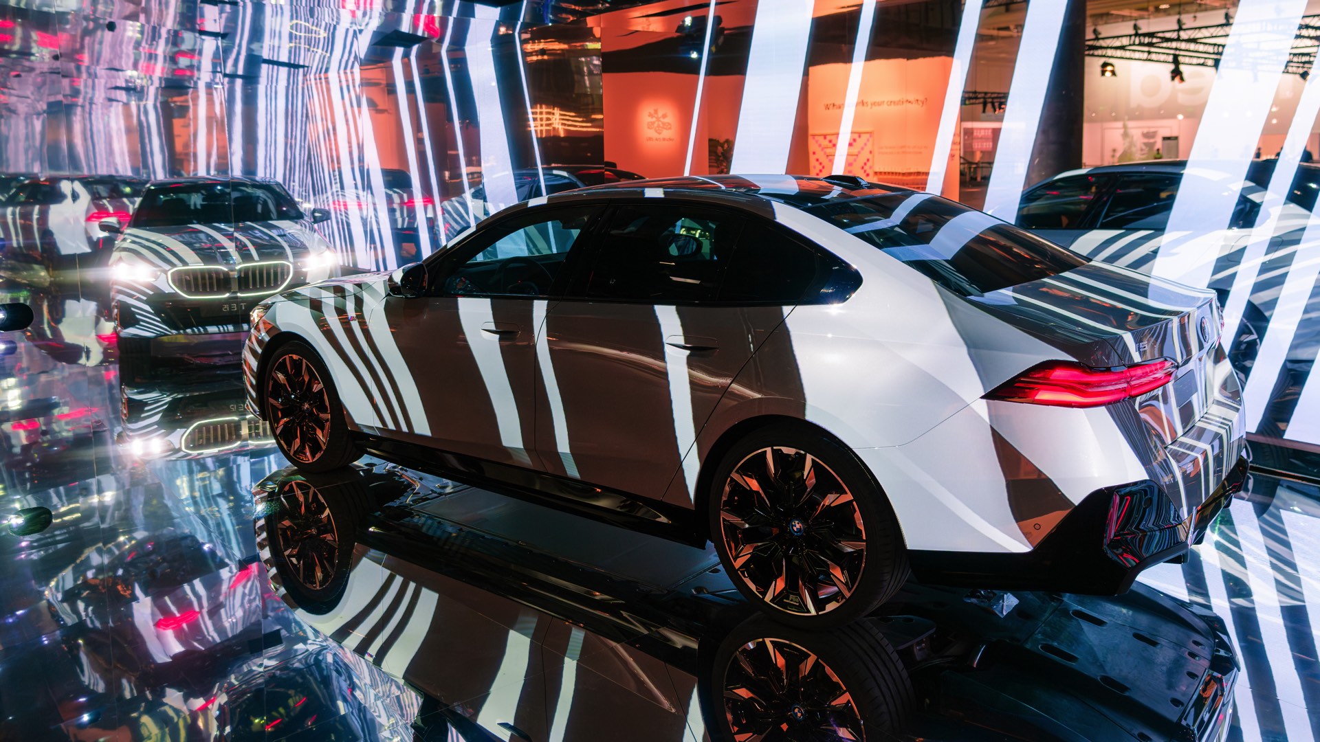 Als dreidimensionale Leinwand dient dabei ein BMW i5 eDrive40 mit M Sport-Paket, der zwischen mehreren spiegelnden Wänden platziert ist und dem Betrachter so den gleichzeitigen Blick auf verschiedene Seiten des Fahrzeugs ermöglicht. Und wer weiß, vielleicht werden die künstlich erzeugten Kunstwerke für den einen oder anderen auch zur Inspiration für eine farbenfrohe Folierung am eigenen 5er oder i5.