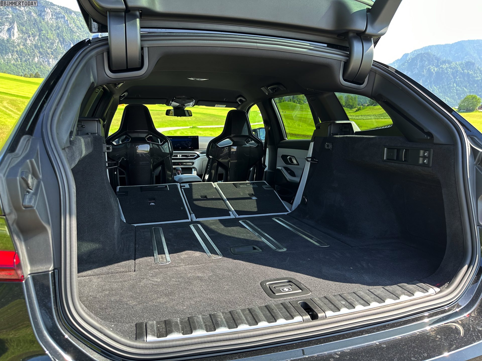 Am Steuer fällt es allerdings schwer, die erlebte Dynamik mit dem Platzangebot in Einklang zu bringen: Dass sich hinter den Carbon-Schalensitzen bei umgeklappter Rückbank eine weitestgehend ebene Ladefläche mit den gleichen 1.500 Litern Stauraum wie in den gewöhnlichen 3er-Varianten ergibt, muss man nach einer Fahrt am Limit zunächst kurz einsacken lassen. Daran hat natürlich auch der bestens bekannte Biturbo-Reihensechszylinder seinen Anteil, der den Kombi in jeder Lebenslage geradezu brachial beschleunigen lässt und dabei auch akustisch immer präsent ist.