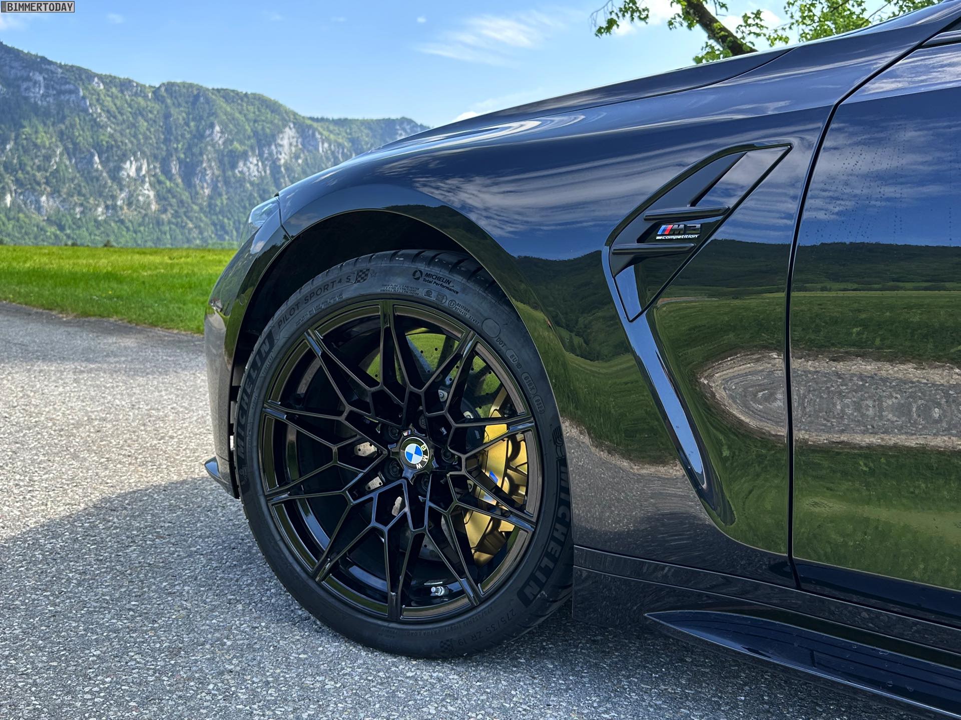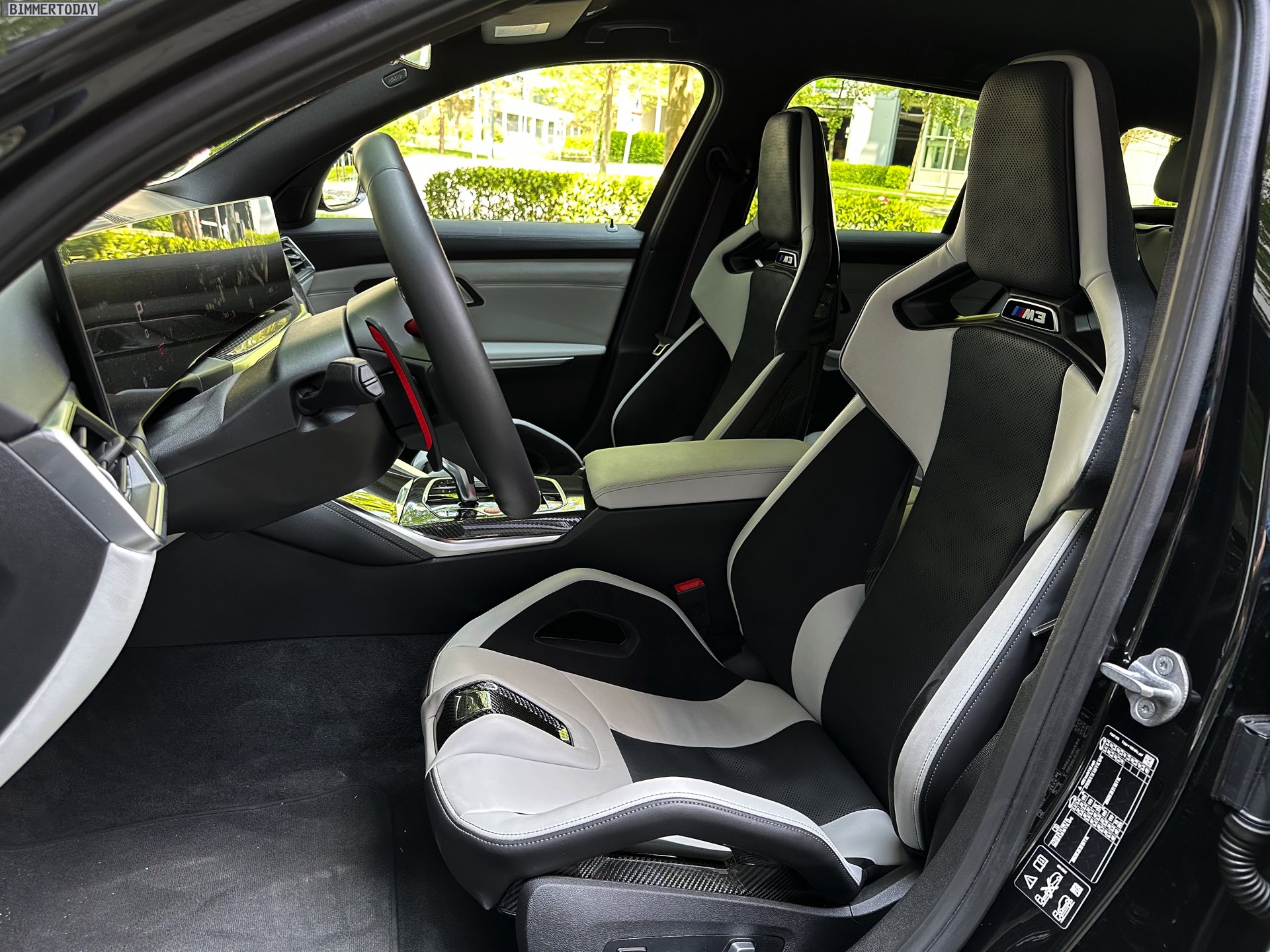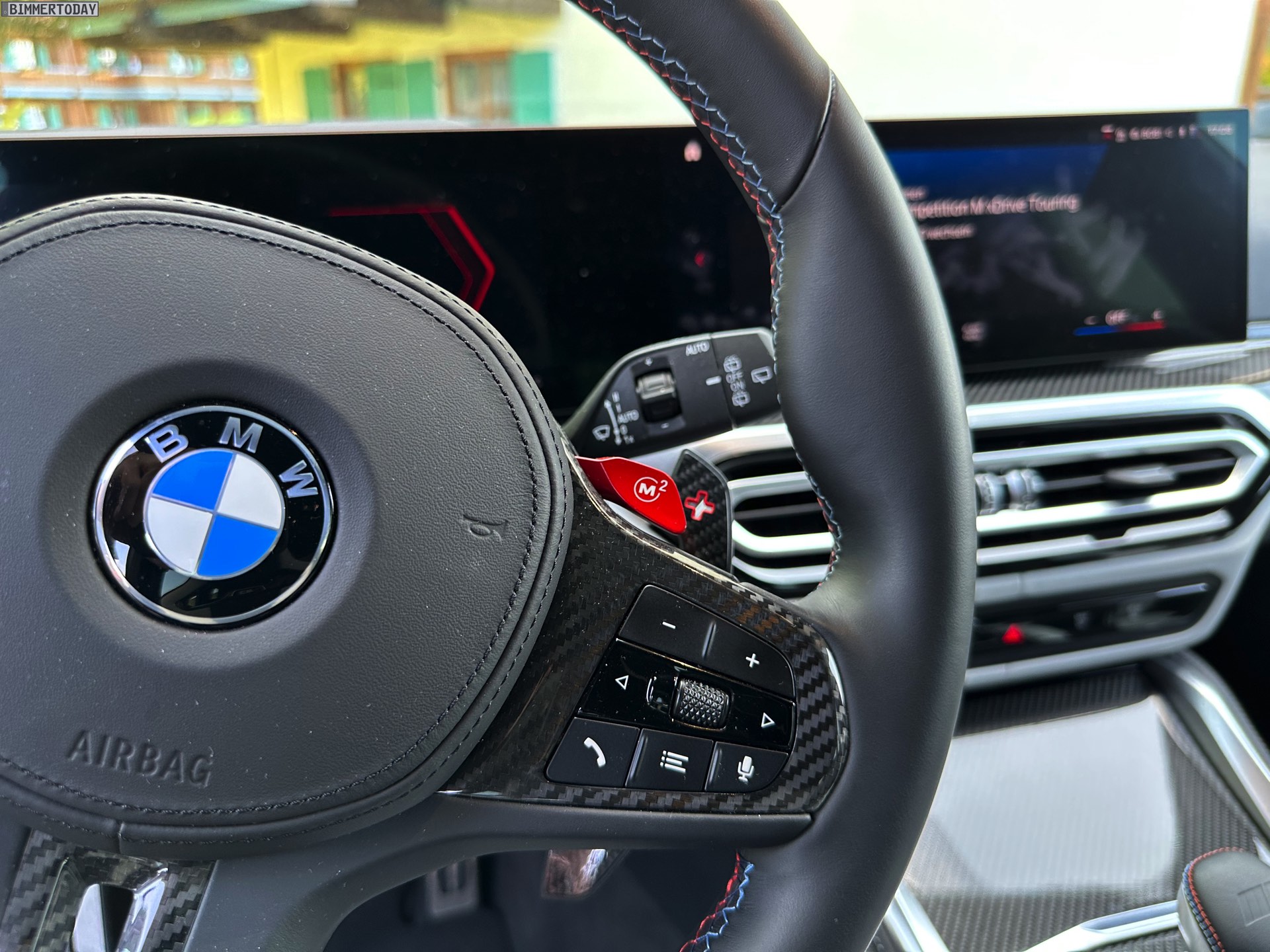 Wer glaubt, mit einem BMW M3 Touring in Schwarz eine relativ unauffällige Variante des Power-Kombis bestellen zu können, behält übrigens nur im direkten Vergleich mit kräftigeren Farben wie Speed Gelb Recht: Auch in Saphirschwarz lenkt der G81 zahllose interessierte Blicke auf sich, sammelt erhobene Daumen und anerkennendes Nicken und wird offenbar von so gut wie keinem Auto-Interessierten übersehen. Dabei war unser Testwagen fast komplett in Schwarz gehalten, nur die goldenen Bremssättel der optionalen Carbon Bremsanlage und die Bestandteile des Carbon-Exterieurpakets sorgten für ein paar hellere Nuancen.