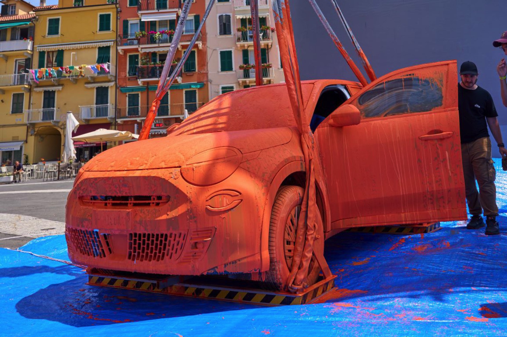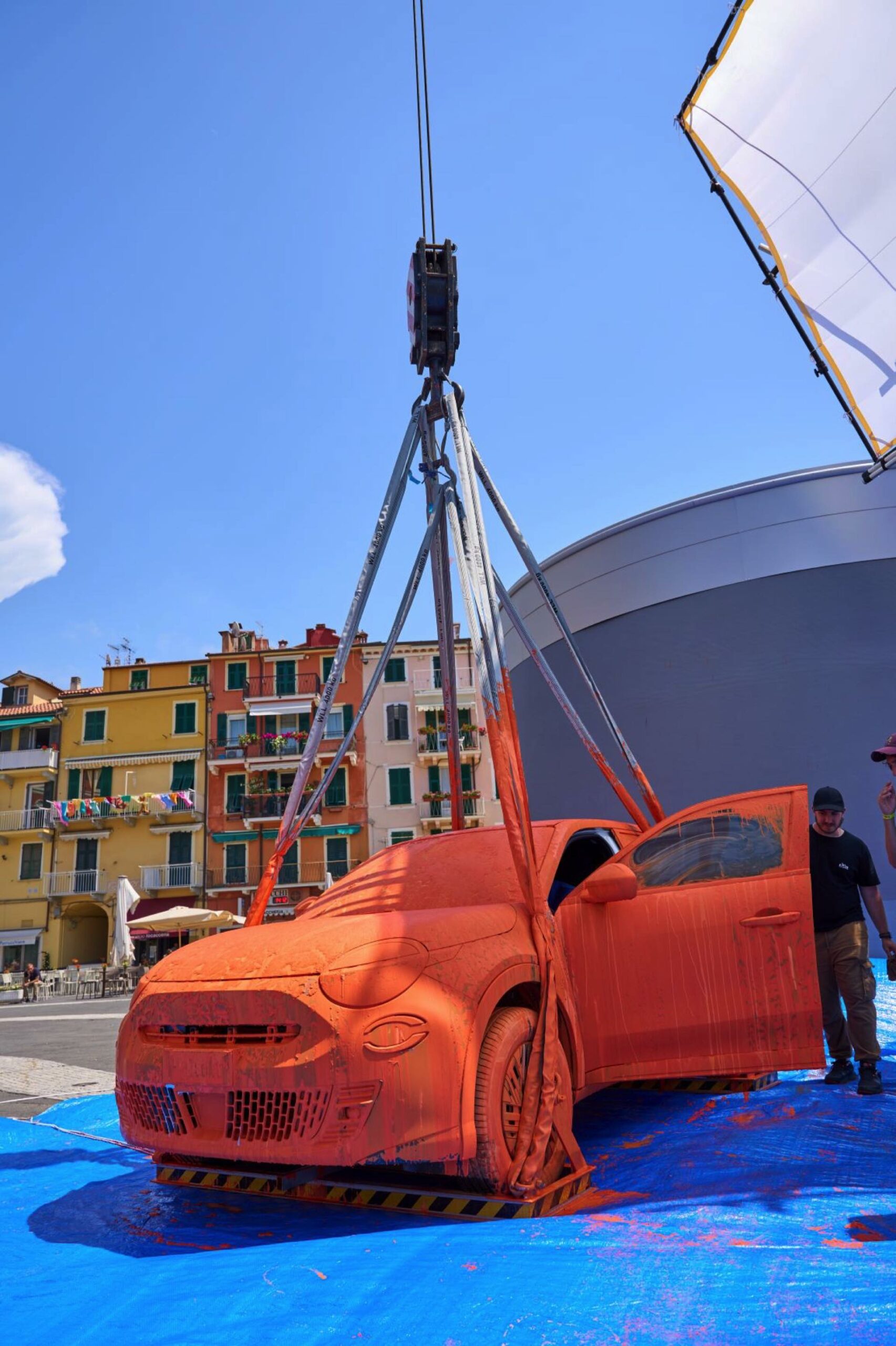 Vorgestellt wird die Aktion mit dem Titel “Operation No Grey” von Fiat-CEO Olivier François, der in einem Video zum Fiat 600 Elektro sehr anschaulich zeigt, wie positiv sich die Welt mit etwas Farbe verändern lässt: Der Elektro-Kleinwagen ist zunächst in Grau zu sehen, wird dann aber mit Hilfe eines Krans – samt CEO Olivier François an Bord – in einen riesigen Farbtopf getaucht und kommt schließlich in leuchtendem Orange wieder zum Vorschein: