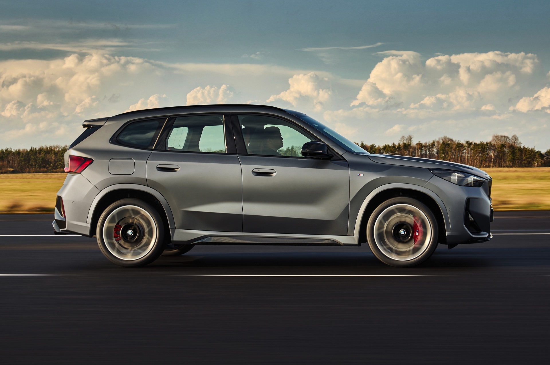 Doch ein paar Pferdestärken hin oder her, ohne jede Frage ist der X1 mit 300 PS ausgesprochen souverän motorisiert. Zudem ist er leichter als seine elektrifizierten Brüder, was schließlich auch beim Vergleich der Sprint-Zeiten deutlich wird: Mit einer Werksangabe von 5,4 Sekunden unterbietet der BMW X1 M35i die beiden stärkeren X1 um zwei Zehntelsekunden. Noch wesentlich größer ist der Abstand bei der Höchstgeschwindigkeit, denn der M-X1 stürmt mit bis zu 250 km/h über die Autobahn und kann sich dabei deutlich vom höchsten 180 km/h schnellen iX1 und vom maximal 205 km/h schnellen Plug-in-Hybrid absetzen.