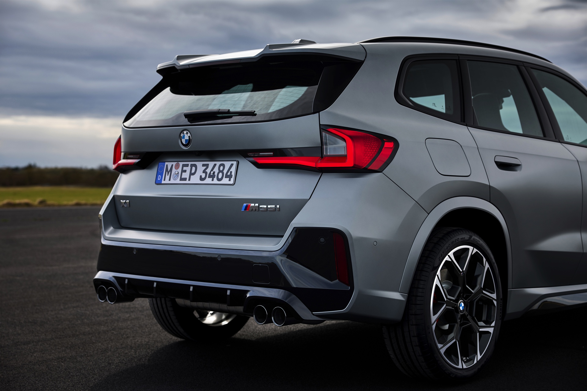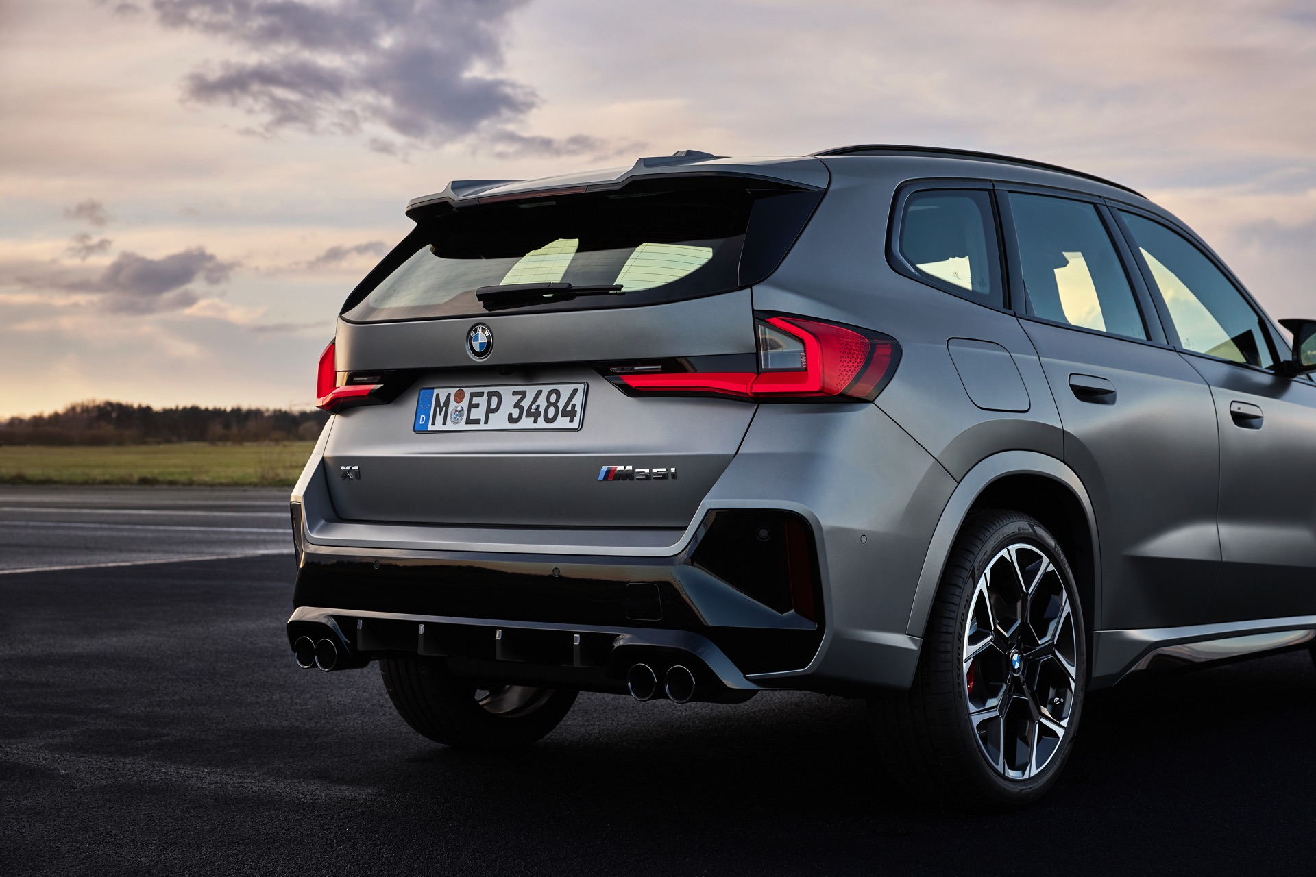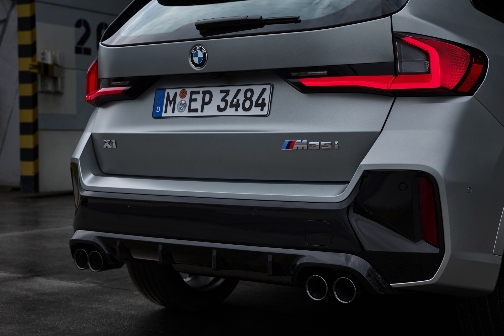 Noch größer sollen die Unterschiede auf kurvigen Strecken sein, denn auch hier will der BMW X1 M35i (U11) seinen betont-sportlichen Look rechtfertigen: Von den gewöhnlichen X1 unterscheidet er sich mit mit einer eigenständigen Niere samt Doppelstreben, die aber noch in vertikaler statt horizontaler Anordnung platziert sind, exklusiven M-Außenspiegeln und einer Abgasanlage mit vier Endrohren. Die jeweils 80 Millimeter dicken Endrohre sorgen für einen scharfen Kontrast zu allen übrigen X1, denn keine andere Variante verfügt auch nur über ein einziges sichtbares Endrohr.