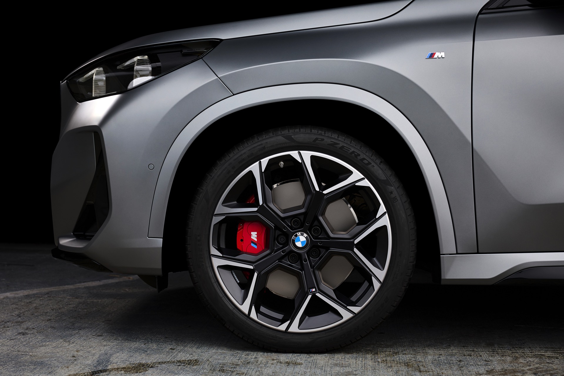 In den Radhäusern des X1 M35i sitzen mindestens 19, auf Wunsch aber auch 20 Zoll große und mit Sportreifen bezogene Leichtmetallräder. Das adaptive M Fahrwerk sorgt mit 15 Millimetern Tieferlegung nicht nur dafür, dass die Räder besonders gut zur Geltung kommen, es soll auch Straßenlage und Fahrverhalten spürbar verbessern. Wer regelmäßig voll auf Angriff fährt, kann den Top-X1 als erstes M Performance Automobil auf Wunsch mit einer M Compound Bremsanlage ausrüsten.