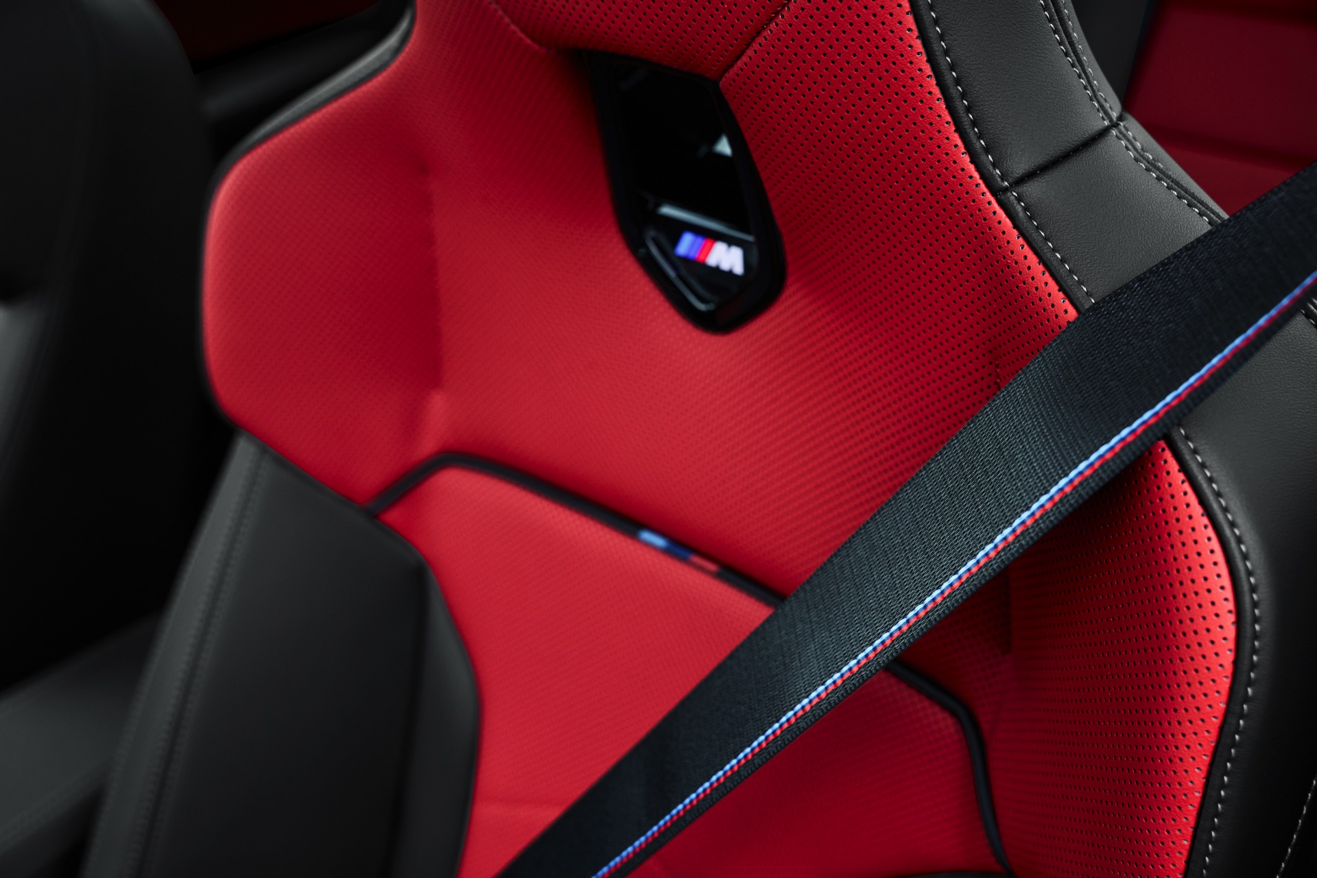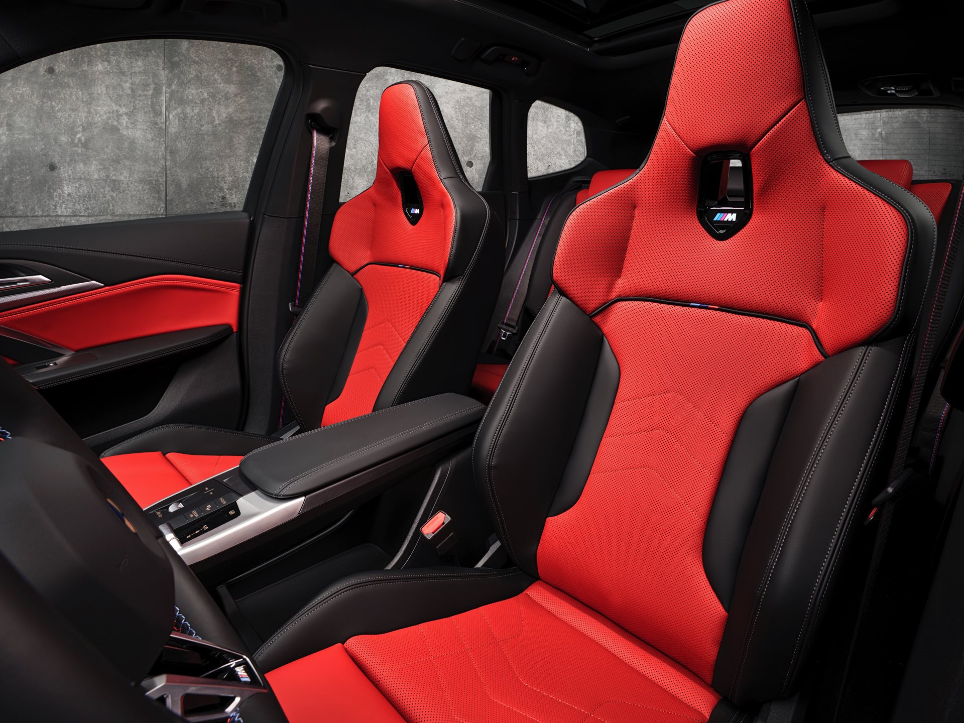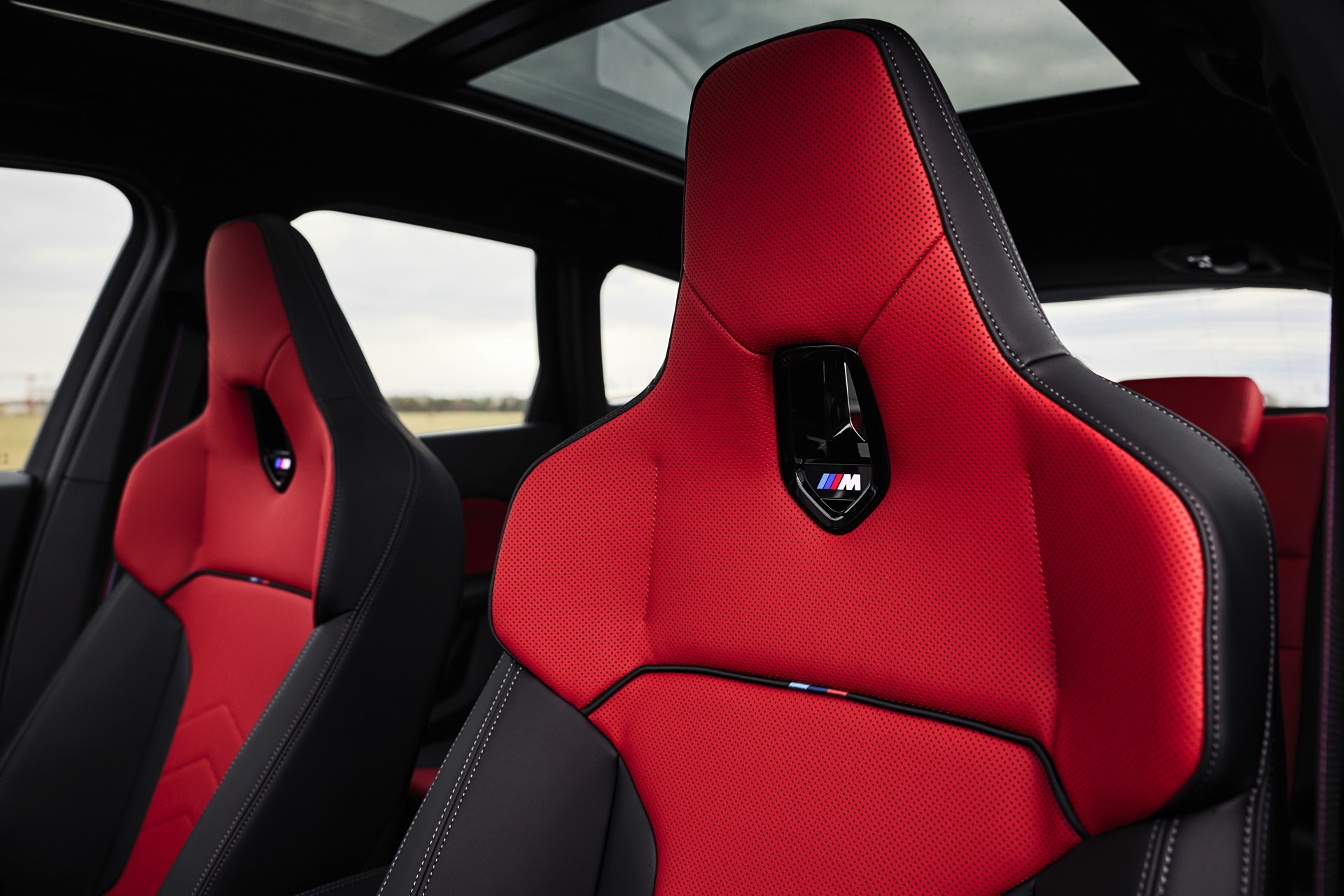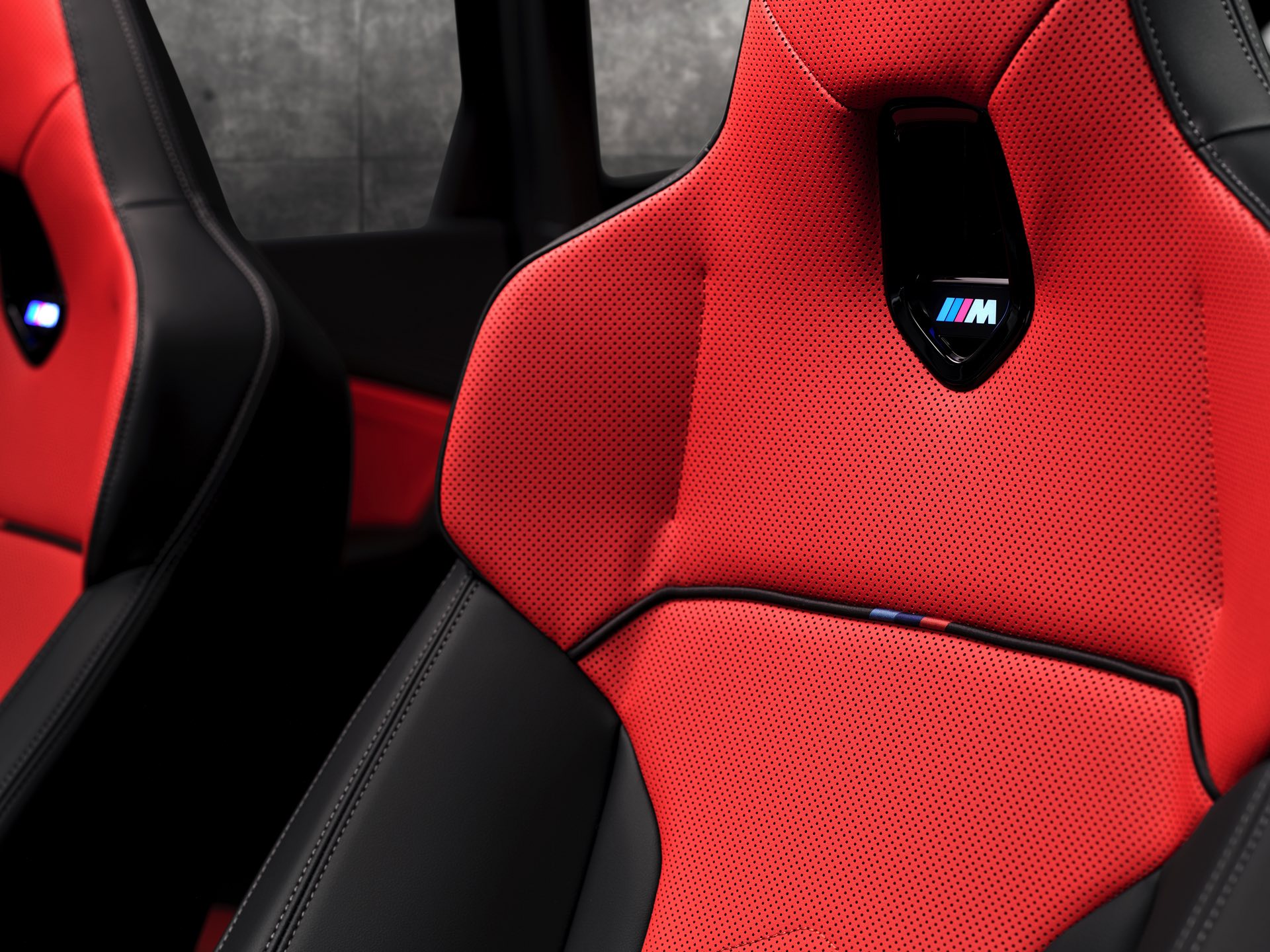Im Innenraum setzt sich der X1 M35i auf Wusch mit M Sportsitzen samt beleuchtetem M-Logo und integrierten Kopfstützen von den übrigen X1 ab, auf den ersten Fotos sehen wir die neuen Sitze in einer auffälligen Farb-Kombination mit Schwarz und Rot. Auf dem Curved Display wird von Anfang an das Infotainment-System iDrive 9 mit überarbeitetem Einstiegsbildschirm als Hauptmenü und zusätzlichen QuickSelect-Shortcuts zum Einsatz kommen. Auf einen iDrive-Controller müssen X1-Kunden dabei auch weiterhin verzichten, die Bedienung erfolgt primär über Sprachsteuerung und Touchscreen.