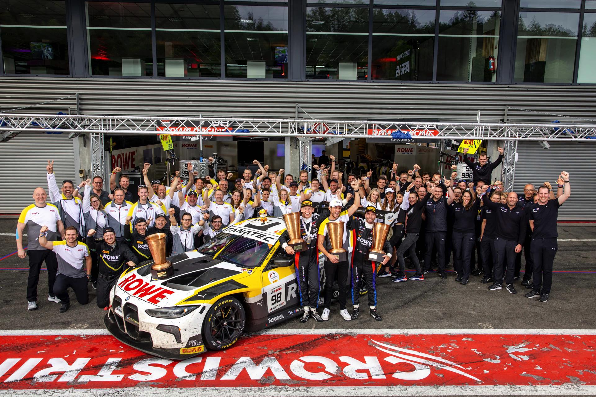 Hans-Peter Naundorf (Teamchef ROWE Racing): „Das war unser bisher härtester Sieg hier in Spa. Wir wissen, wie herausfordernd der Weg zum Triumph bei diesem Rennen ist, was ihn umso spezieller macht. Unsere Konkurrenz war unglaublich stark und das Endergebnis verdammt eng. An ein intensiveres GT-Rennen kann ich mich nicht erinnern. Am meisten beeindruckt mich die Konstanz unseres Teams. Wir standen in diesem Jahr in fast jedem Rennen, in dem wir gestartet sind, auf dem Podium. Hier in Spa haben wir seit 2016 drei Siege und zwei zweite Plätze eingefahren. Das geht nur mit einem unglaublich motivierten und ehrgeizigen Team – und das haben wir. Es freut mich auch zu sehen, wie wertvoll dieser Sieg für alle an diesem Projekt Beteiligten ist. Es war an der Zeit, dass der BMW M4 GT3 in seinem zweiten Jahr so ein großes Rennen gewinnt.“
