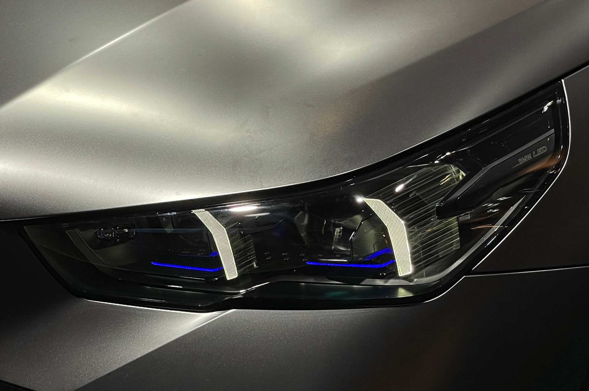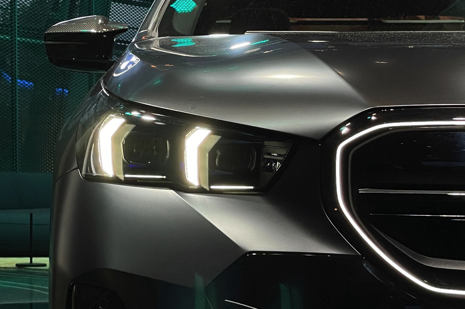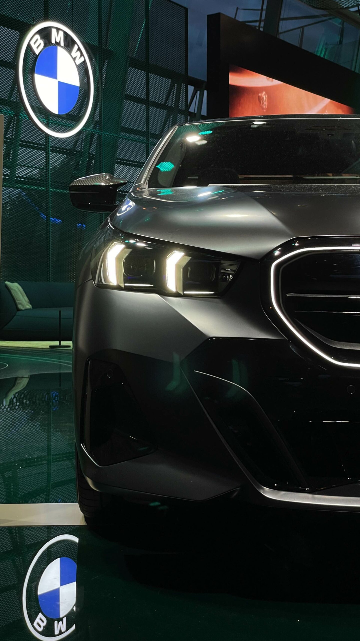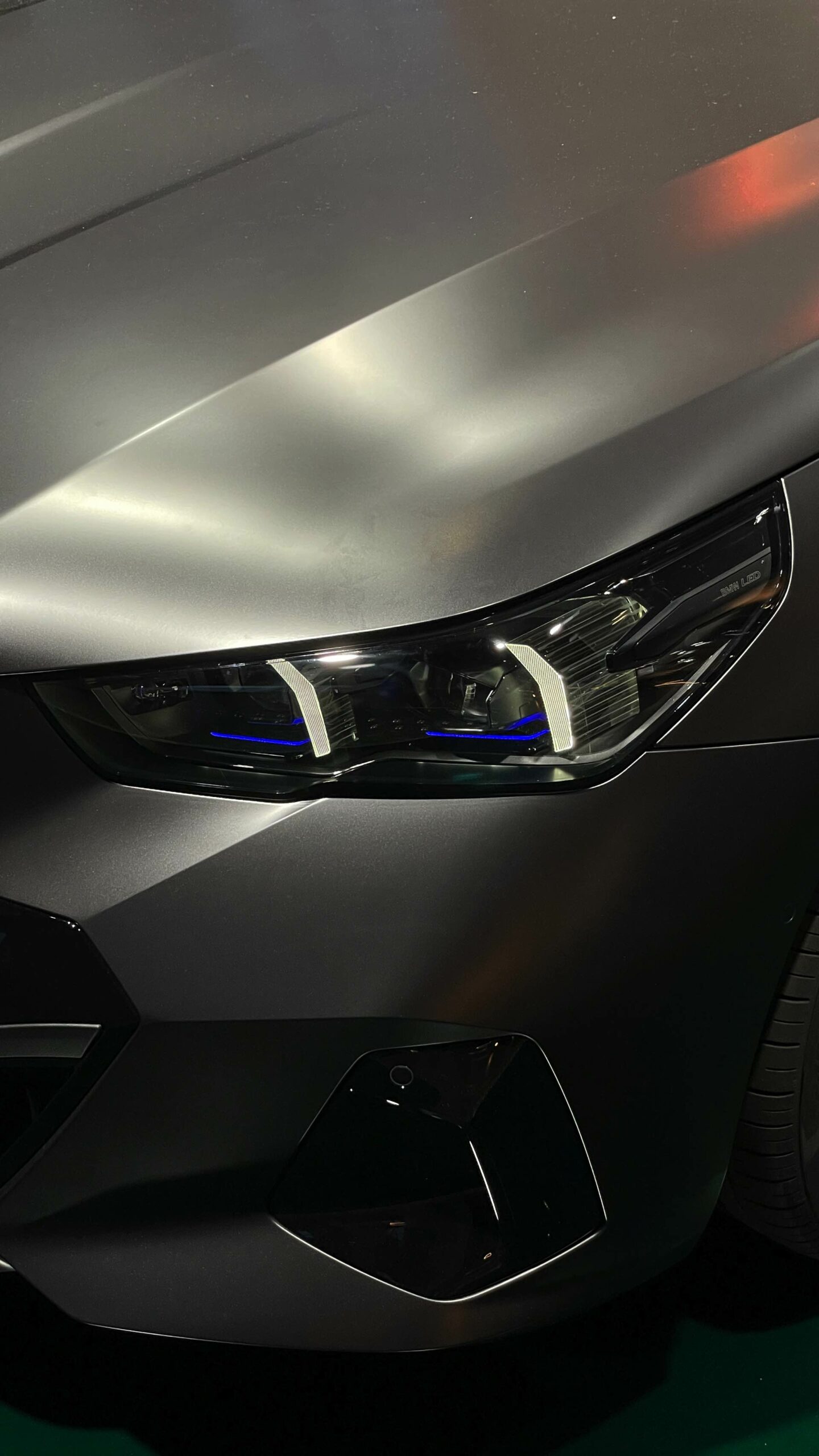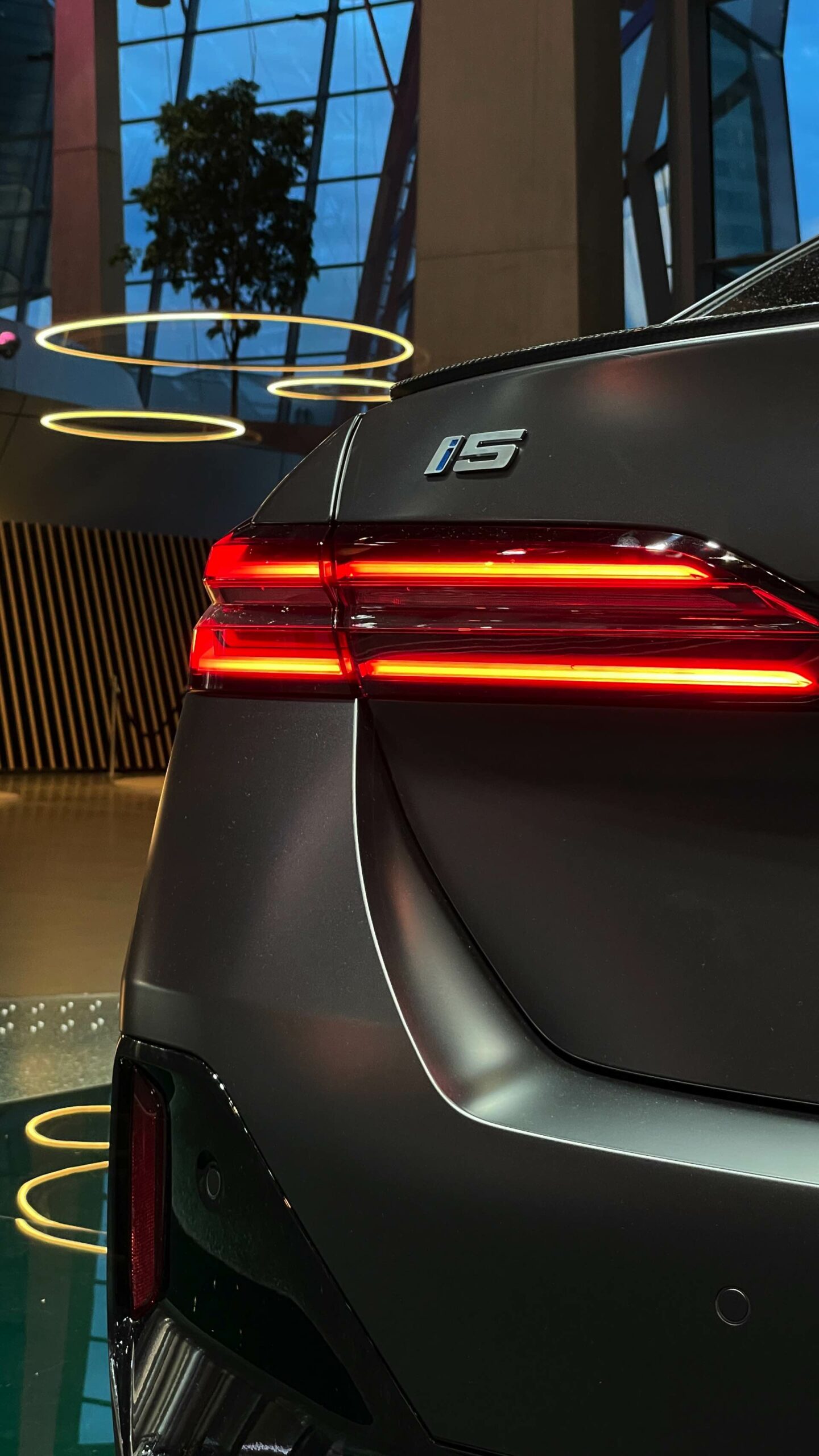 Bis zum Marktstart des neuen BMW i5 M60 und auch der übrigen Varianten der neuen 5er-Generation G60 ist noch etwas Geduld gefragt, aber in der BMW Welt München kann die Business-Limousine schon jetzt betrachtet werden. ChrisM2F87 hat die Gelegenheit genutzt und liefert uns einige der ersten Live-Fotos vom neuen Elektro-5er in Frozen Deep Grey: Die matte Individual-Lackierung in Dunkelgrau betont die Formen des i5 und hebt auch die beleuchteten Elemente besonders hervor. Das gilt nicht nur für die klassische Lichttechnik an Front und Heck, sondern auch für die beleuchteten Iconic Glow-Nieren, die dank der dezent illuminierten Einfassung für eine unverwechselbare Nachtoptik sorgen.