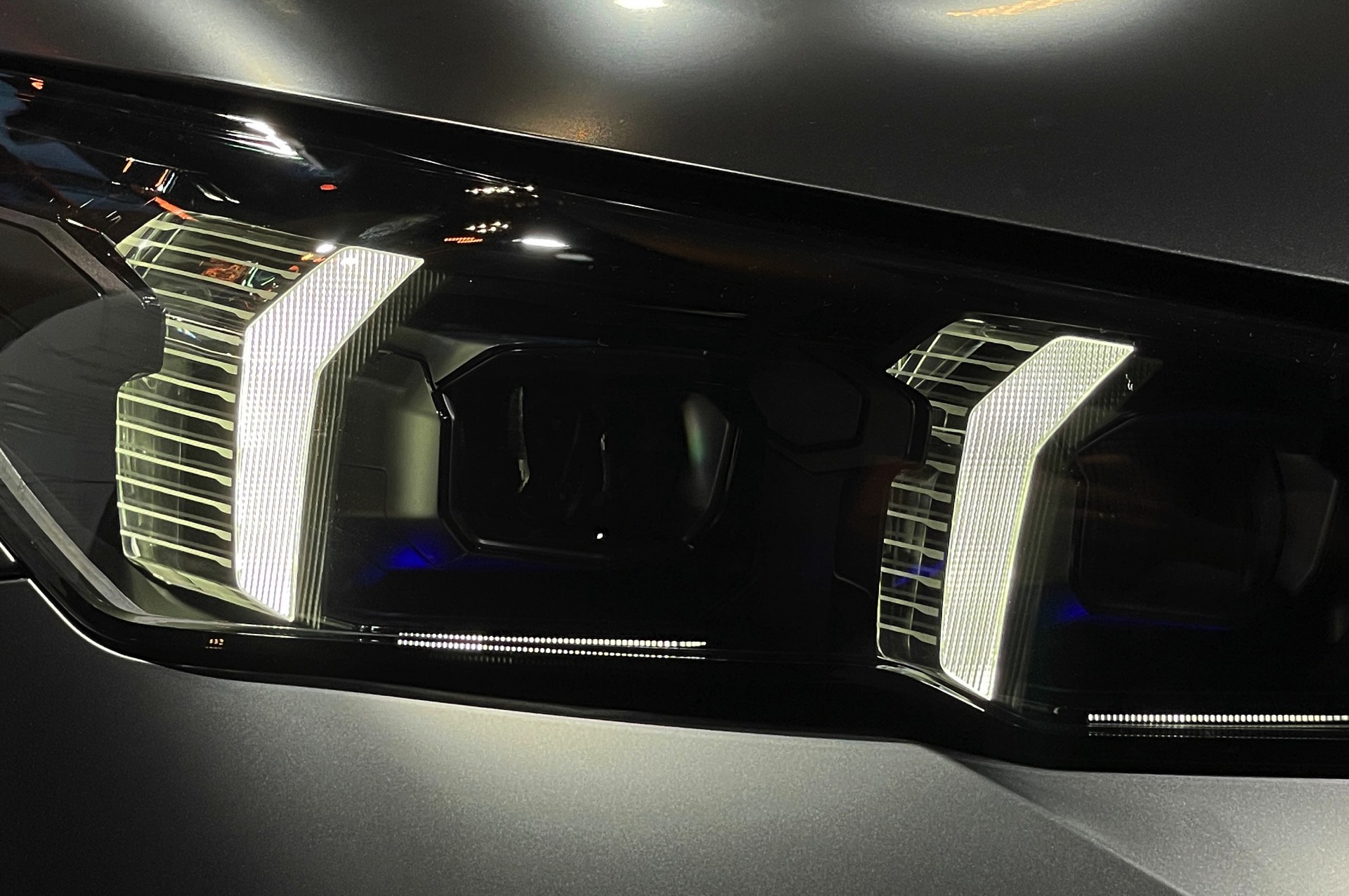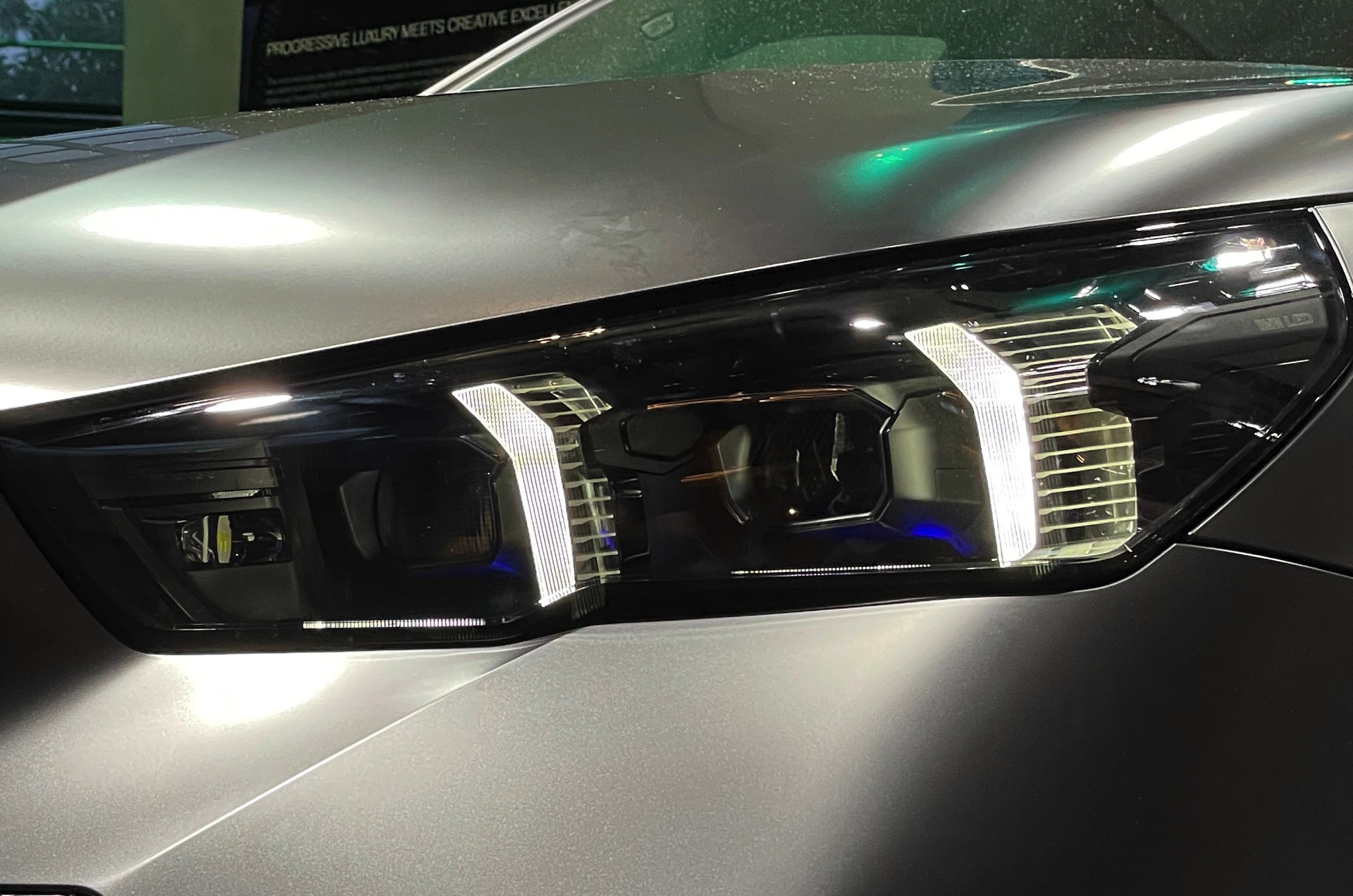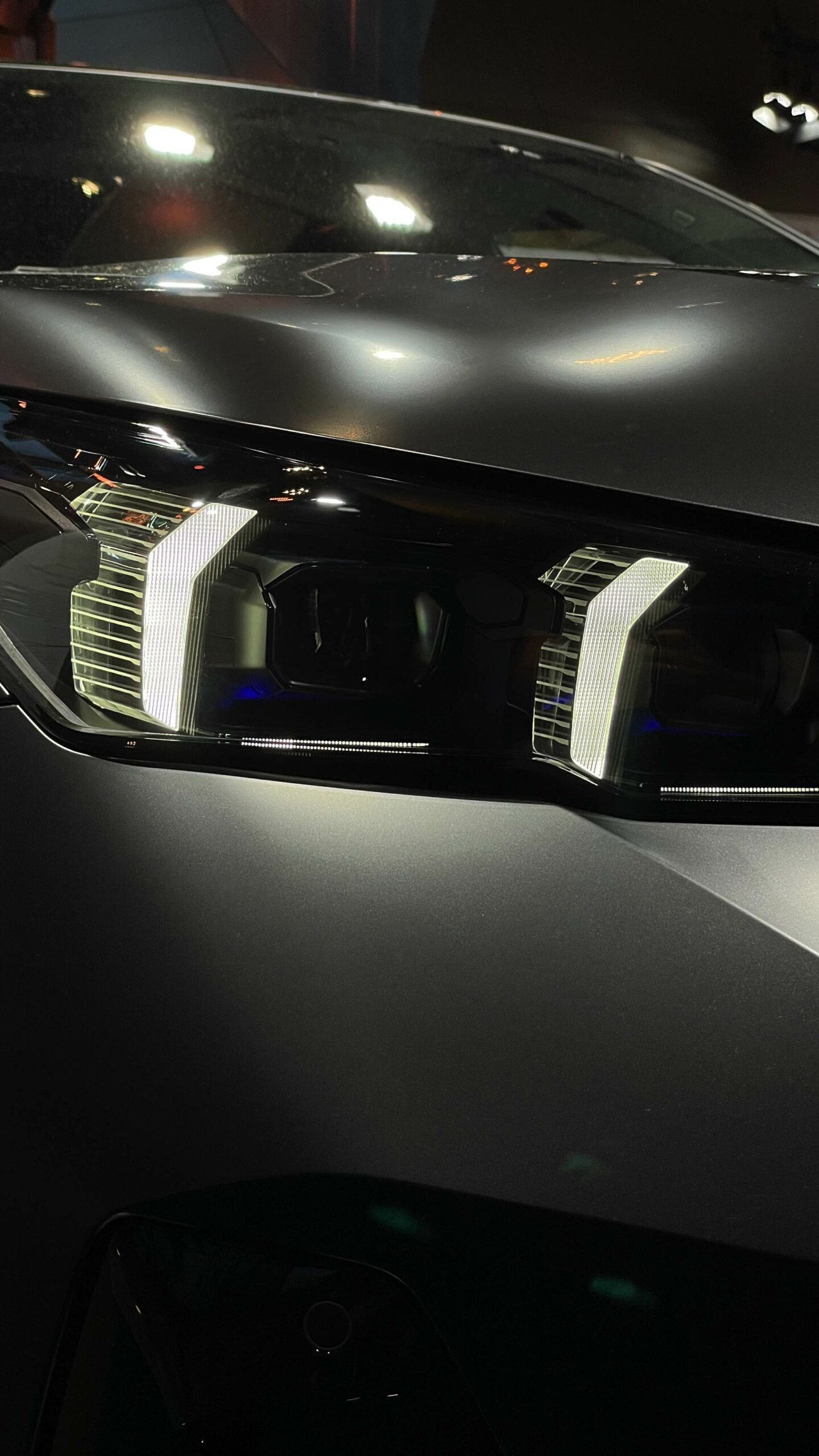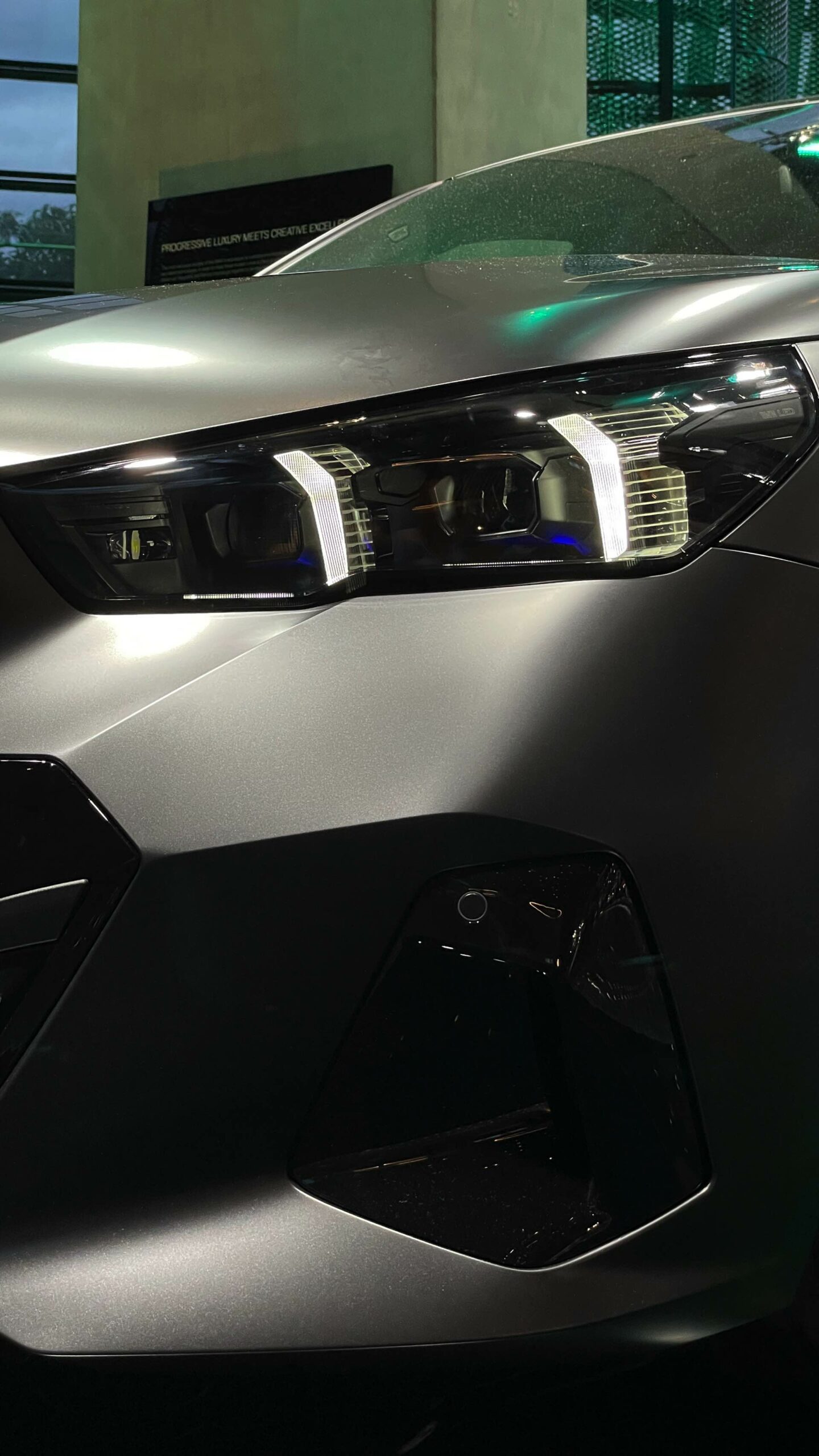Bis zum Marktstart des neuen BMW i5 M60 und auch der übrigen Varianten der neuen 5er-Generation G60 ist noch etwas Geduld gefragt, aber in der BMW Welt München kann die Business-Limousine schon jetzt betrachtet werden. ChrisM2F87 hat die Gelegenheit genutzt und liefert uns einige der ersten Live-Fotos vom neuen Elektro-5er in Frozen Deep Grey: Die matte Individual-Lackierung in Dunkelgrau betont die Formen des i5 und hebt auch die beleuchteten Elemente besonders hervor. Das gilt nicht nur für die klassische Lichttechnik an Front und Heck, sondern auch für die beleuchteten Iconic Glow-Nieren, die dank der dezent illuminierten Einfassung für eine unverwechselbare Nachtoptik sorgen.