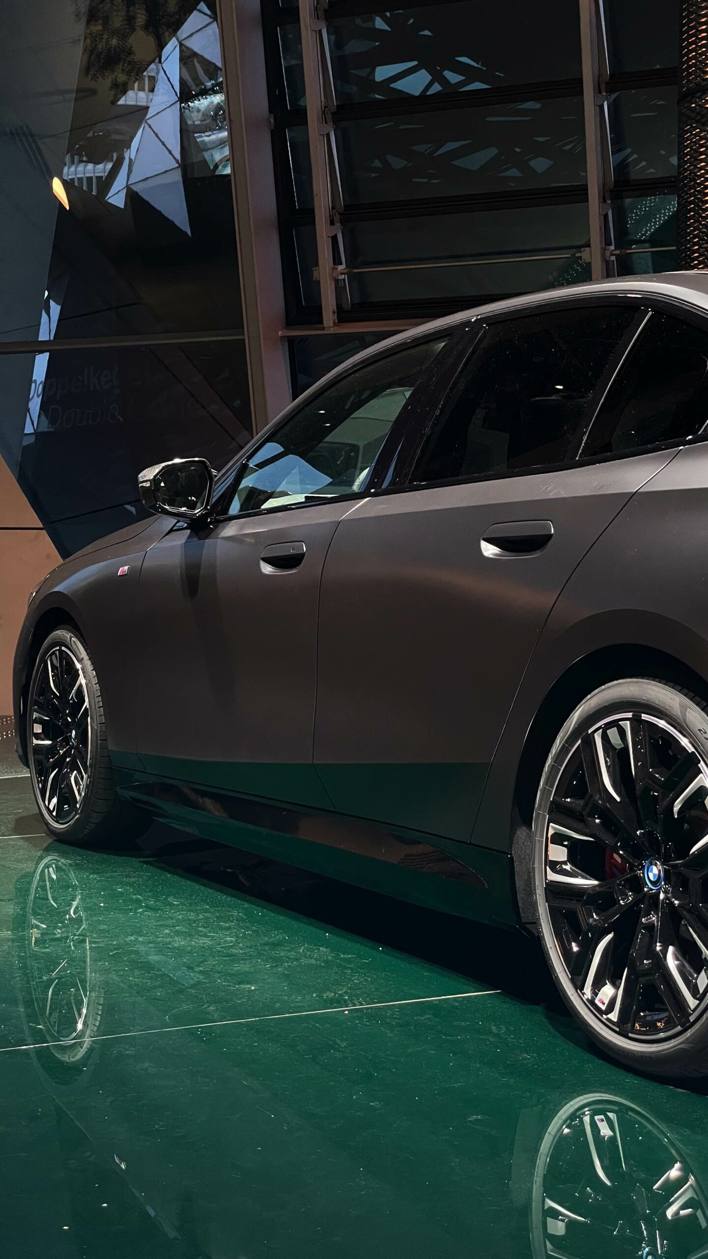 Da der 601 PS starke Elektro-5er über einen Grundpreis von 99.500 Euro verfügt, wandert der Preis selbst bei einiger Zurückhaltung in der Optionsliste beinahe zwangsläufig in den sechsstelligen Bereich. Das aktuelle Ausstellungsfahrzeug in der BMW Welt knackt die 100.000-Euro-Marke locker, schließlich sorgt schon die matte Lackierung in Frozen Deep Grey für 3.750 Euro Aufpreis.