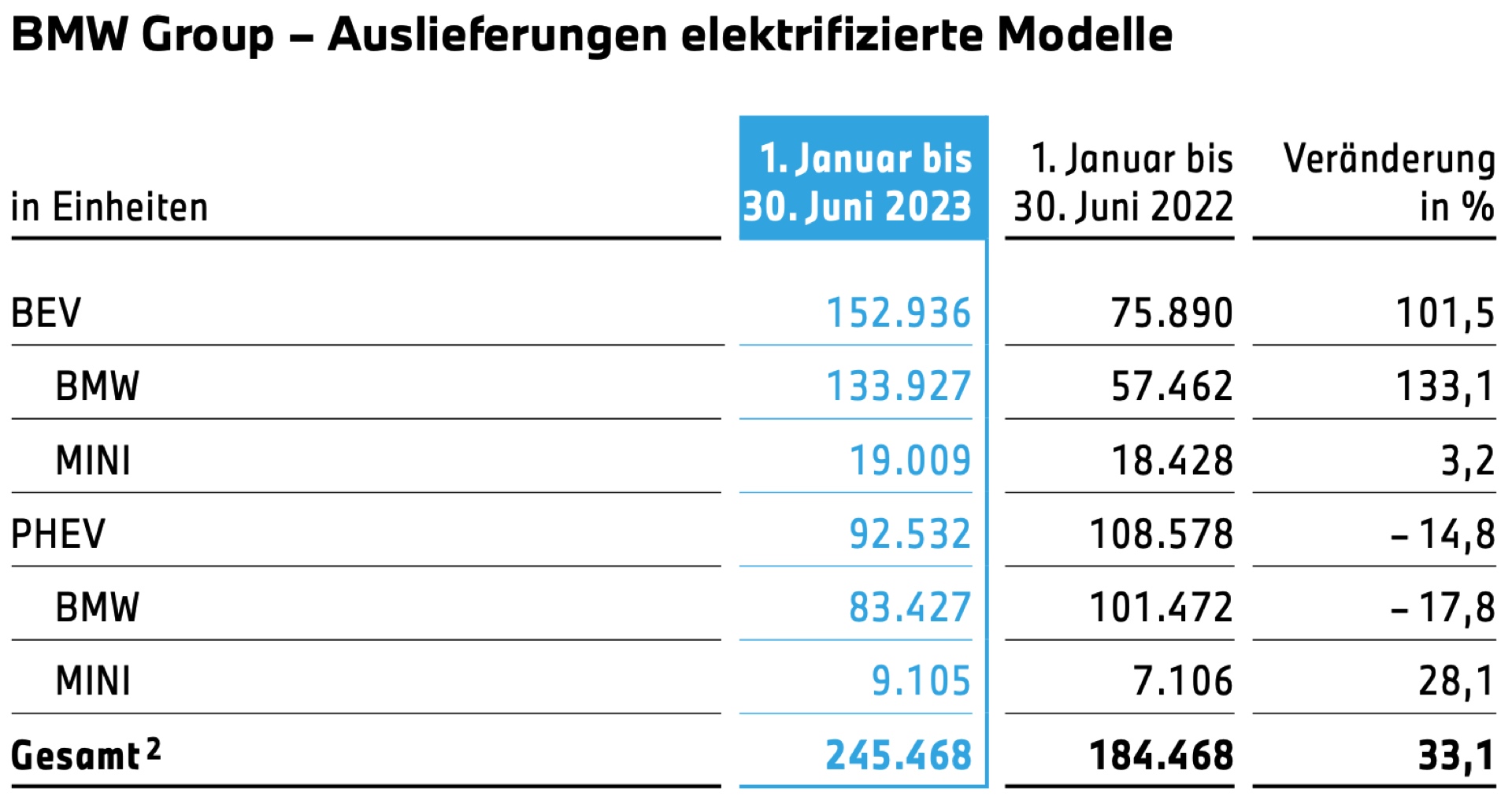 Oliver Zipse (Vorstandsvorsitzender der BMW AG): “Starke Produkte sorgen für starke Nachfrage – und das bei allen Antriebstechnologien. Das zweite Quartal unterstreicht, wie unser breites Angebot die Kunden technologisch überzeugt: Der Absatz von Fahrzeugen mit hocheffizientem Verbrennungsmotor bildet das solide Fundament – und das starke Wachstum entsteht aus der deutlich steigenden Nachfrage nach unseren vollelektrischen Fahrzeugen. Damit vereinen wir beides: konsequente Transformation und wirtschaftlichen Erfolg. Wir richten das Unternehmen zielgerichtet und entschlossen auf die Zukunft aus und erhalten gleichzeitig unsere hohe Profitabilität.”