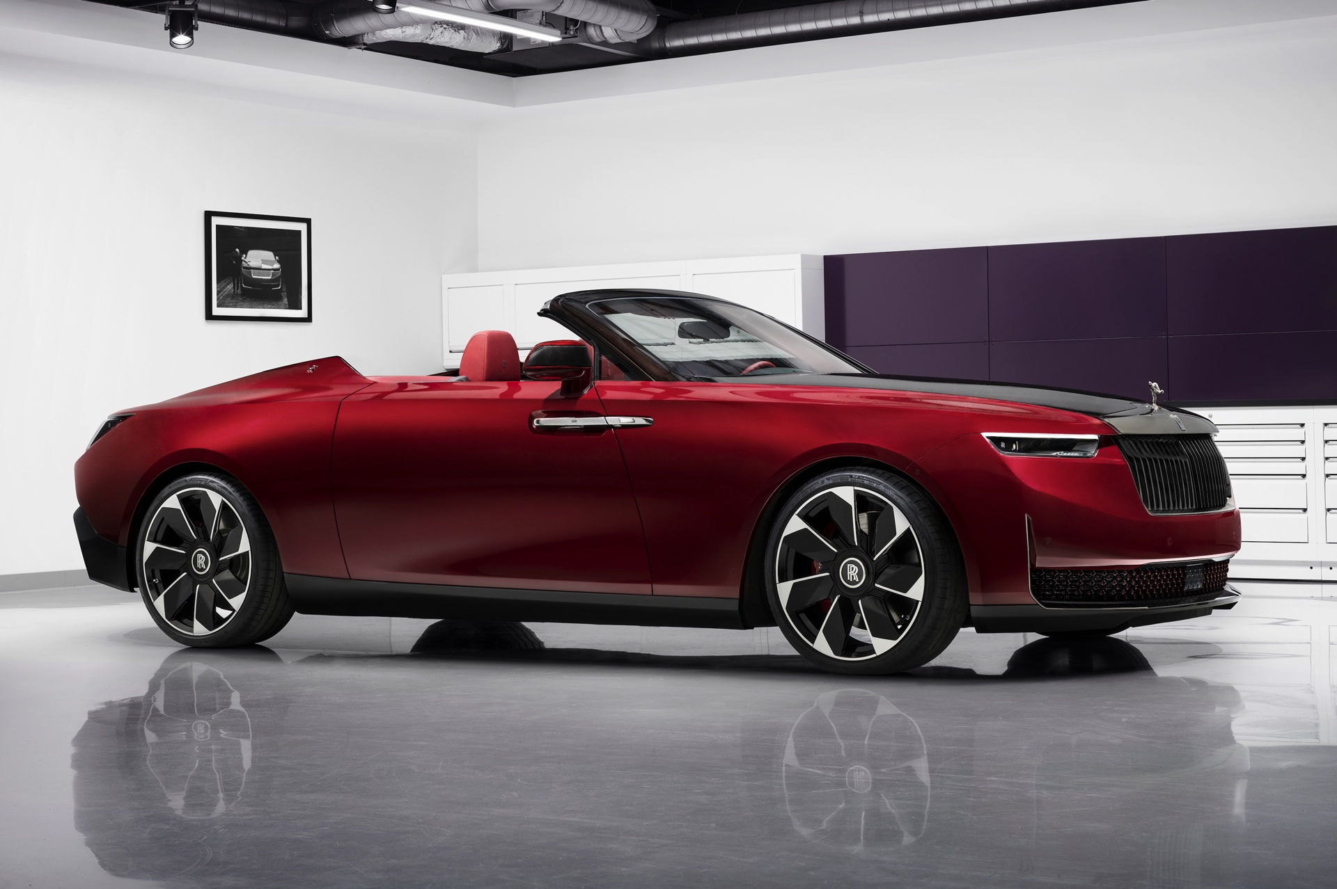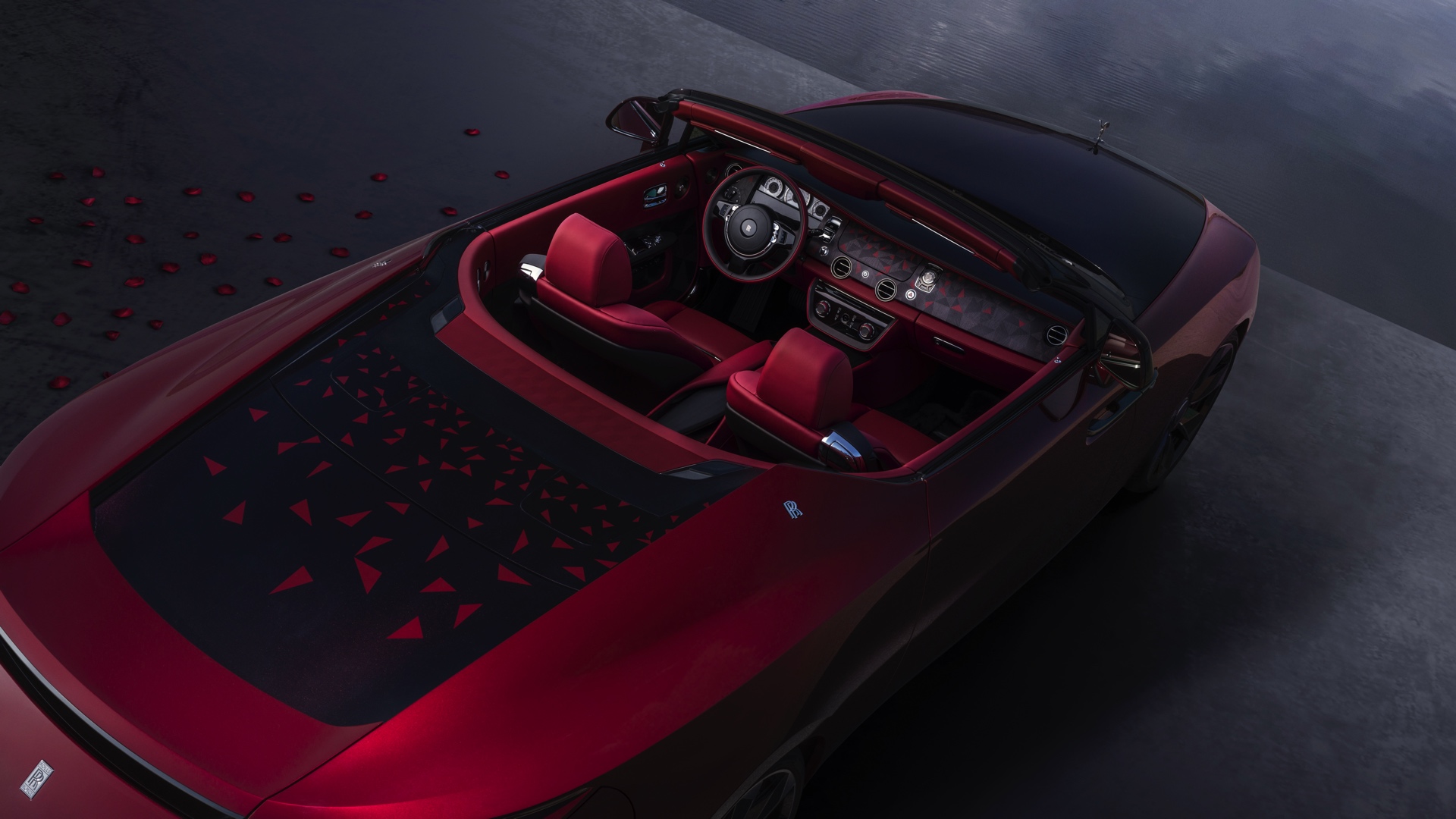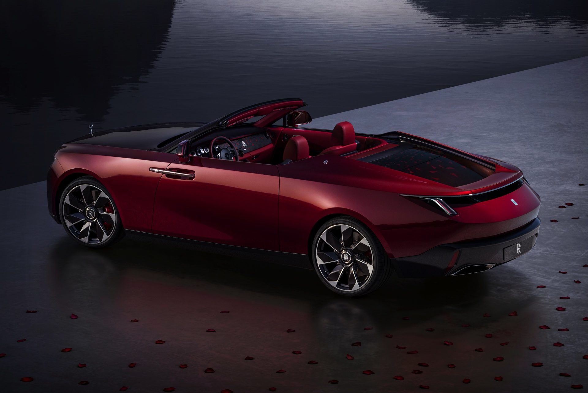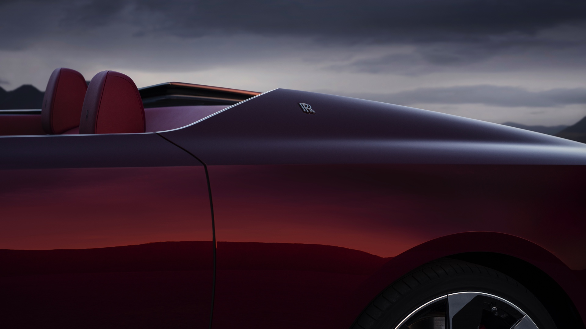 Benannt ist der La Rose Noire Droptail nach der ‘Black Baccara’-Rose, die mit ihrer tiefroten Färbung zu den edelsten Rosen der Welt zählt. Der nach ihr benannte Zweisitzer steht in der Tradition von Coachbuild-Fahrzeugen wie Rolls-Royce Sweptail und Boat Tail, die jeweils zu den teuersten Neuwagen ihrer Zeit zählten. Er ist die wohl luxuriöseste Interpretation eines Roadsters unserer Zeit und nutzt dafür nicht die Architecture of Luxury, auf deren Basis die “regulären” Rolls-Royce-Modelle von Ghost über Phantom bis Spectre entstehen. Stattdessen verfügt der 5,30 Meter lange Rolls-Royce La Rose Noire über eine eigenständige Basis, die noch mehr Individualisierung erlaubt.