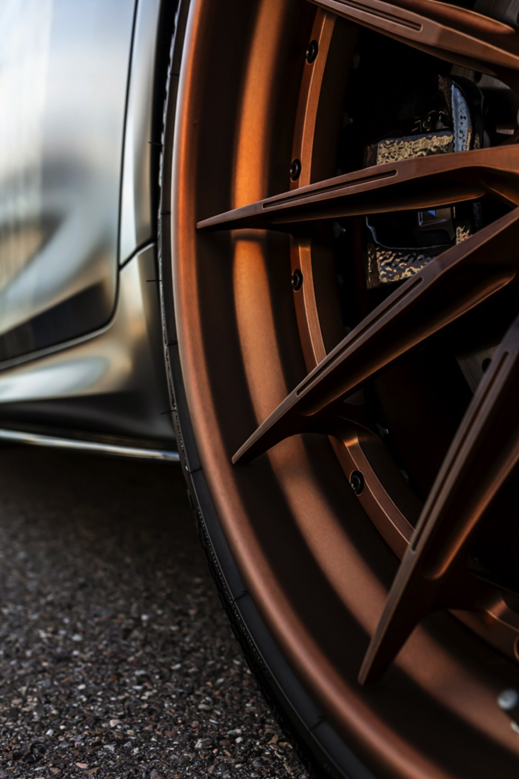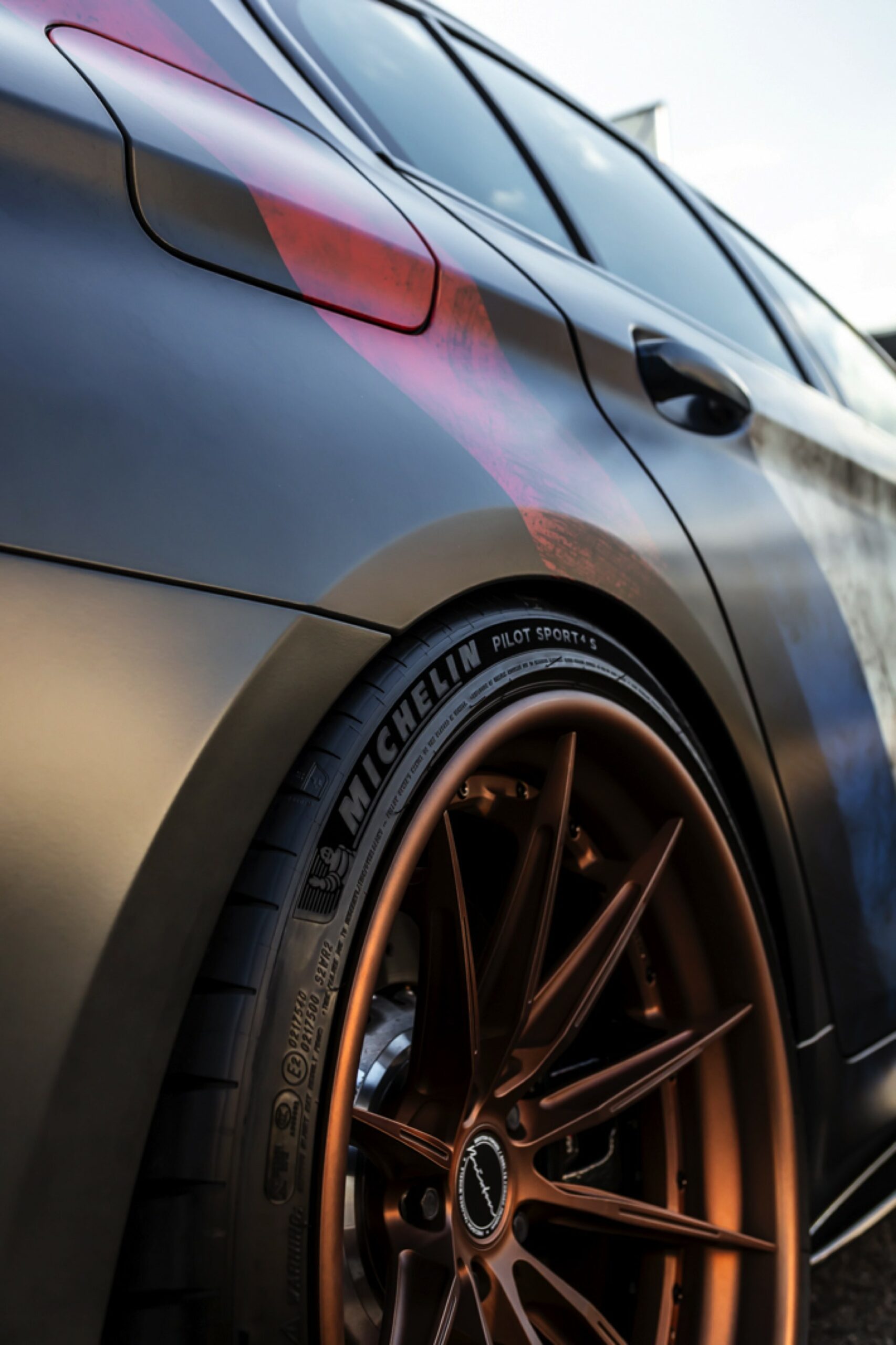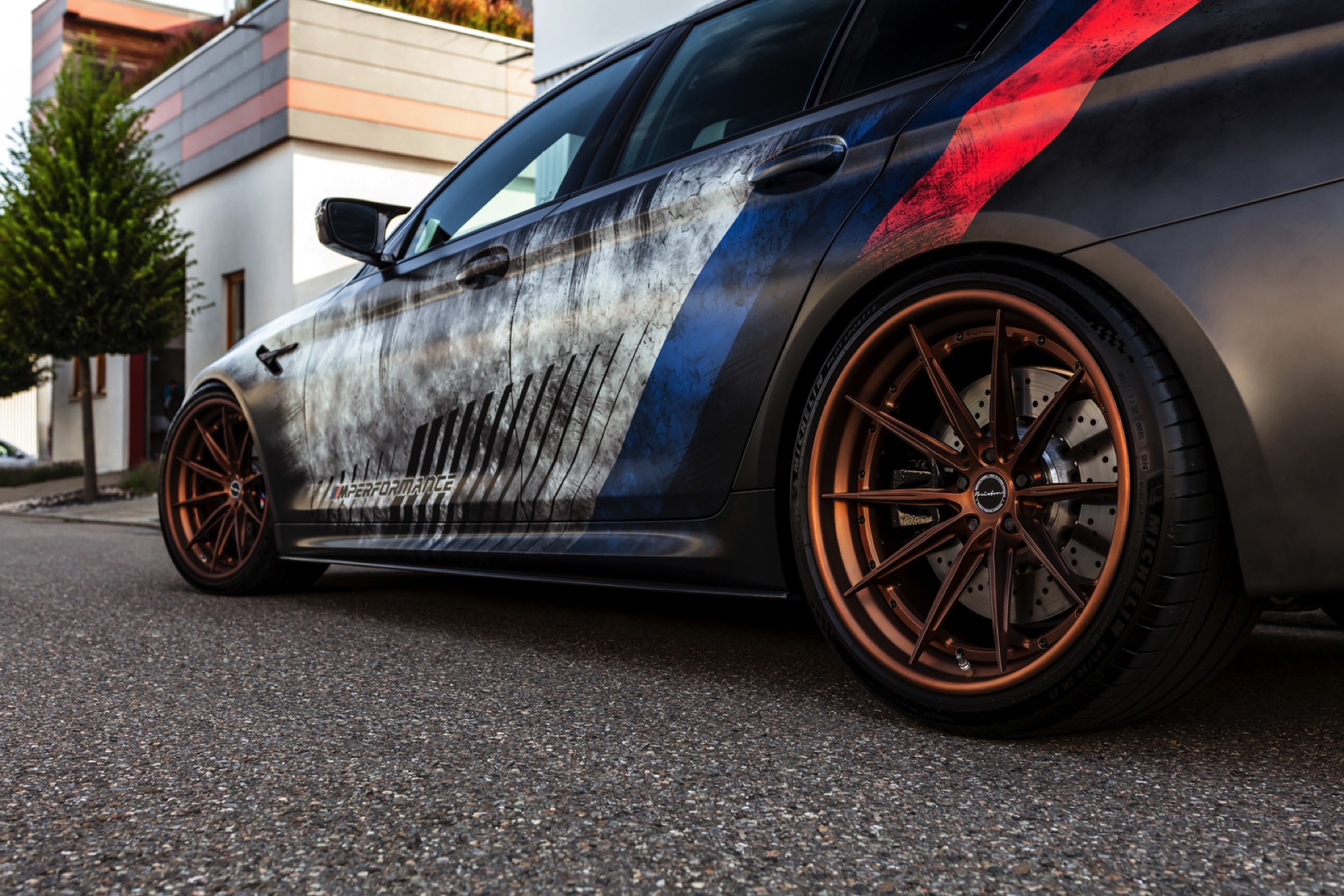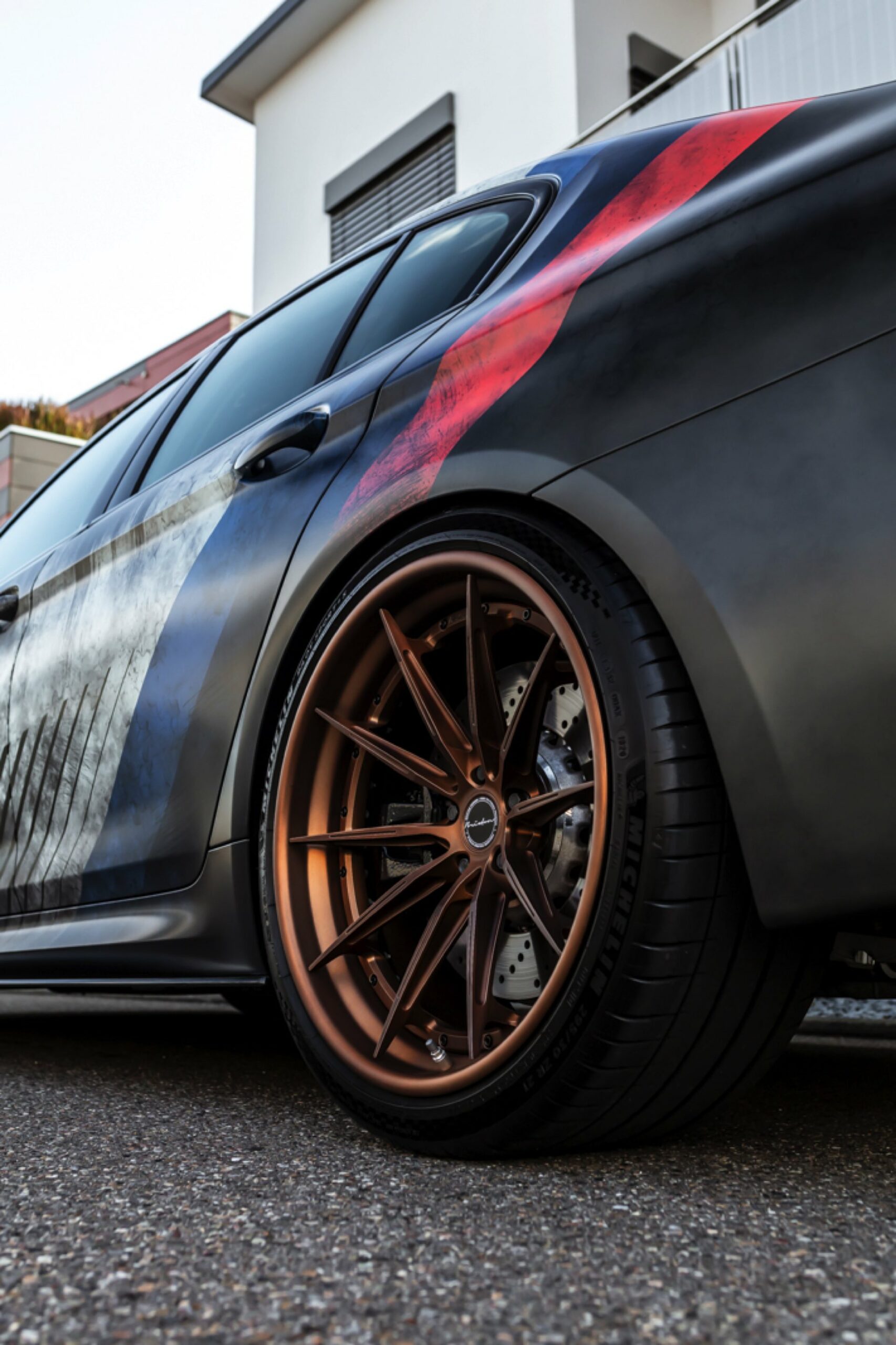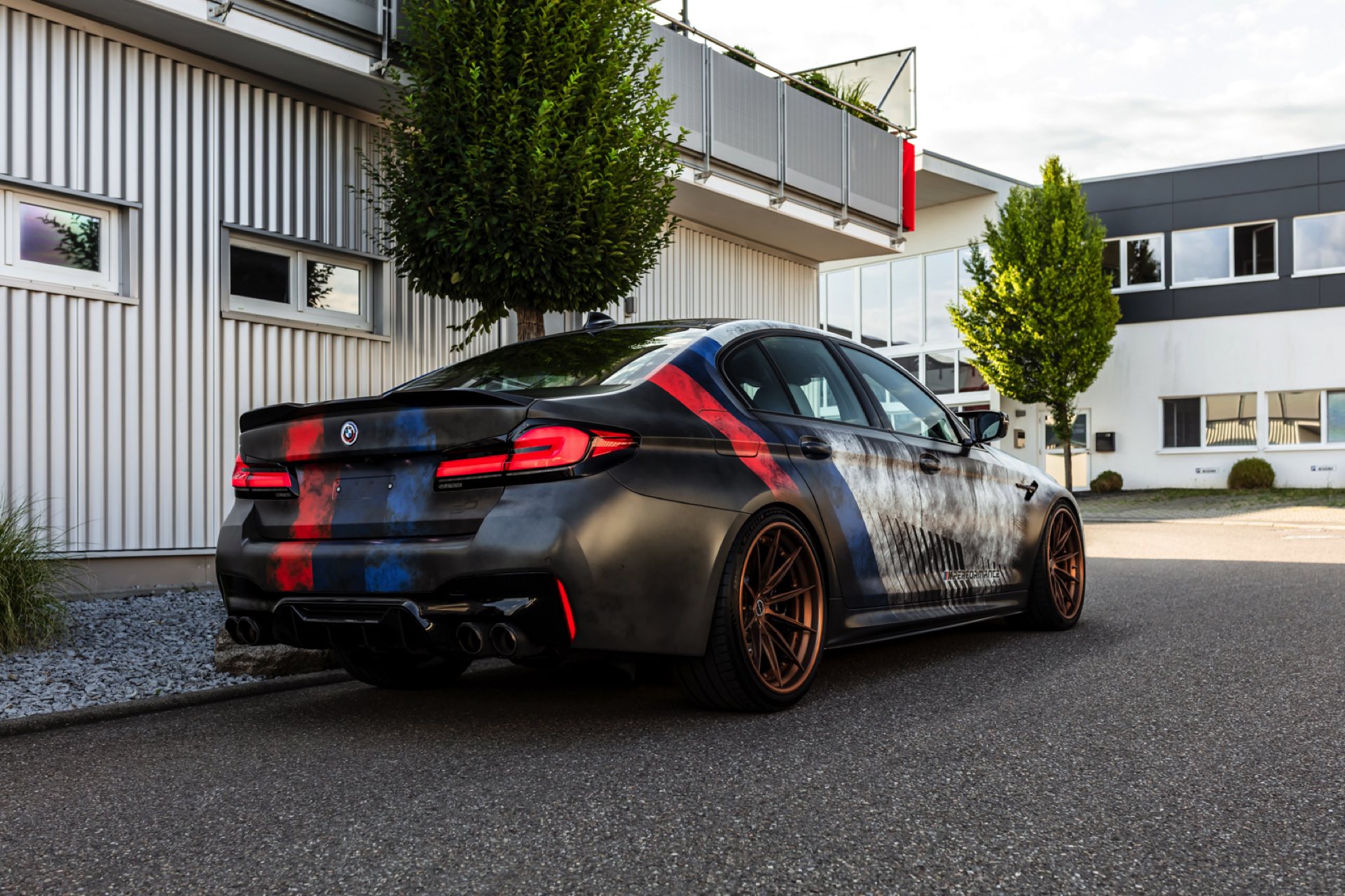 Dass der gezeigte BMW M5 Competition strahlend sauber ist, offenbart sich beim Blick auf die Felgen: Mit ihrem Finish in Bronze glänzen hier die Brixton R11-R Ultrasport-Felgen, die den unverwechselbaren Auftritt der 625 PS starken Power-Limousine gemeinsam mit einer Spoiler-Lippe auf der Kofferraum-Haube und den Jubiläums-Logos zum 50. Geburtstag der M GmbH kraftvoll abrunden.