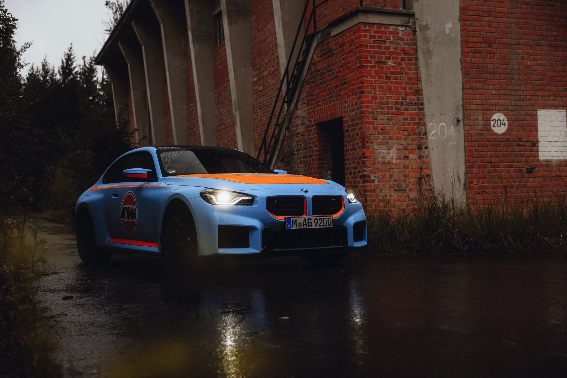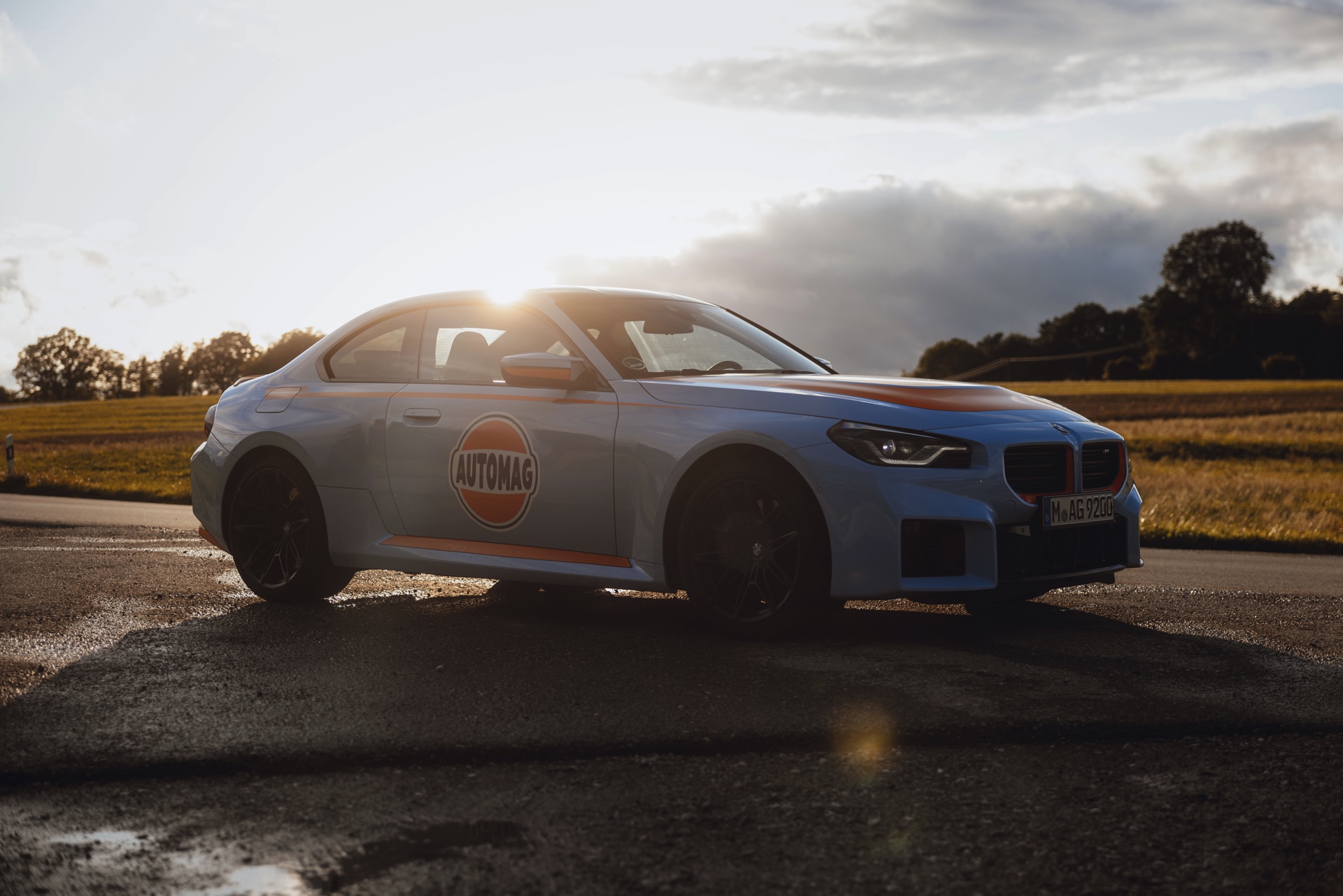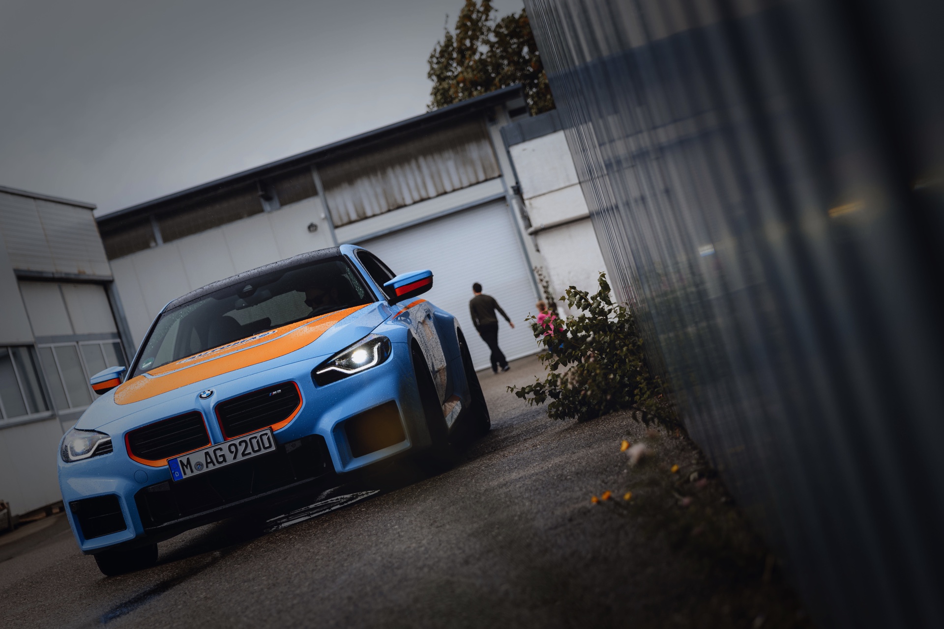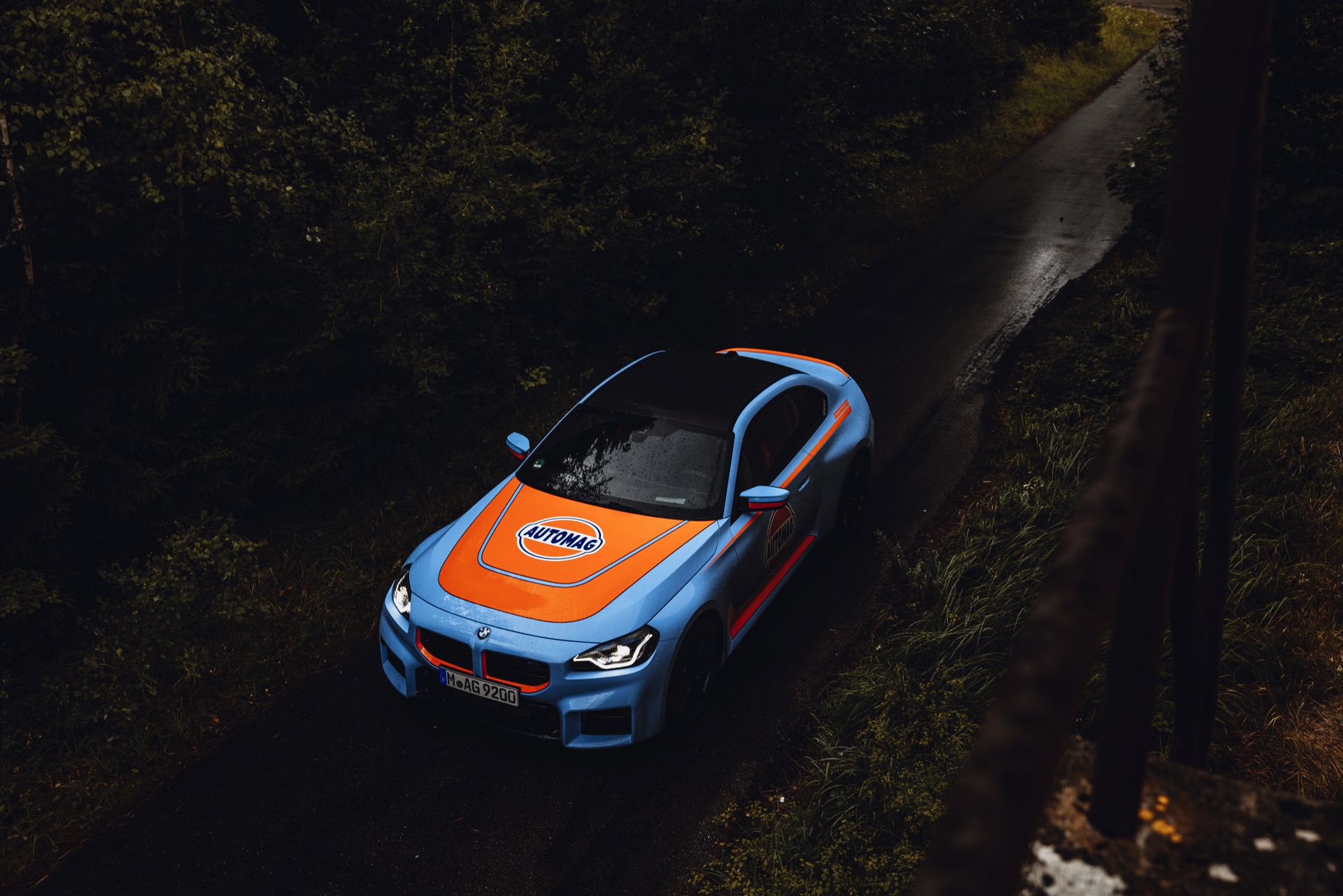 Auto-Fans in aller Welt geraten beim Anblick eines Sportwagens in Hellblau und Orange ins Schwärmen: Das charakteristische Gulf-Design war seit den 1960er-Jahren ein Hingucker auf unzähligen Rennstrecken und lebt in verschiedenen Neuinterpretationen bis heute fort. Per Folierung kommt nun auch der neue BMW M2 (G87) in den Genuss des ikonischen Designs – und das mit vergleichsweise wenig Aufwand und entsprechend günstig, denn zumindest in Verbindung mit der Launch-Farbe Zandvoort Blau muss dabei keinesfalls das gesamte Fahrzeug foliert werden.