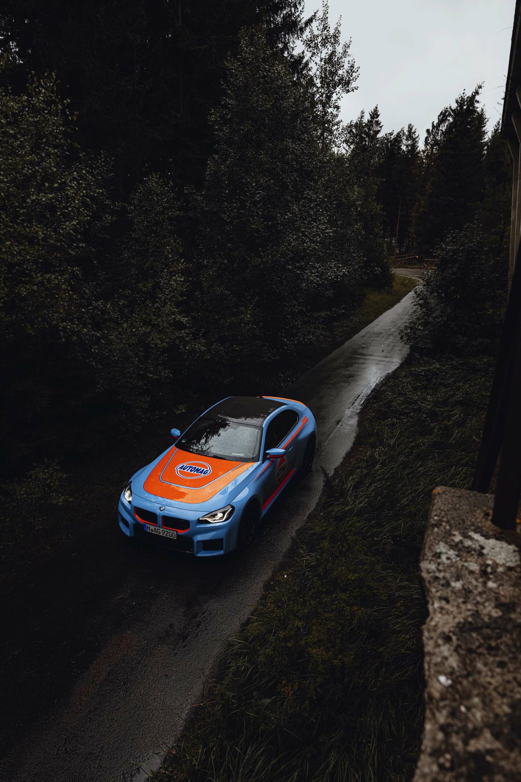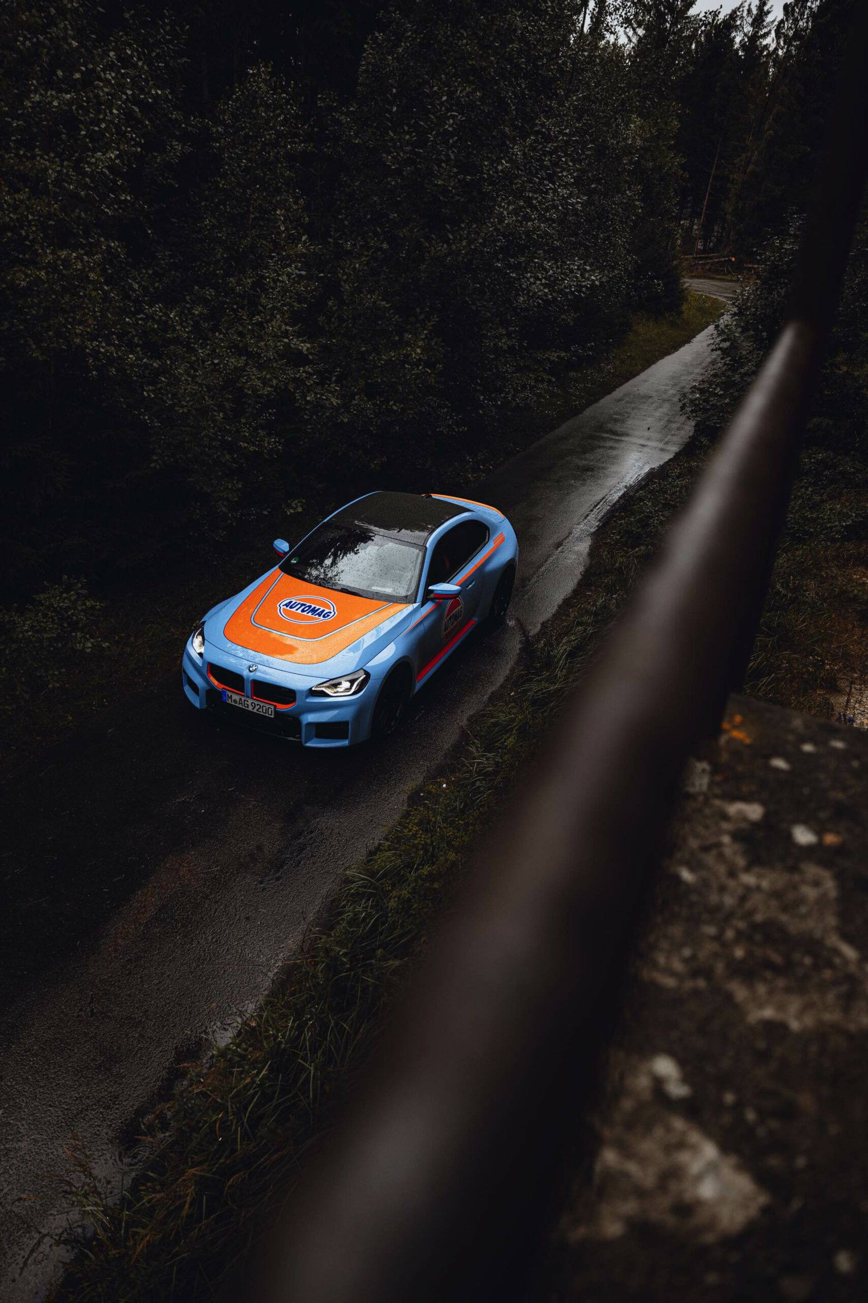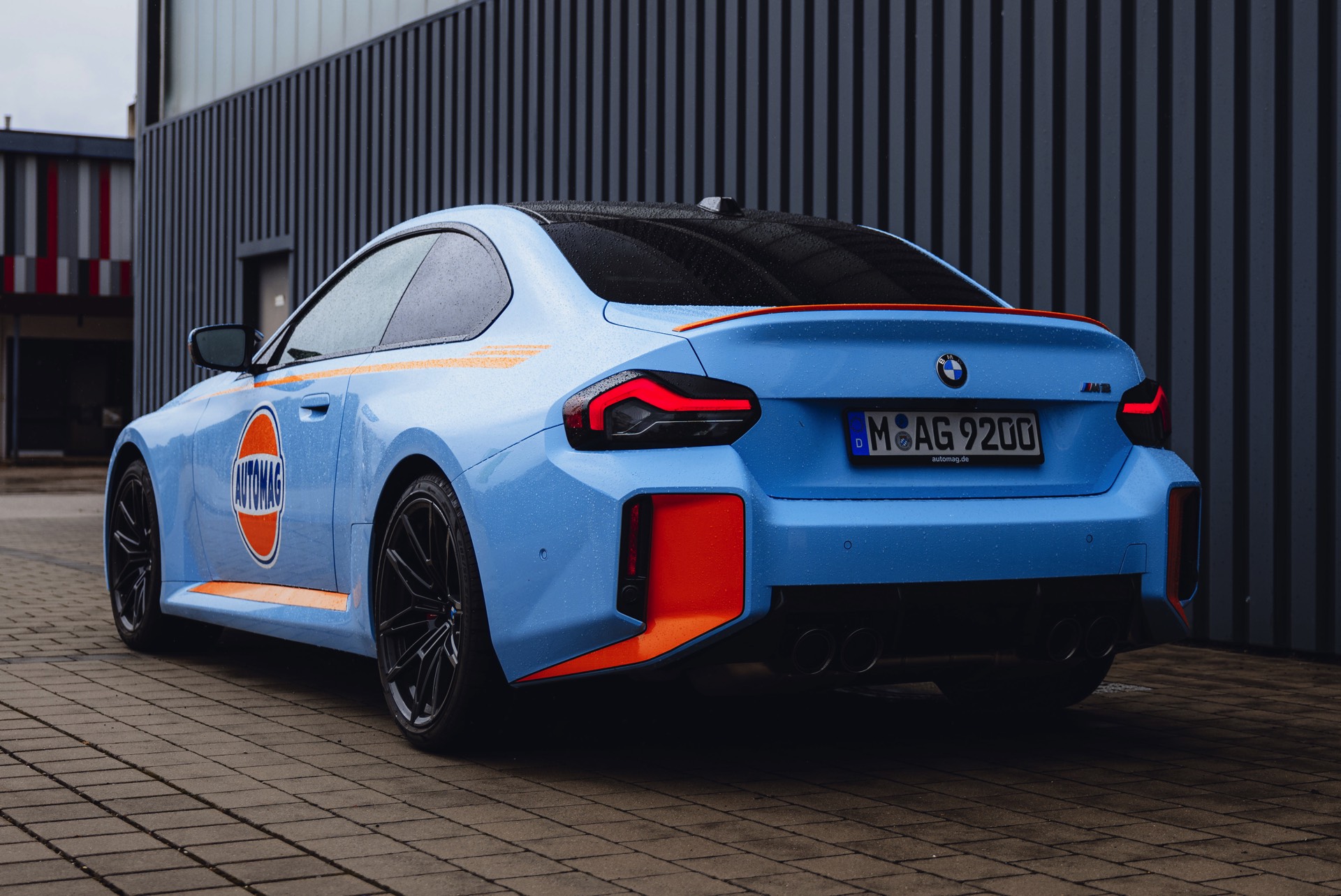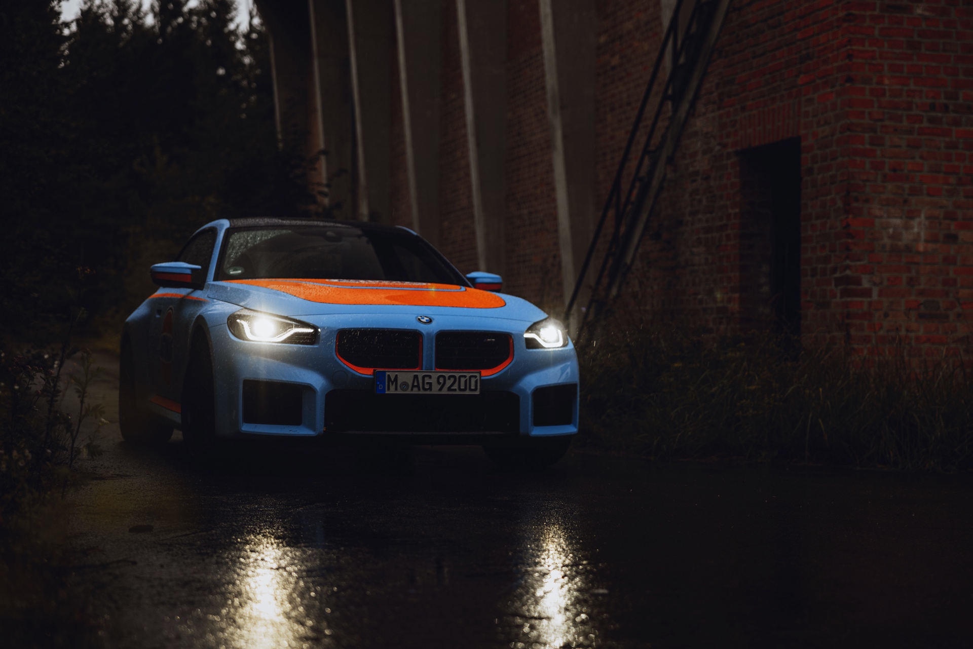 Auto-Fans in aller Welt geraten beim Anblick eines Sportwagens in Hellblau und Orange ins Schwärmen: Das charakteristische Gulf-Design war seit den 1960er-Jahren ein Hingucker auf unzähligen Rennstrecken und lebt in verschiedenen Neuinterpretationen bis heute fort. Per Folierung kommt nun auch der neue BMW M2 (G87) in den Genuss des ikonischen Designs – und das mit vergleichsweise wenig Aufwand und entsprechend günstig, denn zumindest in Verbindung mit der Launch-Farbe Zandvoort Blau muss dabei keinesfalls das gesamte Fahrzeug foliert werden.