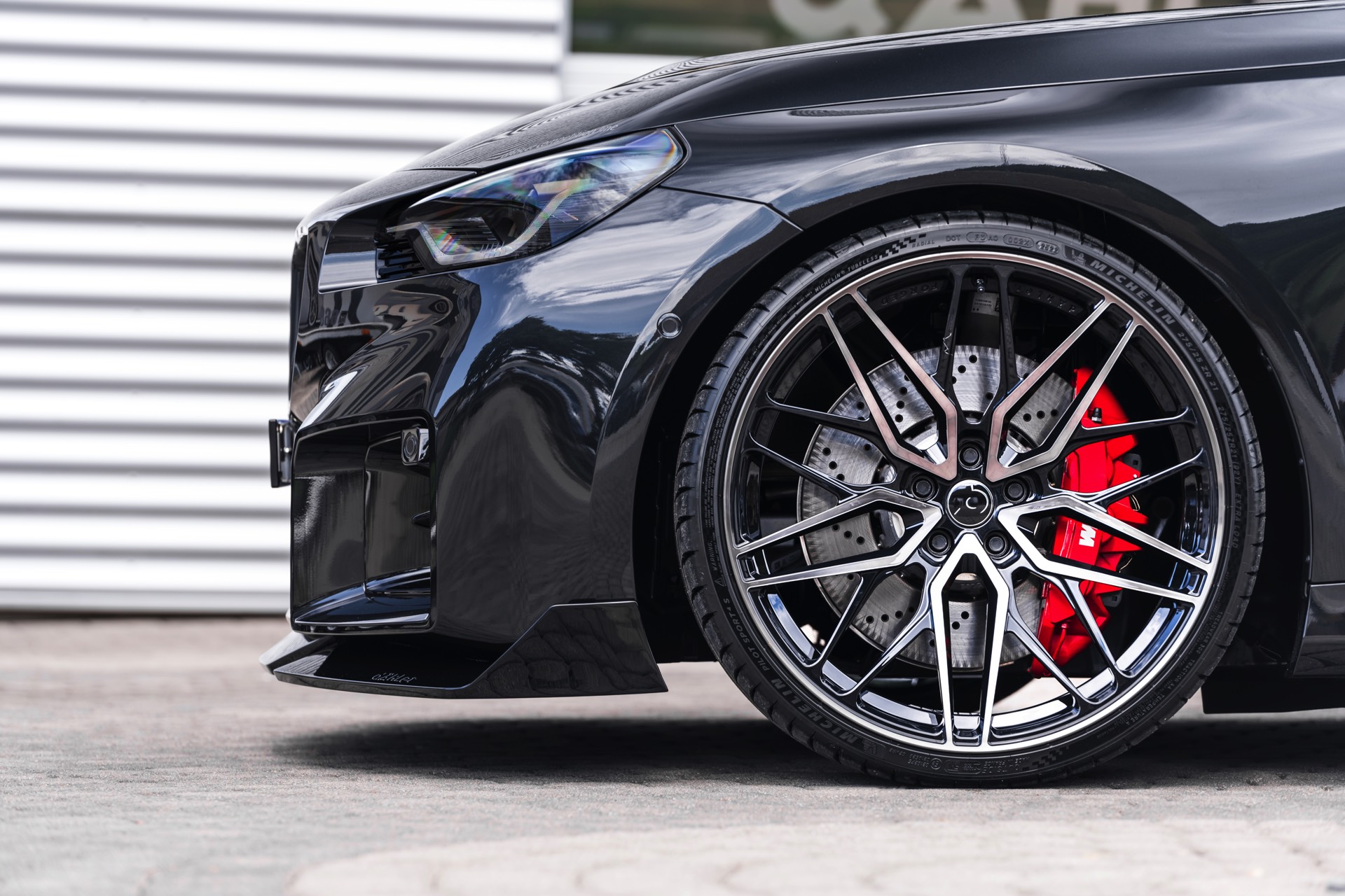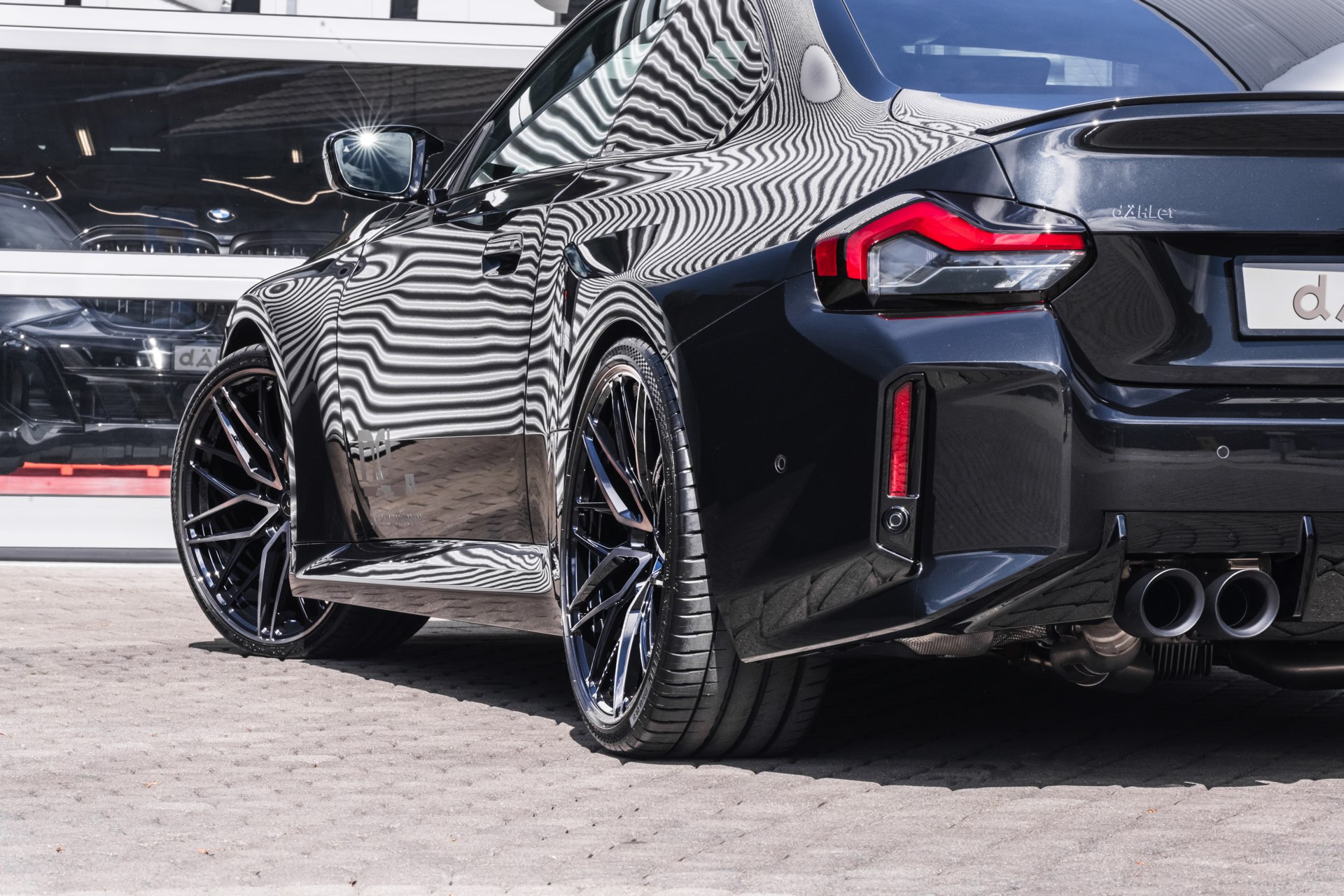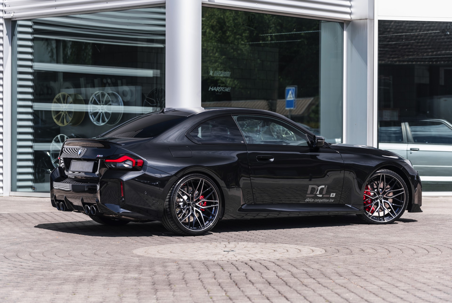 In den breit ausgestellten Radhäusern des BMW M2 (G87) kommen vorne wie hinten 21 Zoll große Schmiede-Felgen im CDC2-Design von Dähler zum Einsatz, darauf arbeiten vorn 275 Millimeter breite Michelin Pilot Sport 4 S und hinten sogar die 305 Millimeter breite Ausführung der bewährten Sportreifen. Abgerundet wird der brutale Auftritt des auf 552 PS erstarkten M2 mit einem Frontsplitter, der sowohl in Sicht-Carbon als auch mit Lackierung in Wagenfarbe bestellt werden kann.