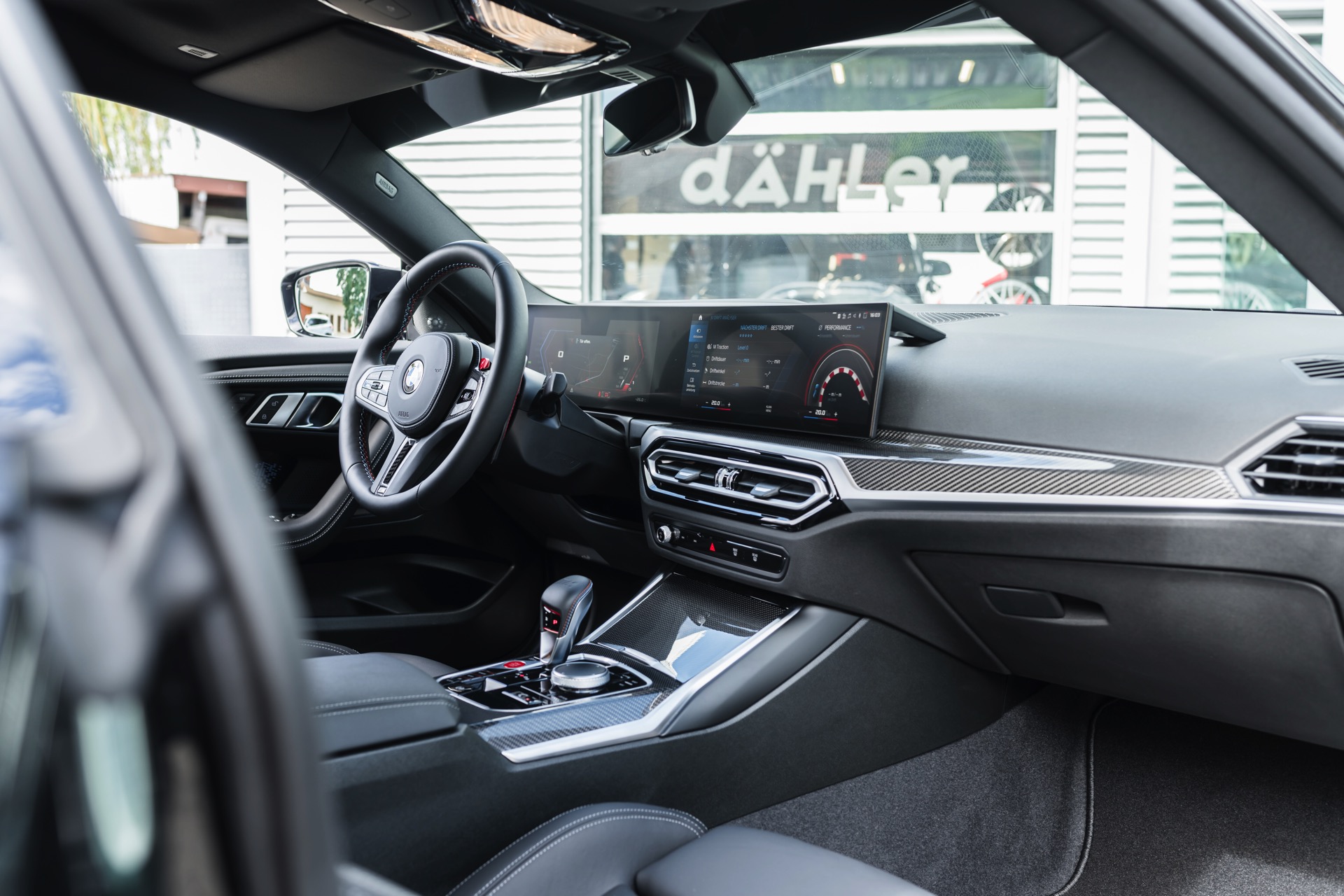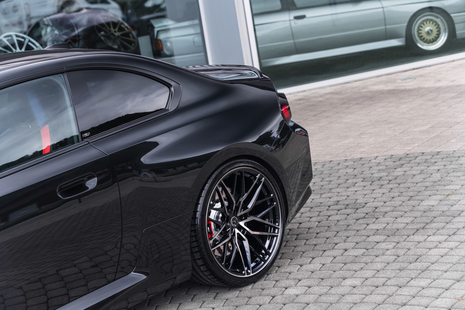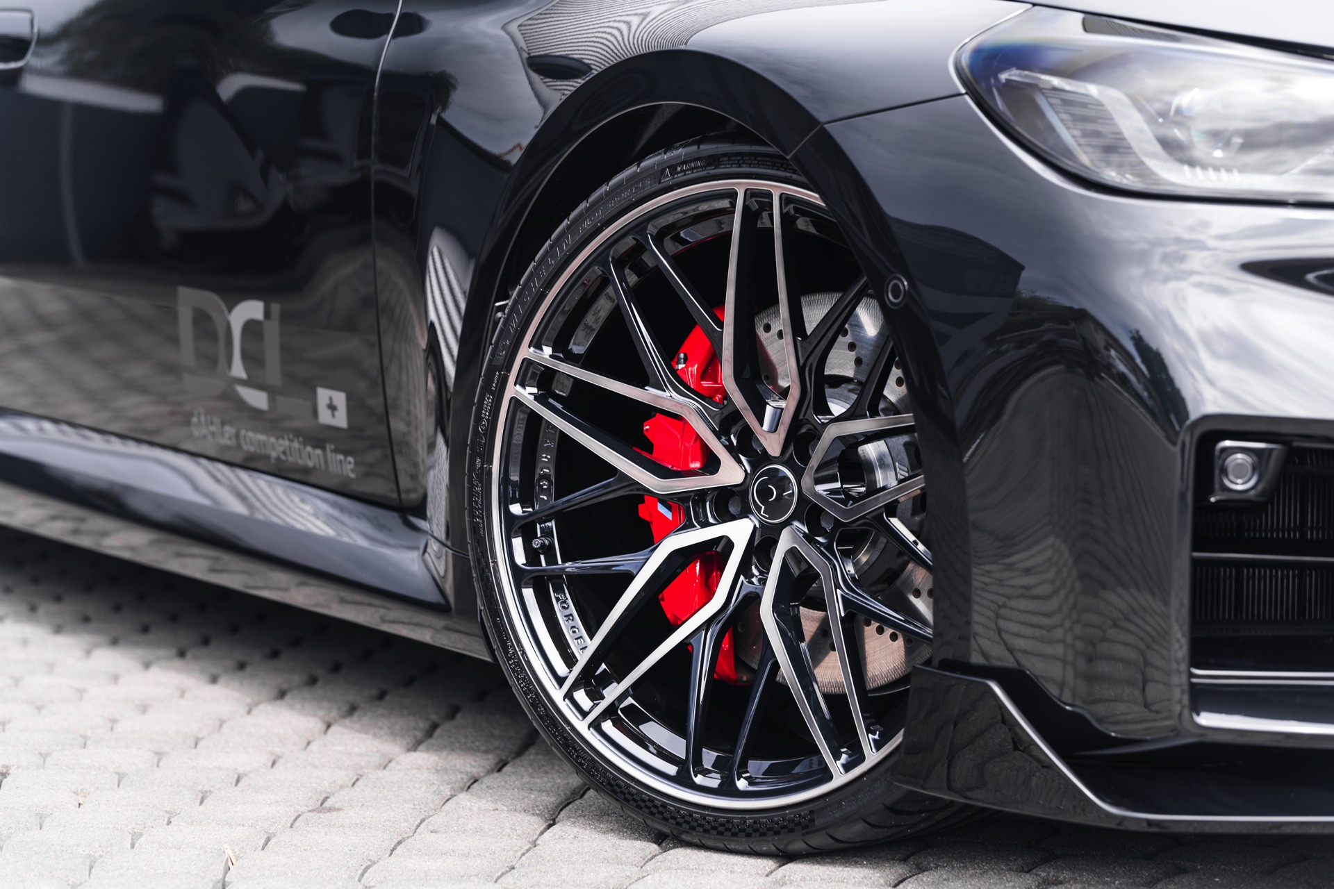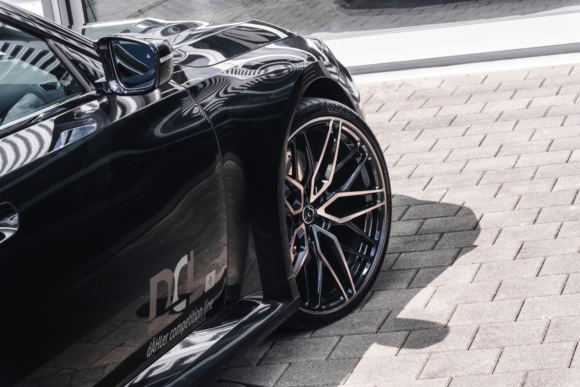 In den breit ausgestellten Radhäusern des BMW M2 (G87) kommen vorne wie hinten 21 Zoll große Schmiede-Felgen im CDC2-Design von Dähler zum Einsatz, darauf arbeiten vorn 275 Millimeter breite Michelin Pilot Sport 4 S und hinten sogar die 305 Millimeter breite Ausführung der bewährten Sportreifen. Abgerundet wird der brutale Auftritt des auf 552 PS erstarkten M2 mit einem Frontsplitter, der sowohl in Sicht-Carbon als auch mit Lackierung in Wagenfarbe bestellt werden kann.