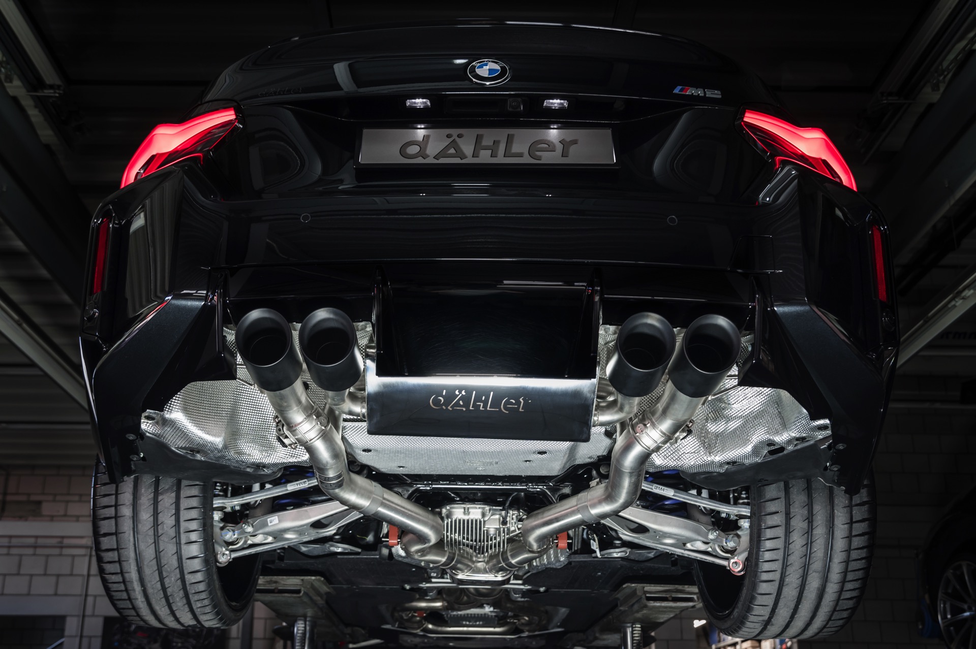 Für das Motor-Tuning optimiert Dähler sowohl die Einlass- als auch die Auslass-Seite des Triebwerks: Carbon Air-Intake und Sportluftfilter erleichtern den Weg der Luft in die Brennkammern, eine Edelstahl-Abgasanlage mit Bi-Klappensteuerung und Keramik-beschichteten 100-Millimeter-Endrohren lässt den S58 noch freier ausatmen und verspricht gleichzeitig einen noch satteren Sound. Trotz der Leistungssteigerung um mehr als 90 PS spricht Dähler Competition ausdrücklich nur von “Stufe 1” und sieht ausdrücklich noch Luft für mindestens eine weitere Stufe, die “Stufe 2” befindet sich demnach bereits in der Entwicklung und dürfte den BMW M2 (G87) aller Voraussicht nach in den Bereich der 600-PS-Marke pushen.