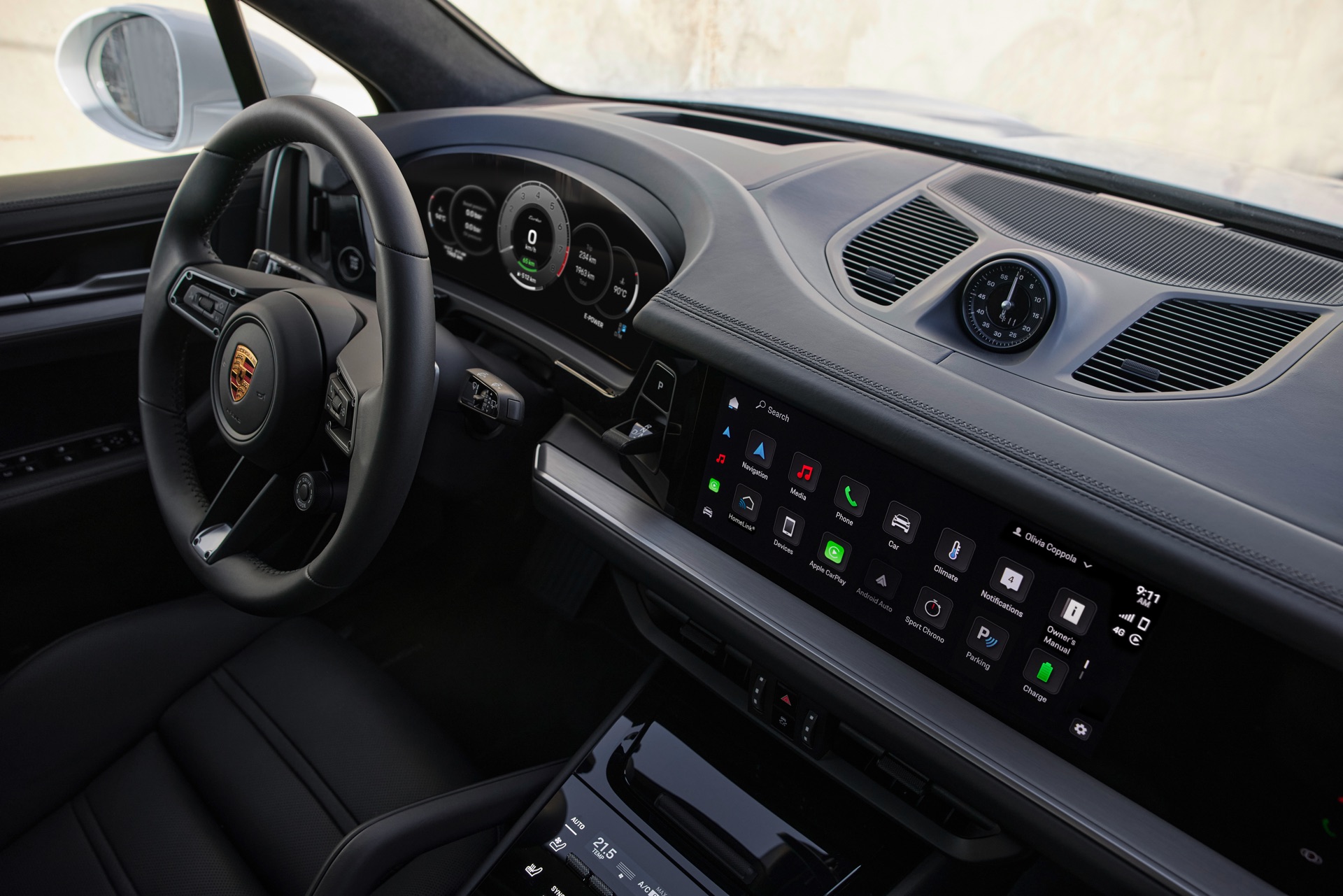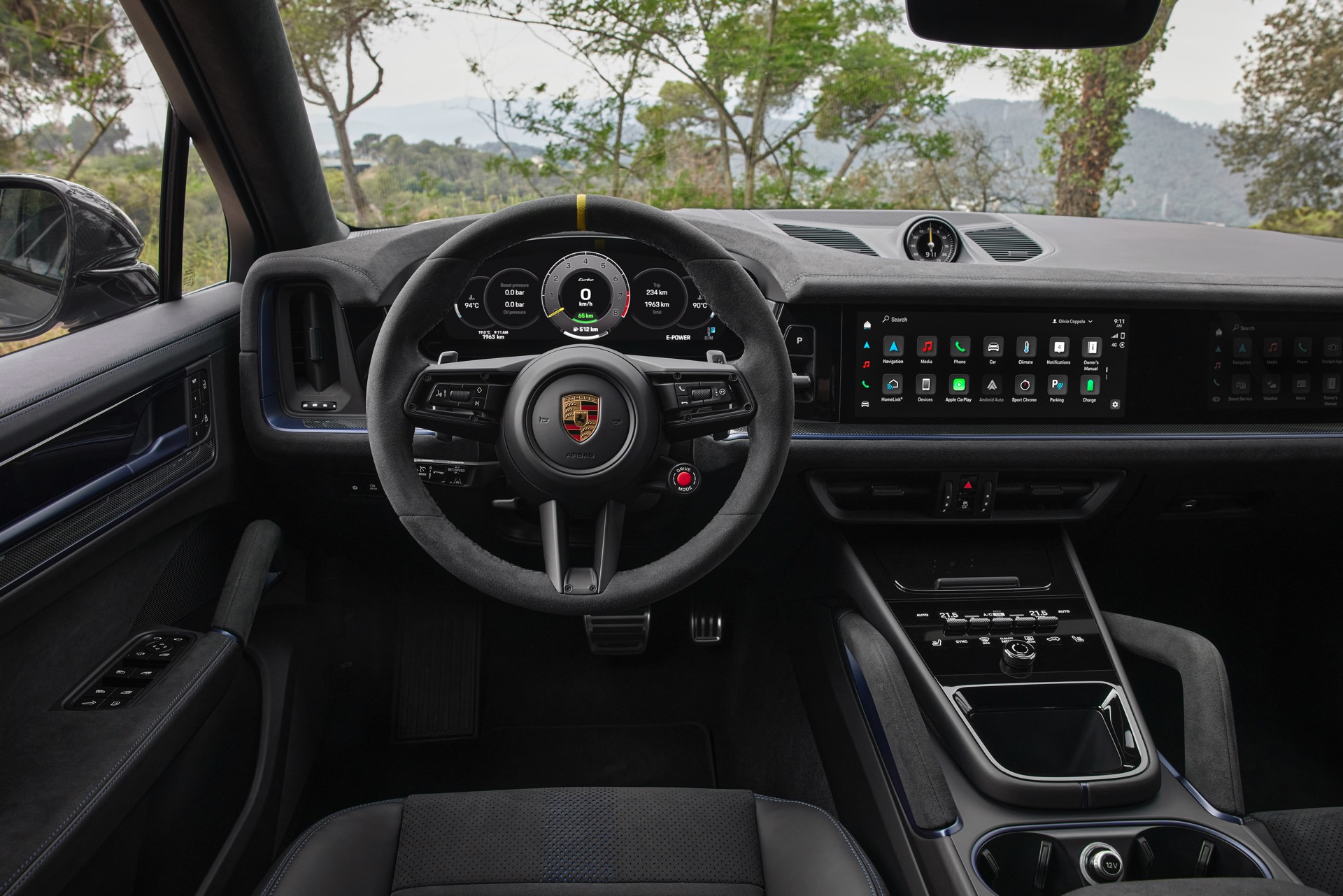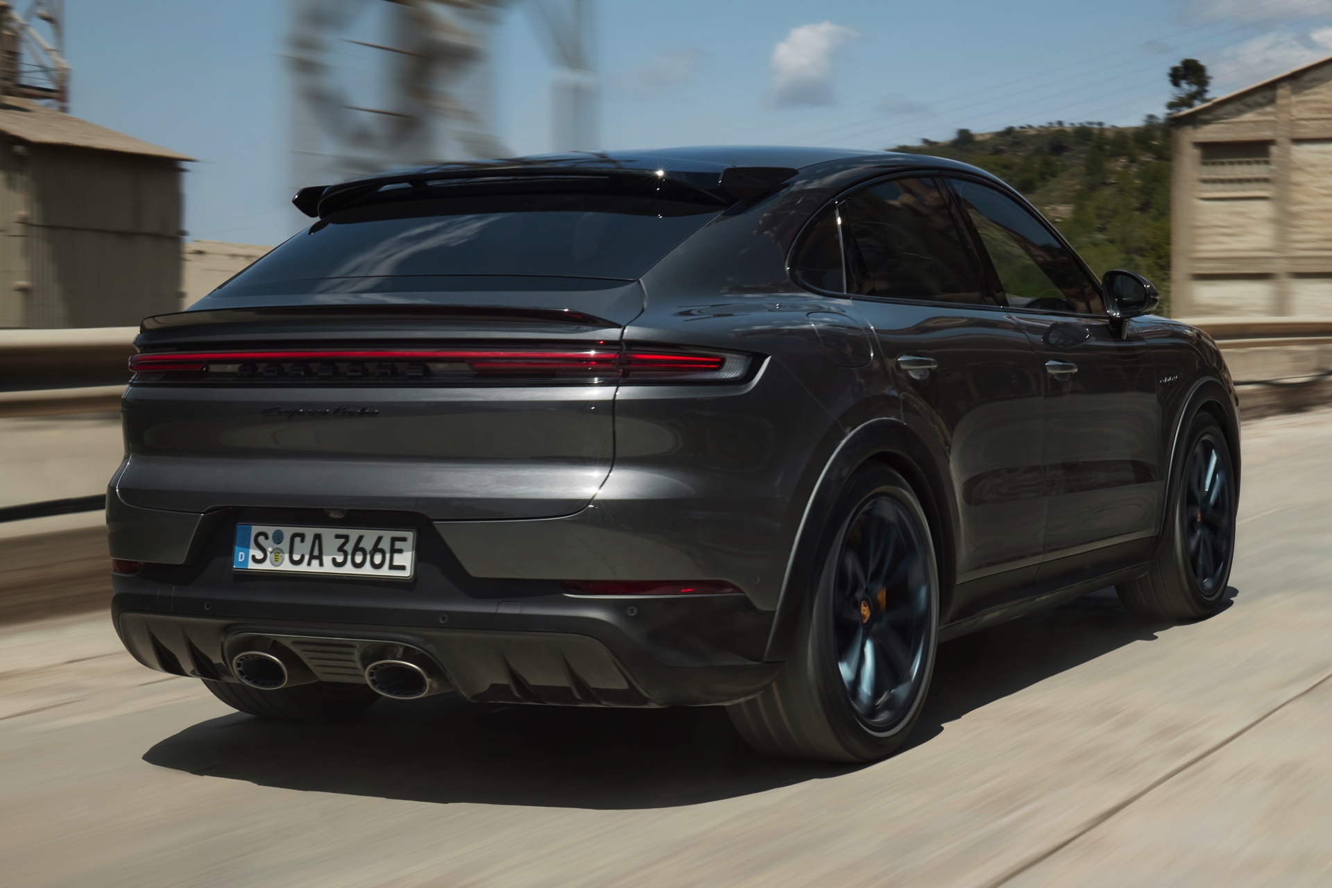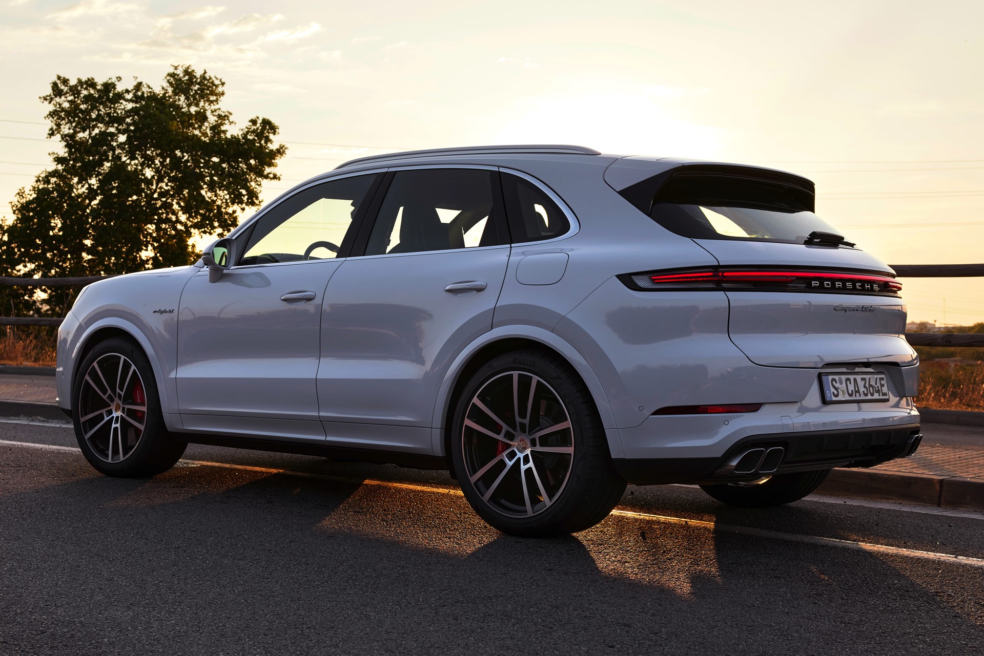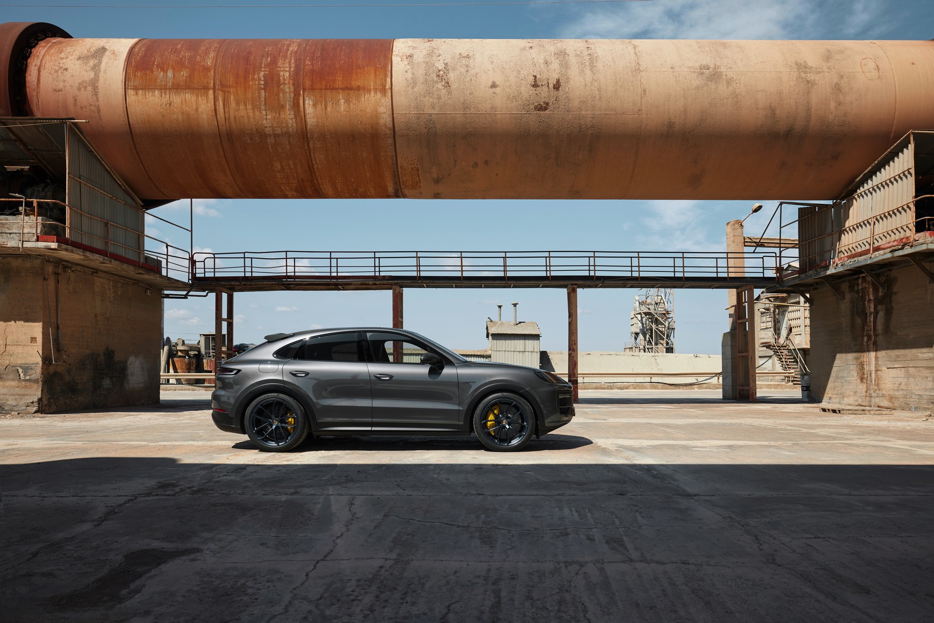 Gegenüber den schwächeren Cayenne-Varianten haben die beiden Turbo E-Hybrid eine noch stärker auf Dynamik getrimmtes Setup erhalten. Hierzu gehören 10 Millimeter Tieferlegung und ein vergrößerter Sturz an der Vorderachse, in Verbindung mit dem GT-Paket für das Coupé aber auch eine Keramik-Bremsanlage und 22-Zöller mit Performance-Bereifung.