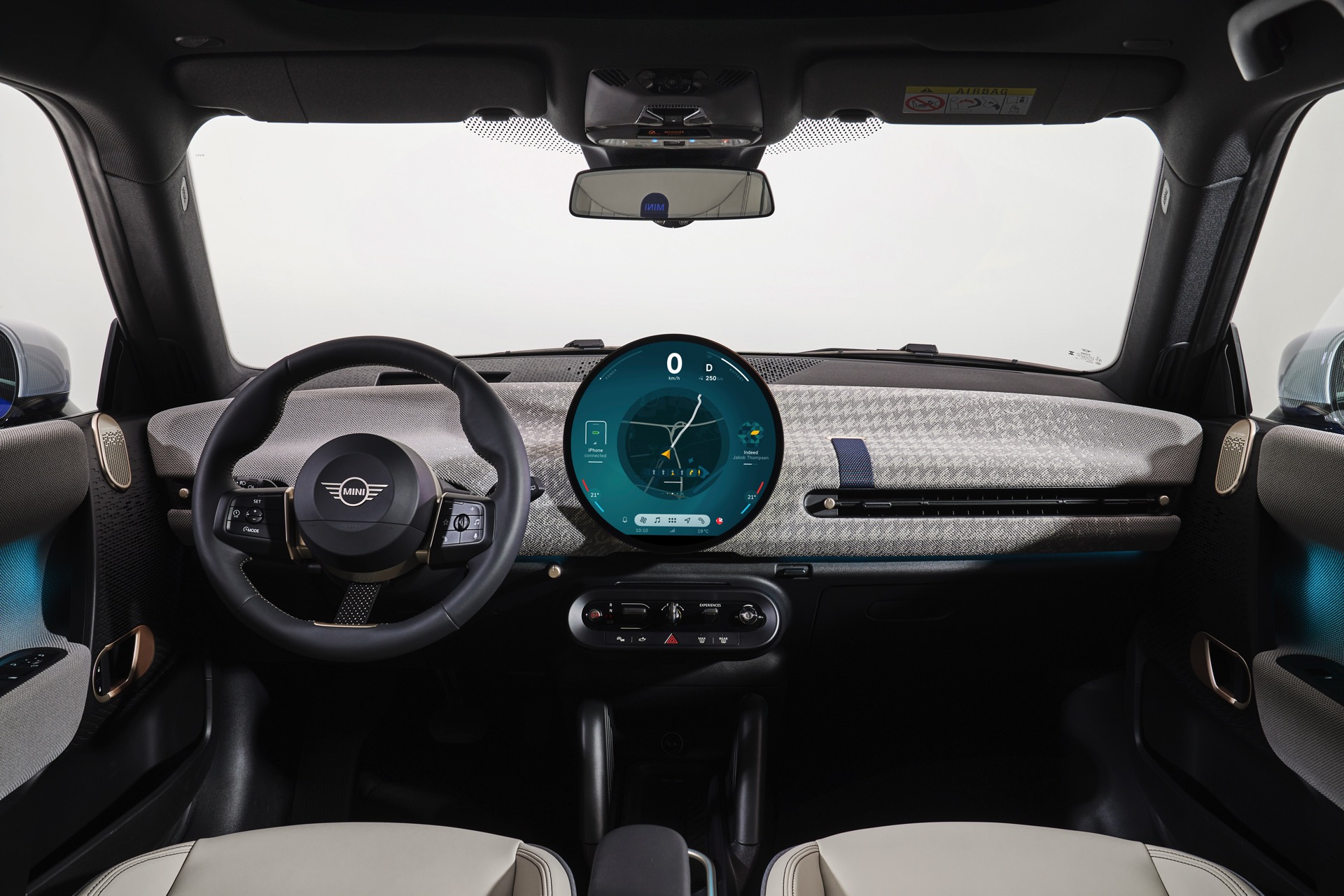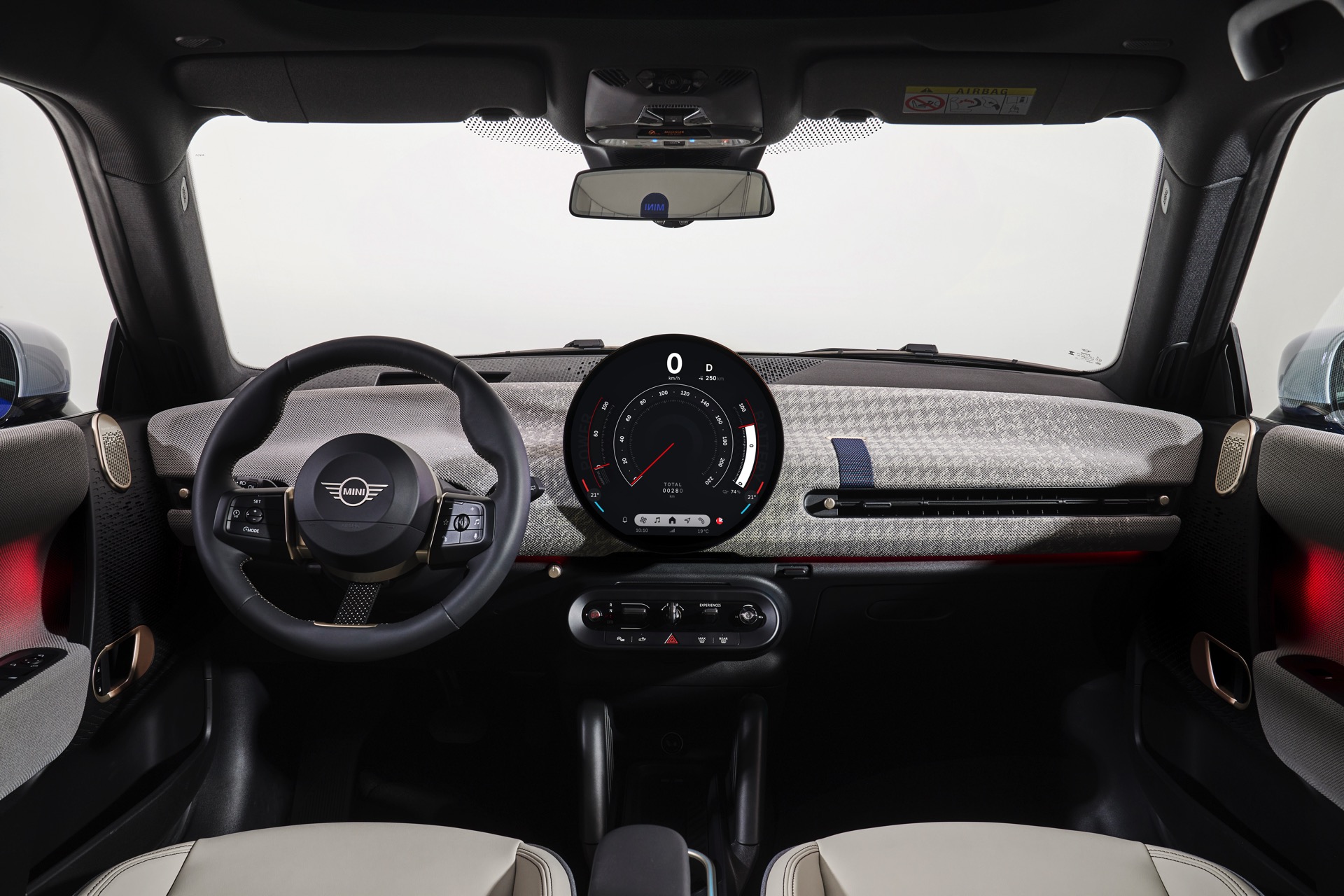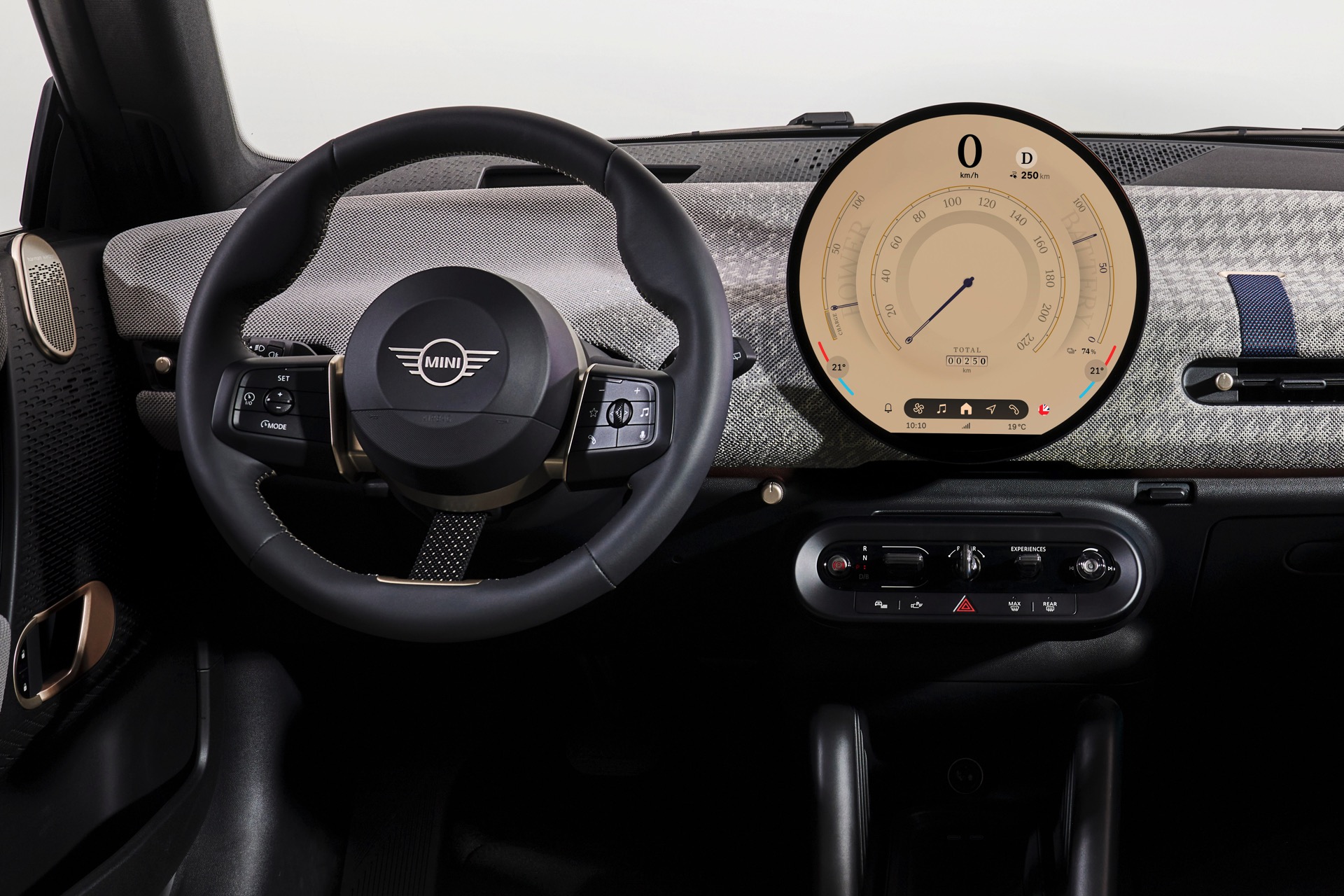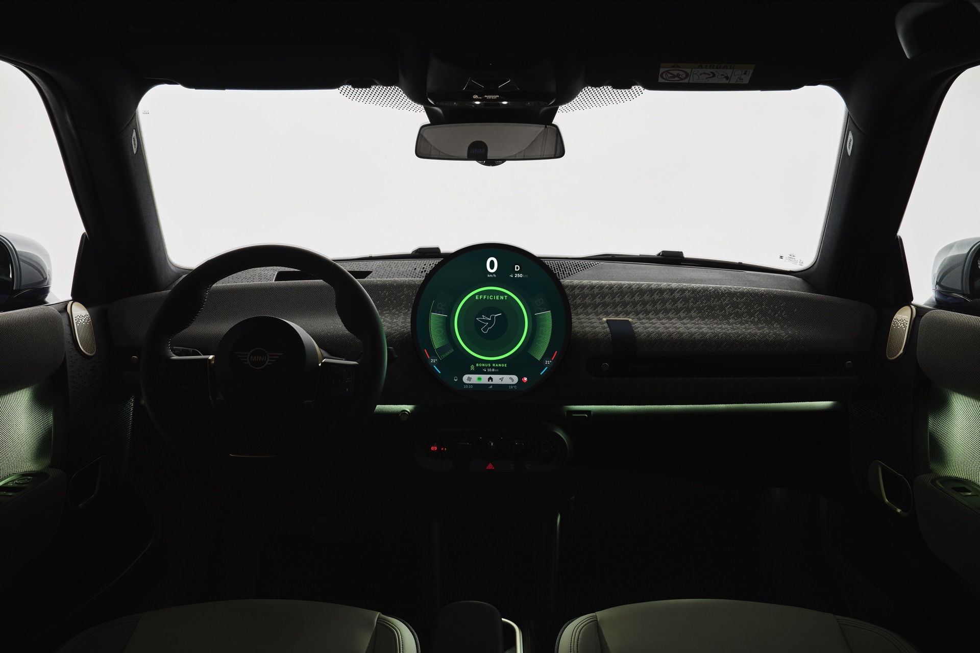 Im Gegenzug für die größeren Abmessungen bietet der neue MINI 2024 nicht nur mehr Sicherheit bei Seitenaufprall & Co., sondern natürlich auch einen wesentlich geräumigeren Innenraum. Das Cockpit versteht sich dabei dennoch als Reminiszenz an das historische Vorbild, denn es ist von wenigen Knöpfen und einem großen runden Zentralinstrument geprägt – dass die Anzeigen heute auf einem 24 Zentimeter großen OLED-Display ausgespielt werden und extrem individualisierbar sind, macht die technische Weiterentwicklung spürbar.