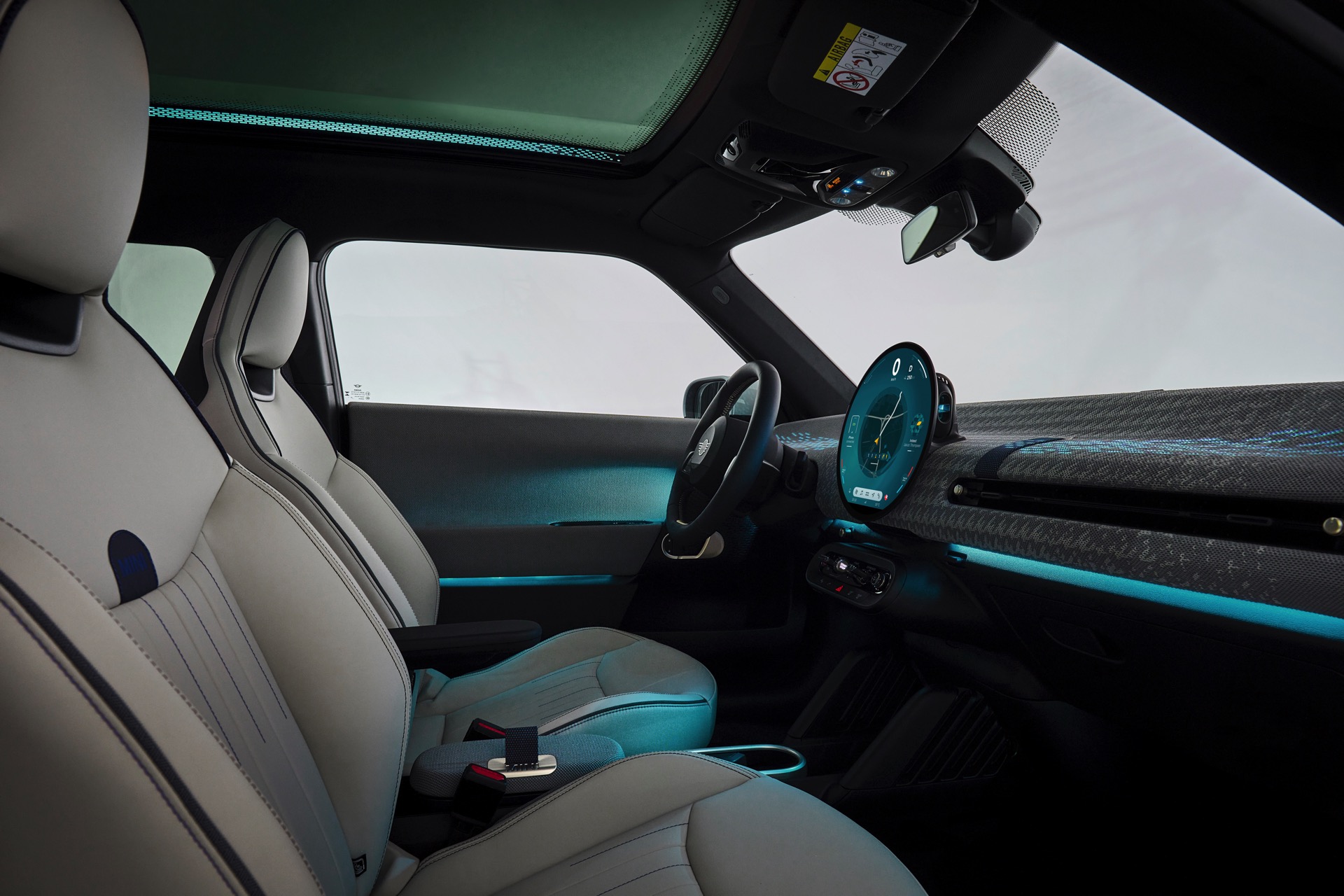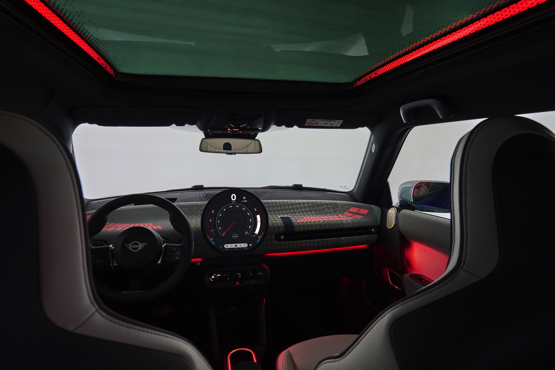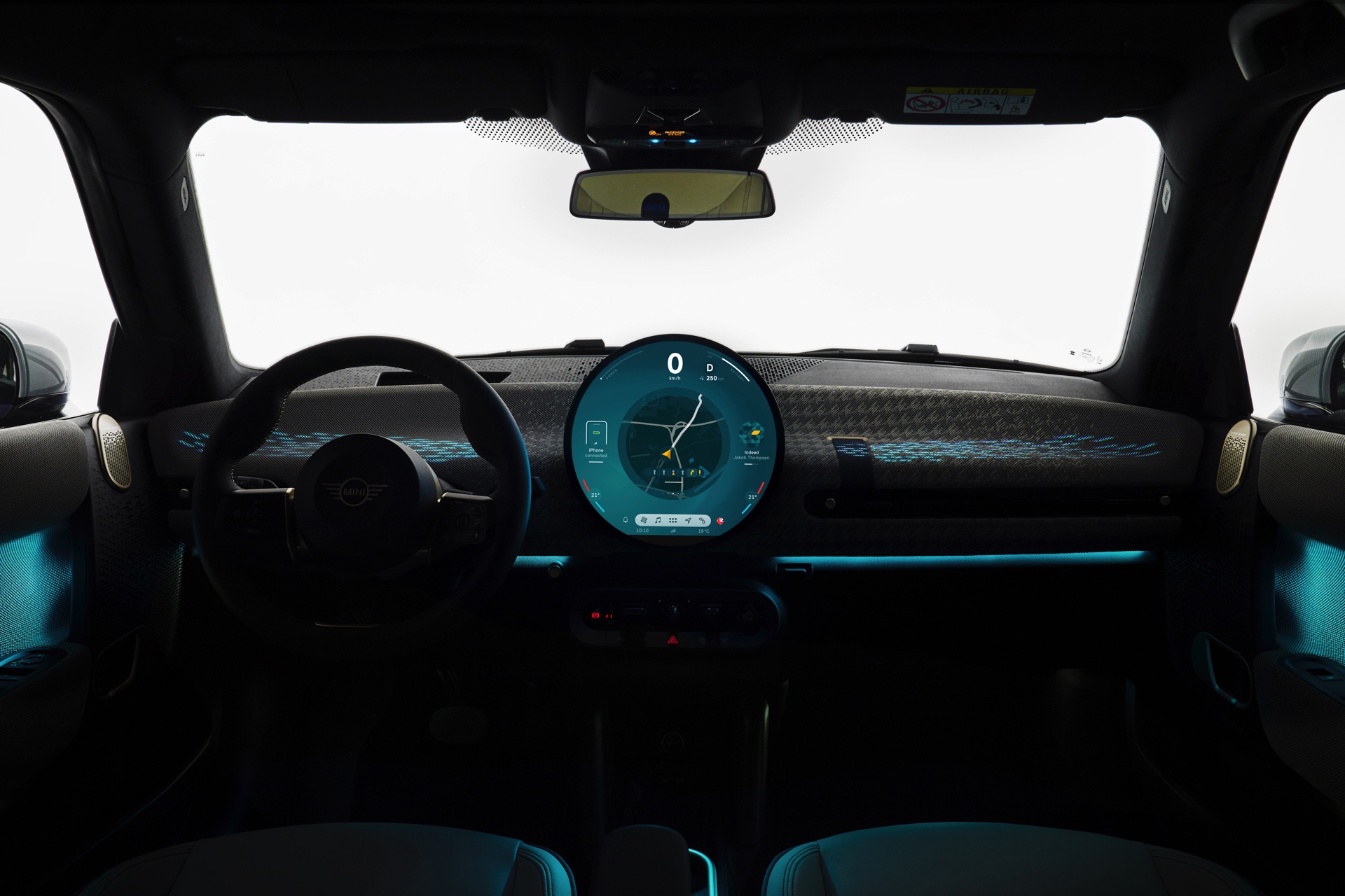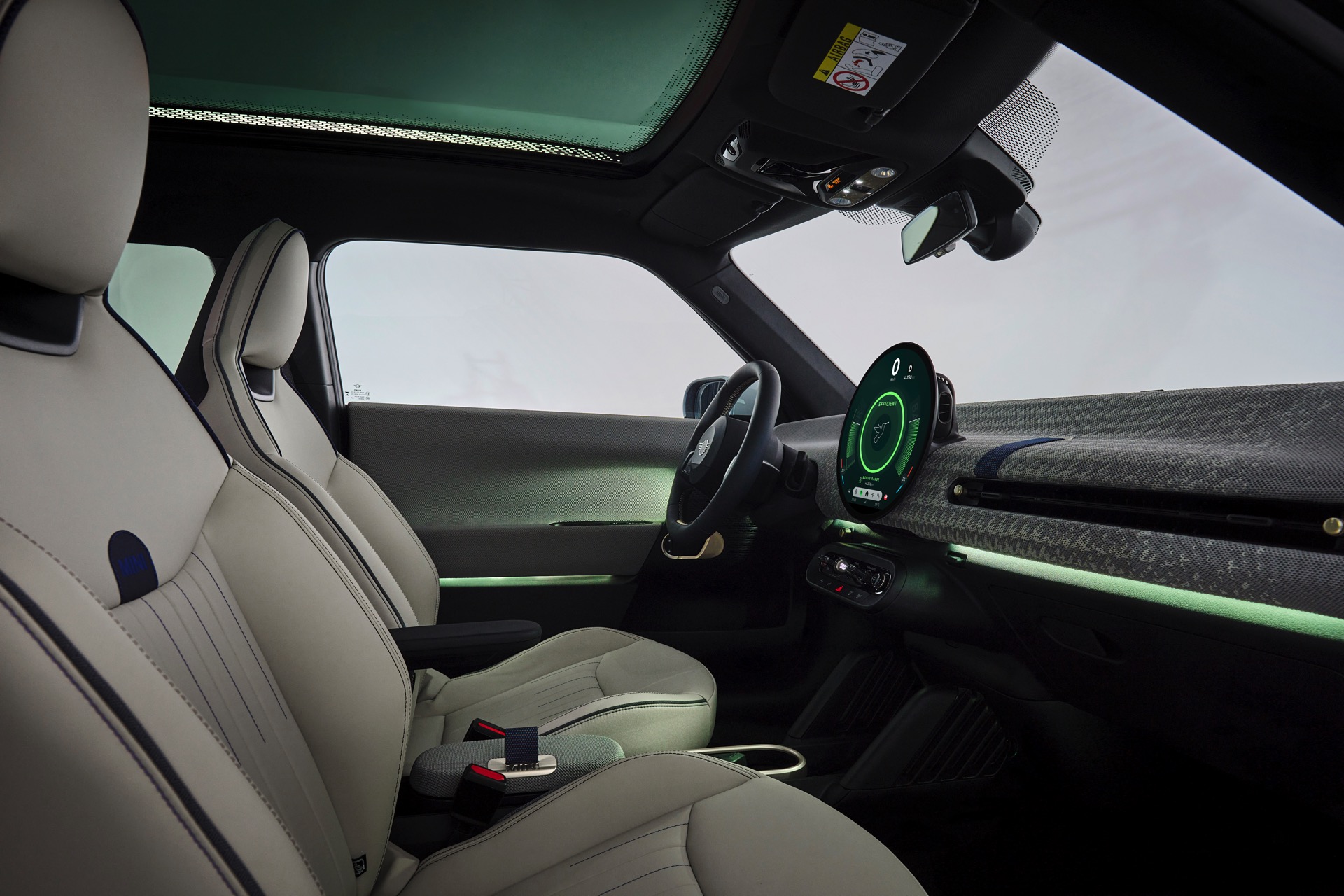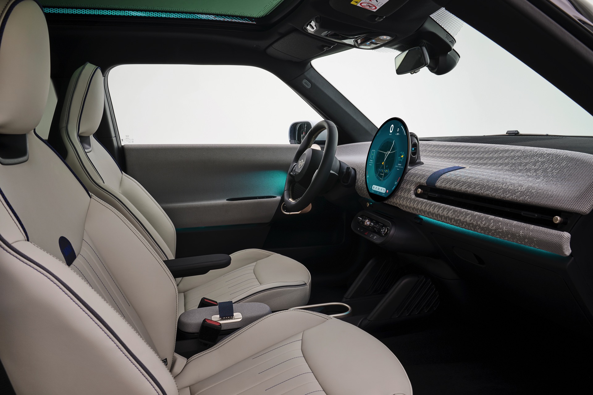 Im Gegenzug für die größeren Abmessungen bietet der neue MINI 2024 nicht nur mehr Sicherheit bei Seitenaufprall & Co., sondern natürlich auch einen wesentlich geräumigeren Innenraum. Das Cockpit versteht sich dabei dennoch als Reminiszenz an das historische Vorbild, denn es ist von wenigen Knöpfen und einem großen runden Zentralinstrument geprägt – dass die Anzeigen heute auf einem 24 Zentimeter großen OLED-Display ausgespielt werden und extrem individualisierbar sind, macht die technische Weiterentwicklung spürbar.