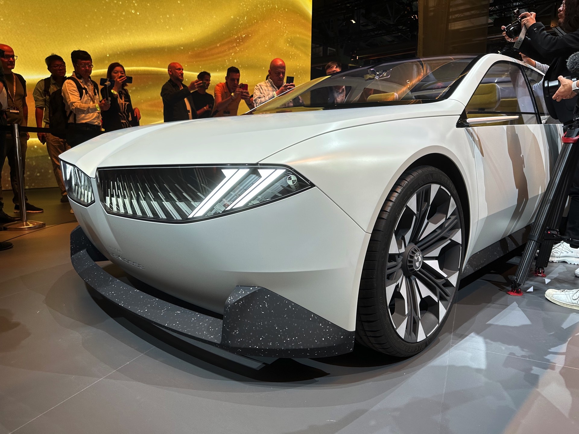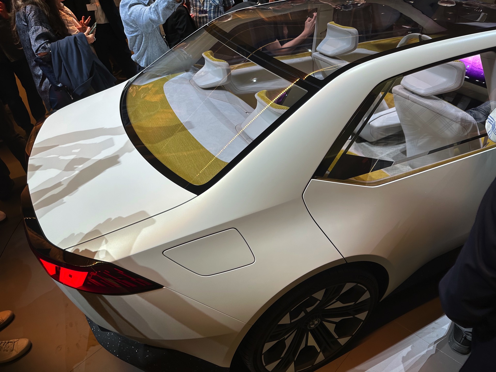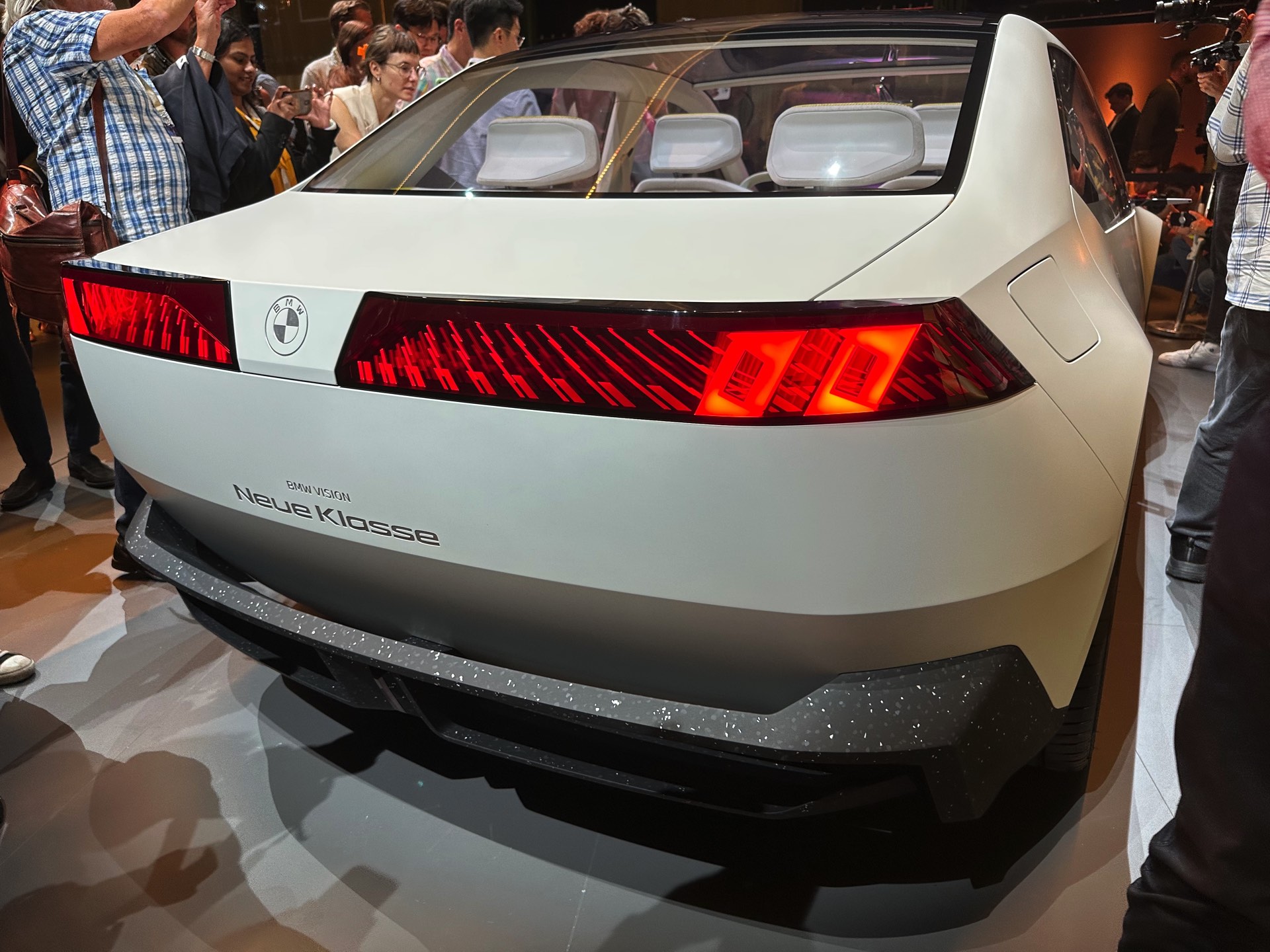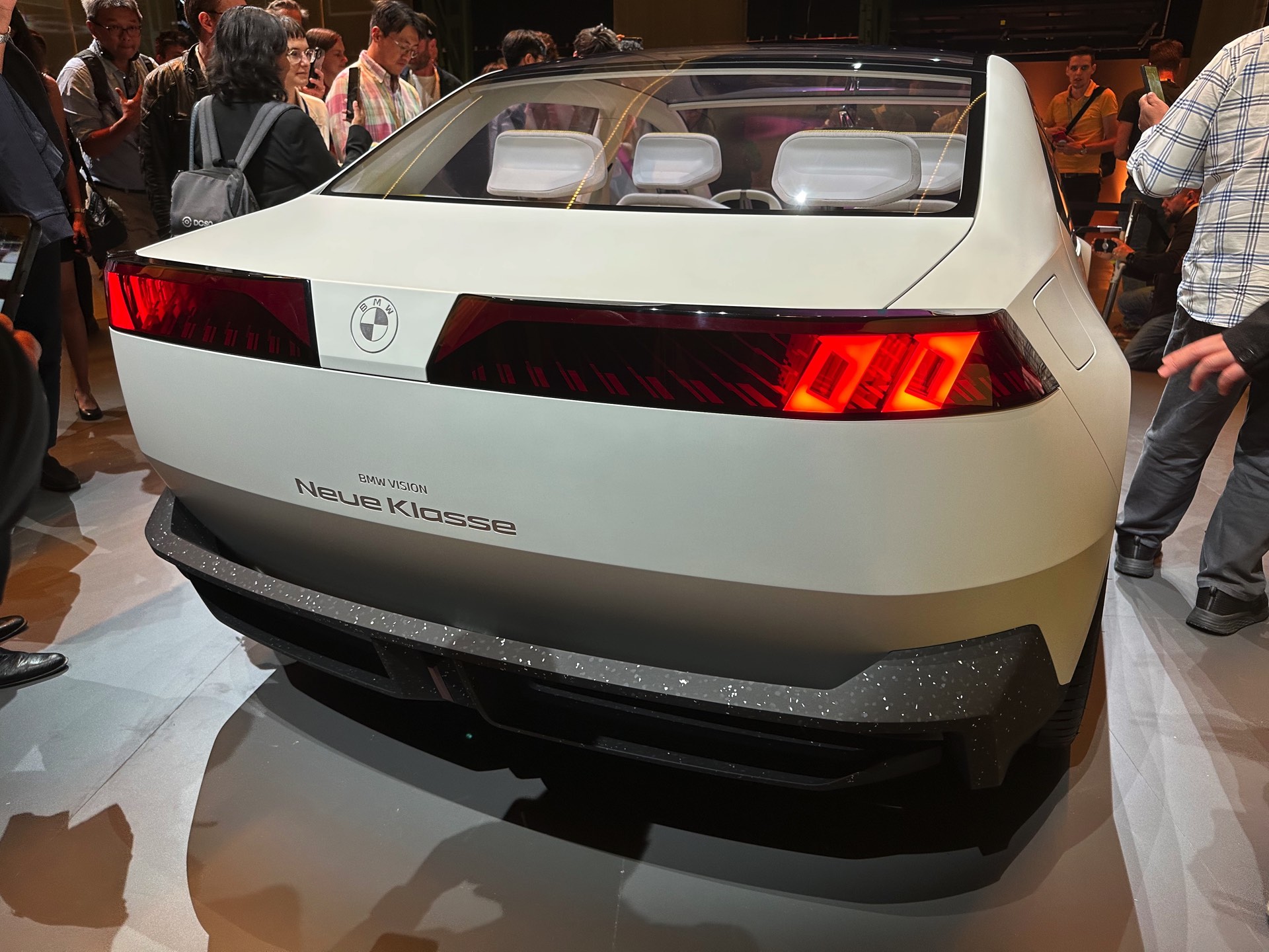 Schon vor der Eröffnung der IAA 2023 in München konnten wir im Rahmen der Keynote erste Live-Fotos vom BMW Neue Klasse Vision Car machen. Die Studie liefert eine grobe Vorschau auf das Design des ersten Serienfahrzeugs, das im Jahr 2025 auf Basis der völlig neu entwickelten Neue Klasse-Architektur in den Handel kommen wird: Die Stufenheck-Limousine im 3er-Format könnte als BMW i3 vermarktet werden und wird insofern in einem ähnlichen Segment wie das heutige i4 Gran Coupé antreten – allerdings mit einer wesentlich weiterentwickelten Technik, nämlich dem BMW eDrive-Antrieb der sechsten Generation.
