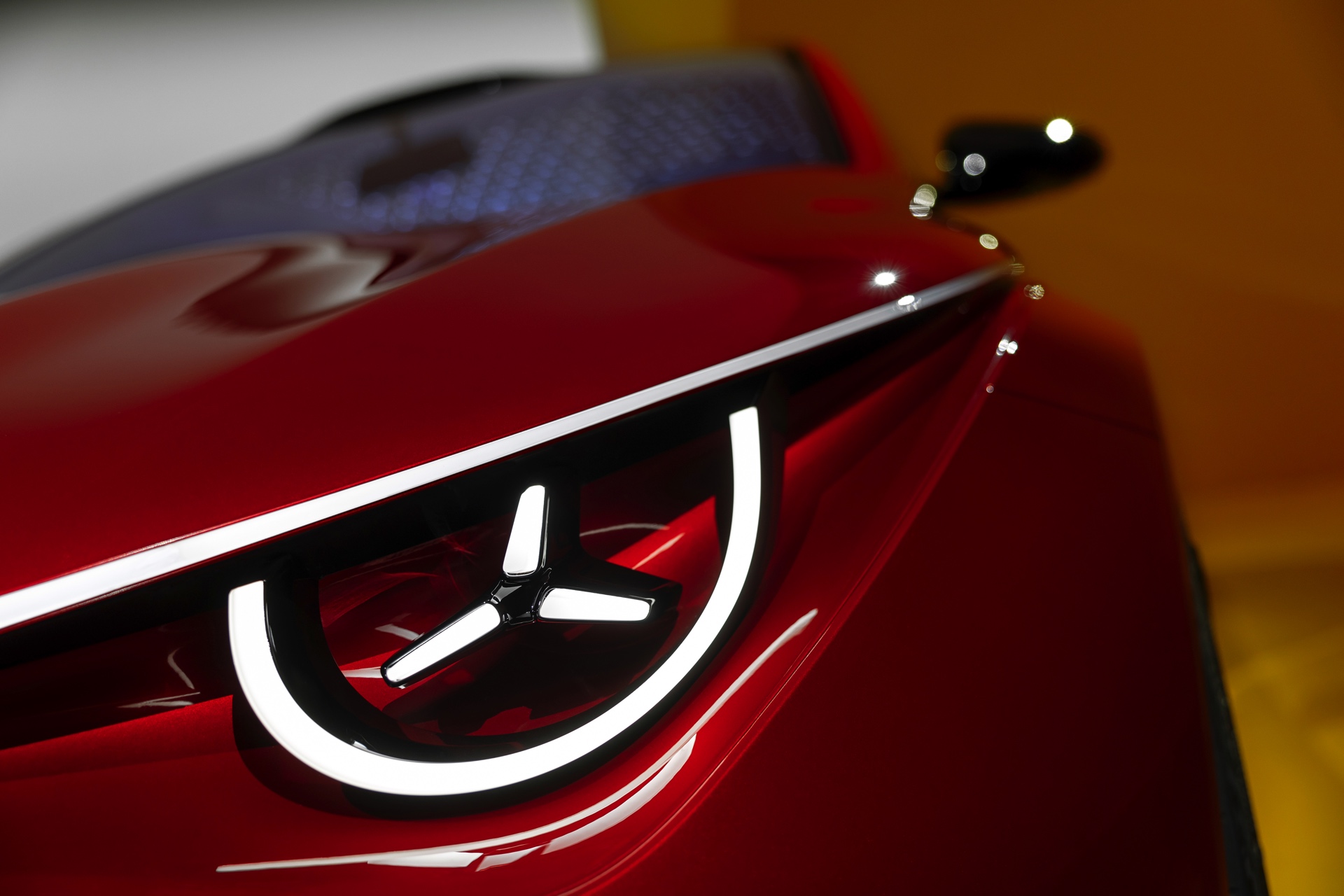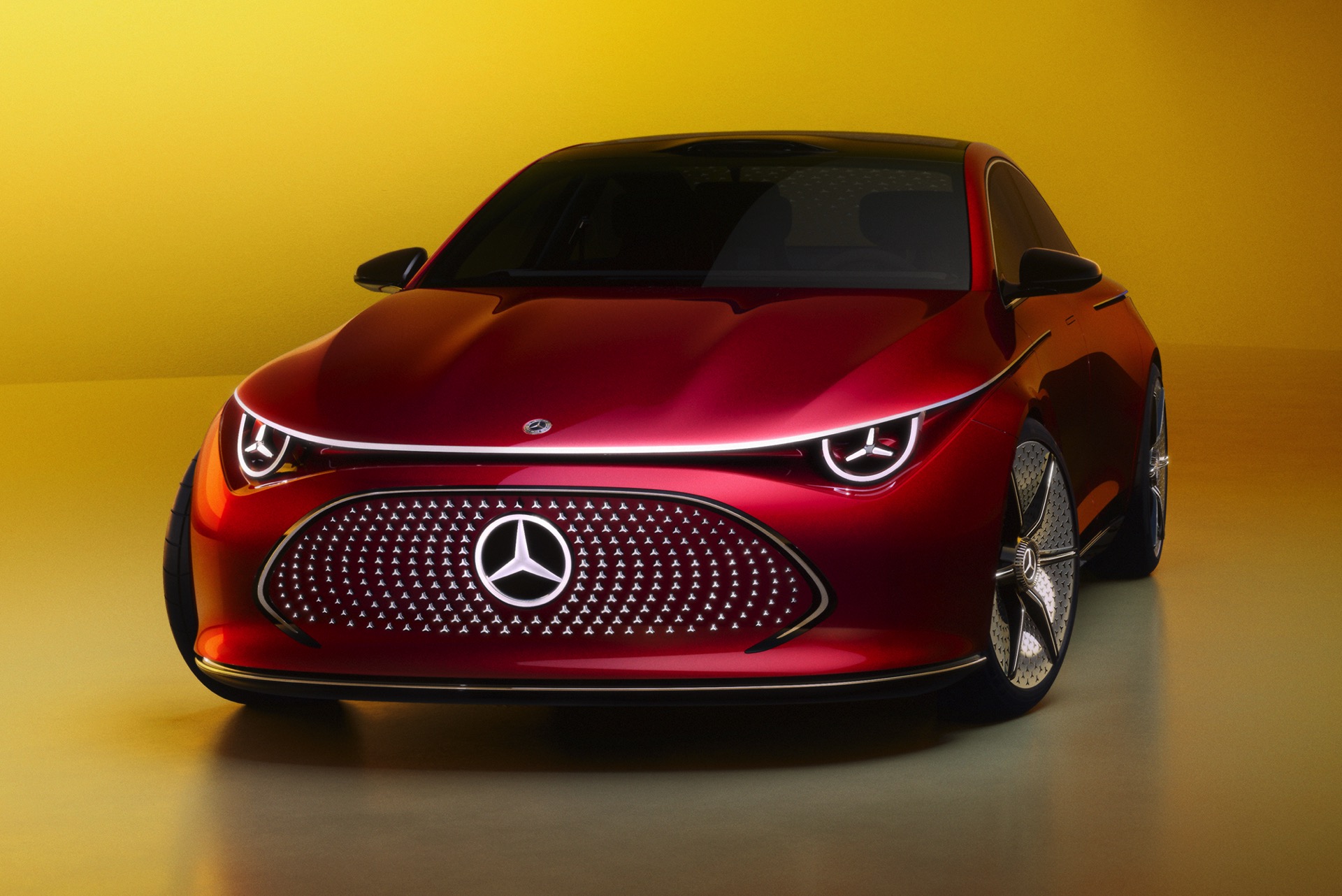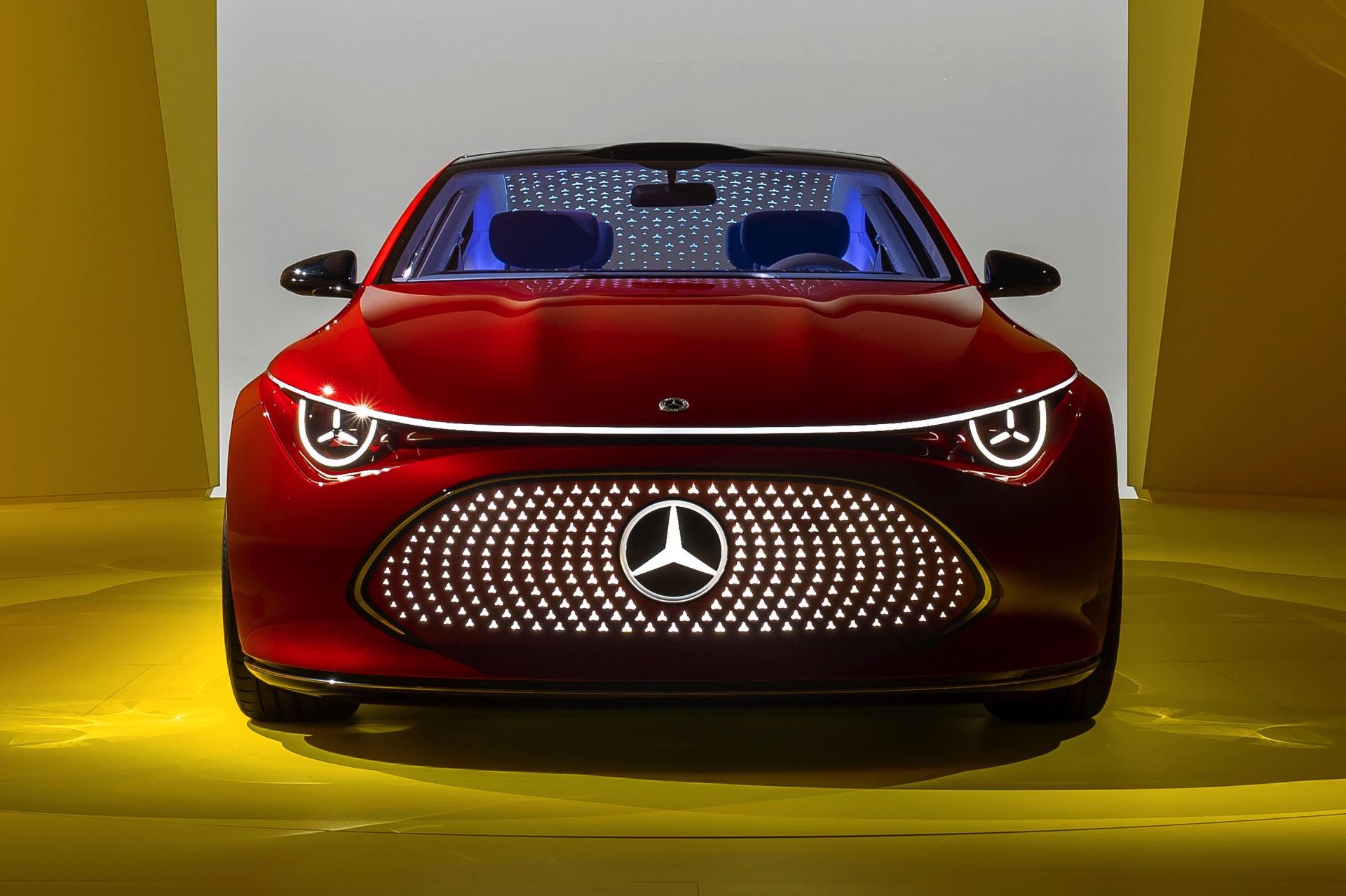Gorden Wagener (Chief Design Officer, Mercedes-Benz Group AG): “Das Concept CLA Class markiert den Beginn einer neuen Ära. Es interpretiert ikonische Elemente aus dem Designerbe unserer Marke neu, um ein ganz neues Mercedes-Benz Gesicht zu erschaffen. Hier paart sich die sportliche Vorwärtsneigung der markanten ‚Shark nose‘ aus den 50er und 60er Jahren mit einer neuen Signaturgrafik für das Elektrozeitalter. Die Komposition hebt die sogenannte Augenbraue des Tagfahrlichts mit einem stilisierten Stern hervor. Das Sternmotiv wiederholt sich als animierte Lichtbänder im A-Shape- Kühlergrilldesign. Dies sind entscheidende Merkmale unseres zukünftigen Looks.”