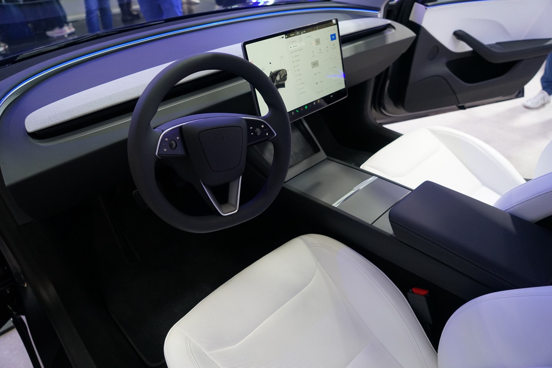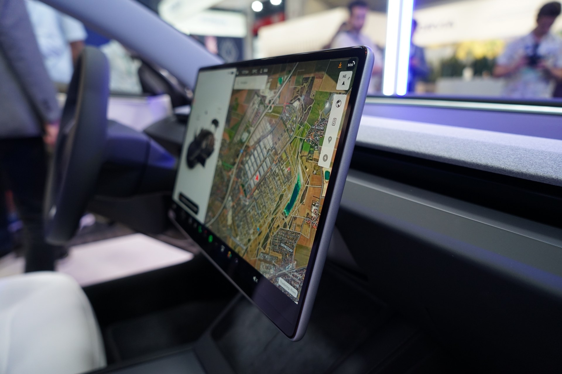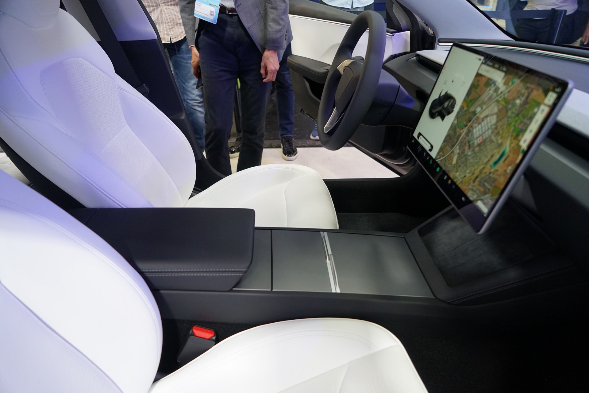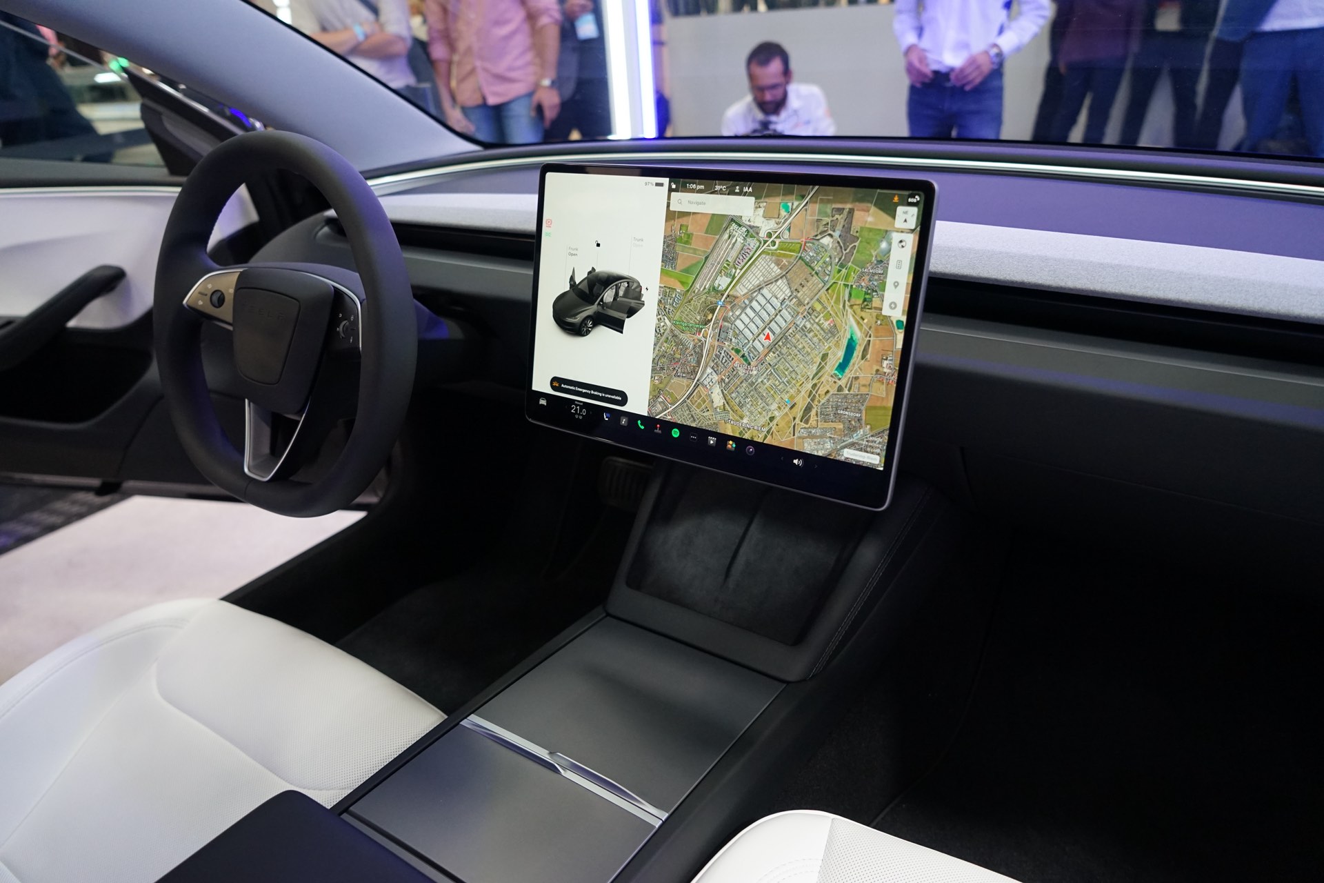 Im Innenraum dreht sich alles um das 15,4 Zoll große Infotainment-Display, das wie ein horizontal positioniertes Tablet am Armaturenträger befestigt ist. Neu gestaltet wurde auch das Lenkrad, das nun über Knöpfe zum Aktivieren der Blinker verfügt und sich damit wieder ein Stück weiter vom klassischen Automobil entfernt.