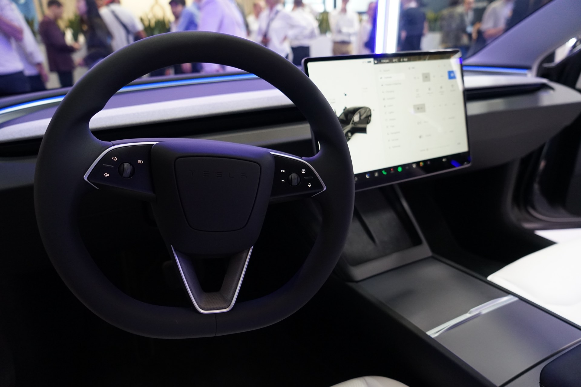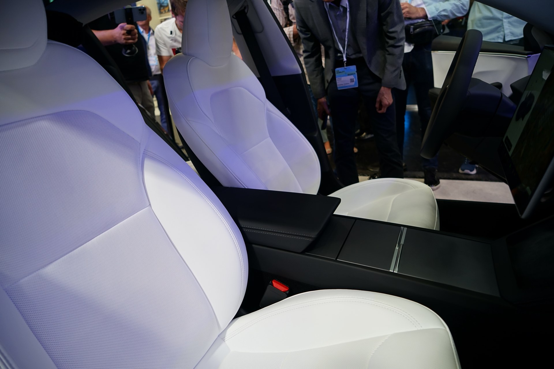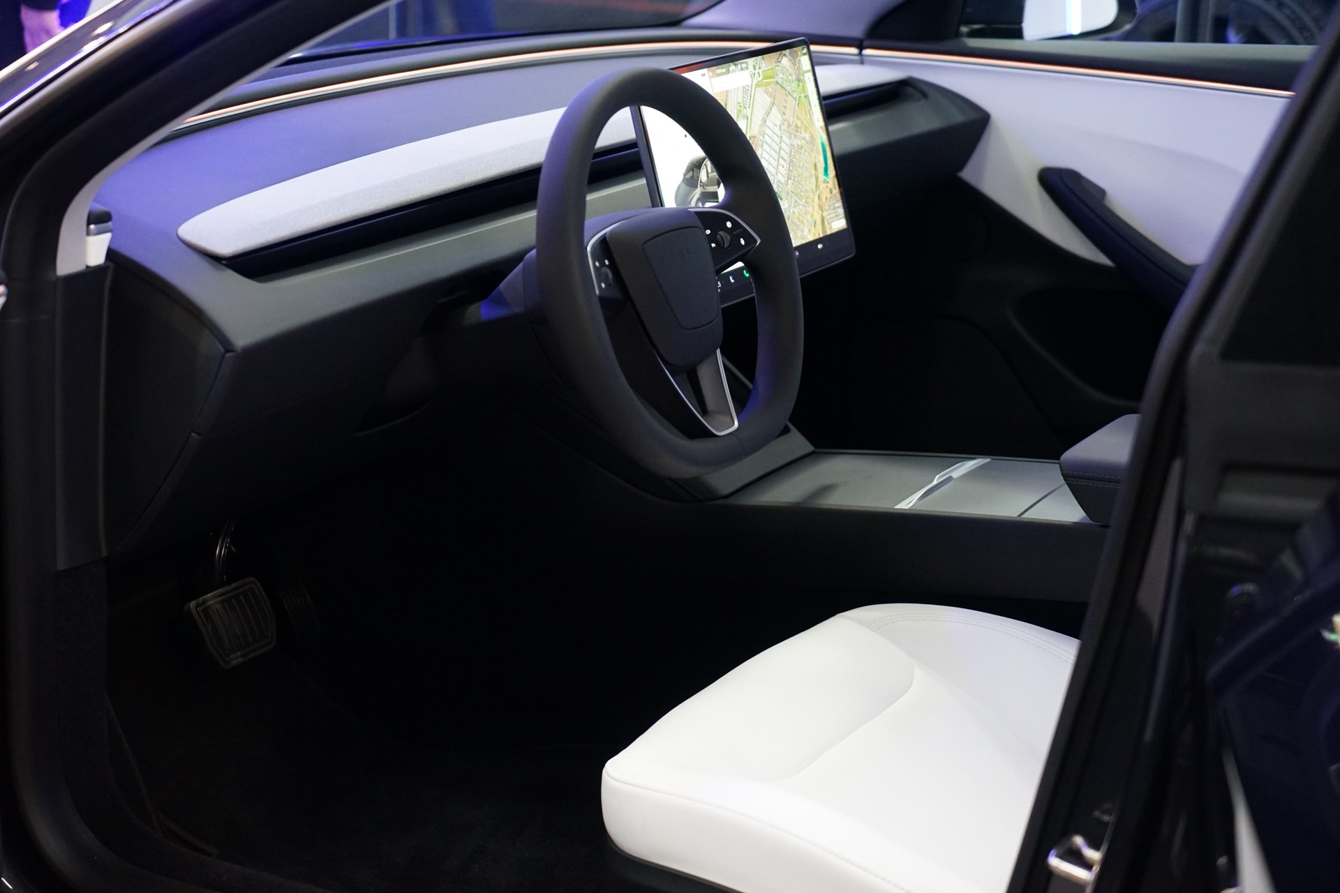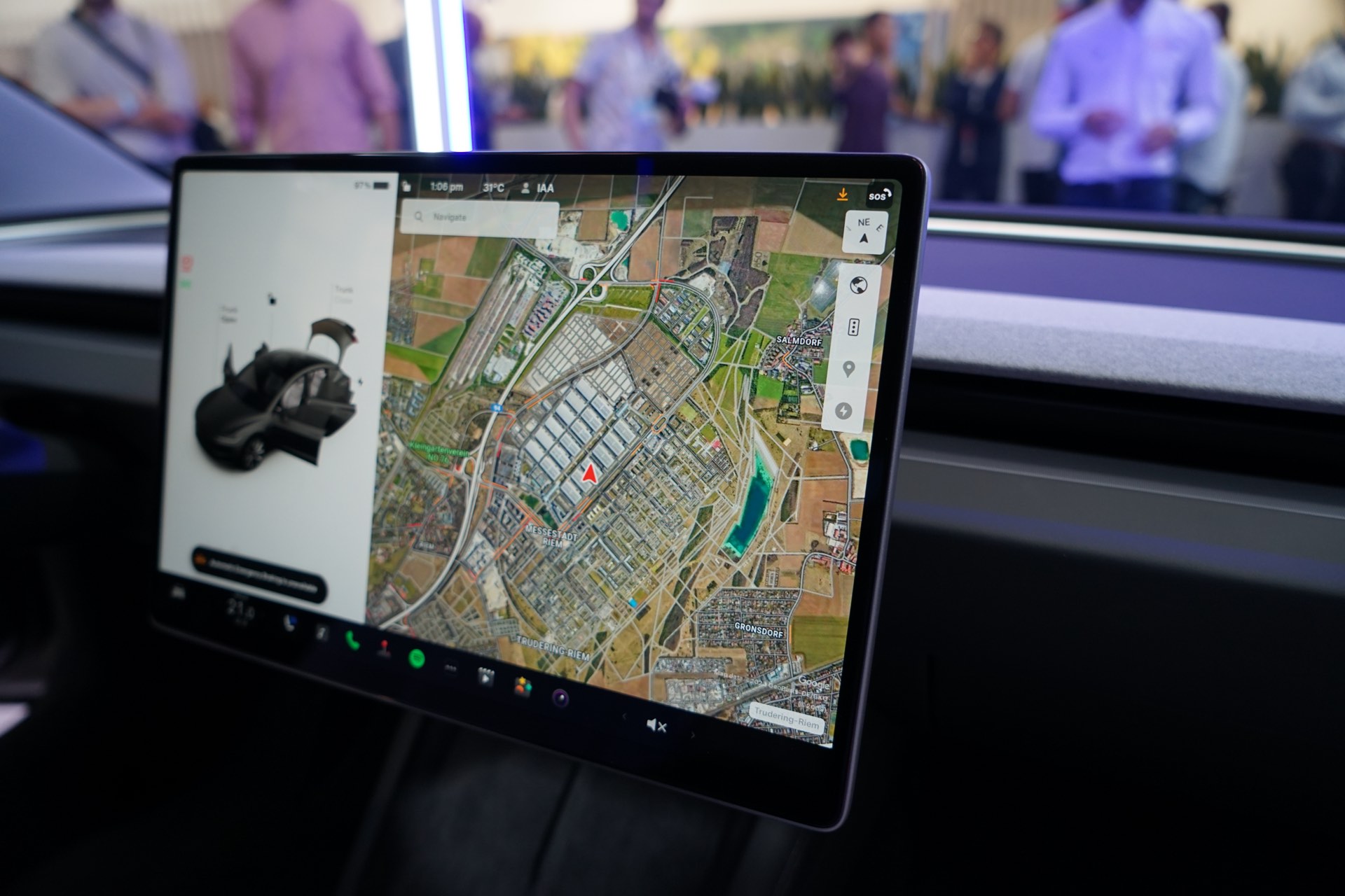 Im Innenraum dreht sich alles um das 15,4 Zoll große Infotainment-Display, das wie ein horizontal positioniertes Tablet am Armaturenträger befestigt ist. Neu gestaltet wurde auch das Lenkrad, das nun über Knöpfe zum Aktivieren der Blinker verfügt und sich damit wieder ein Stück weiter vom klassischen Automobil entfernt.