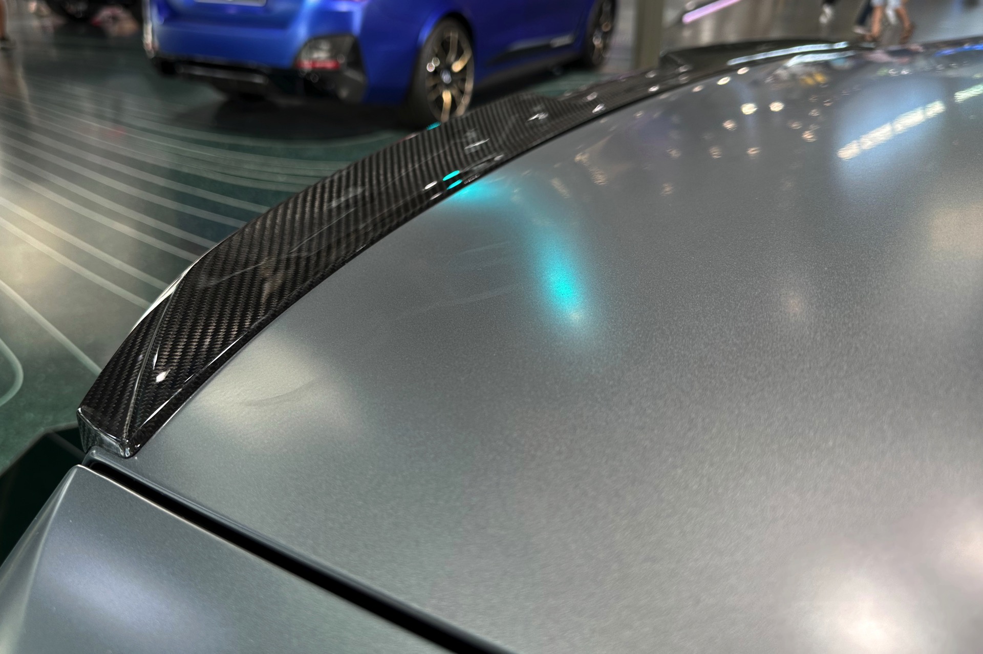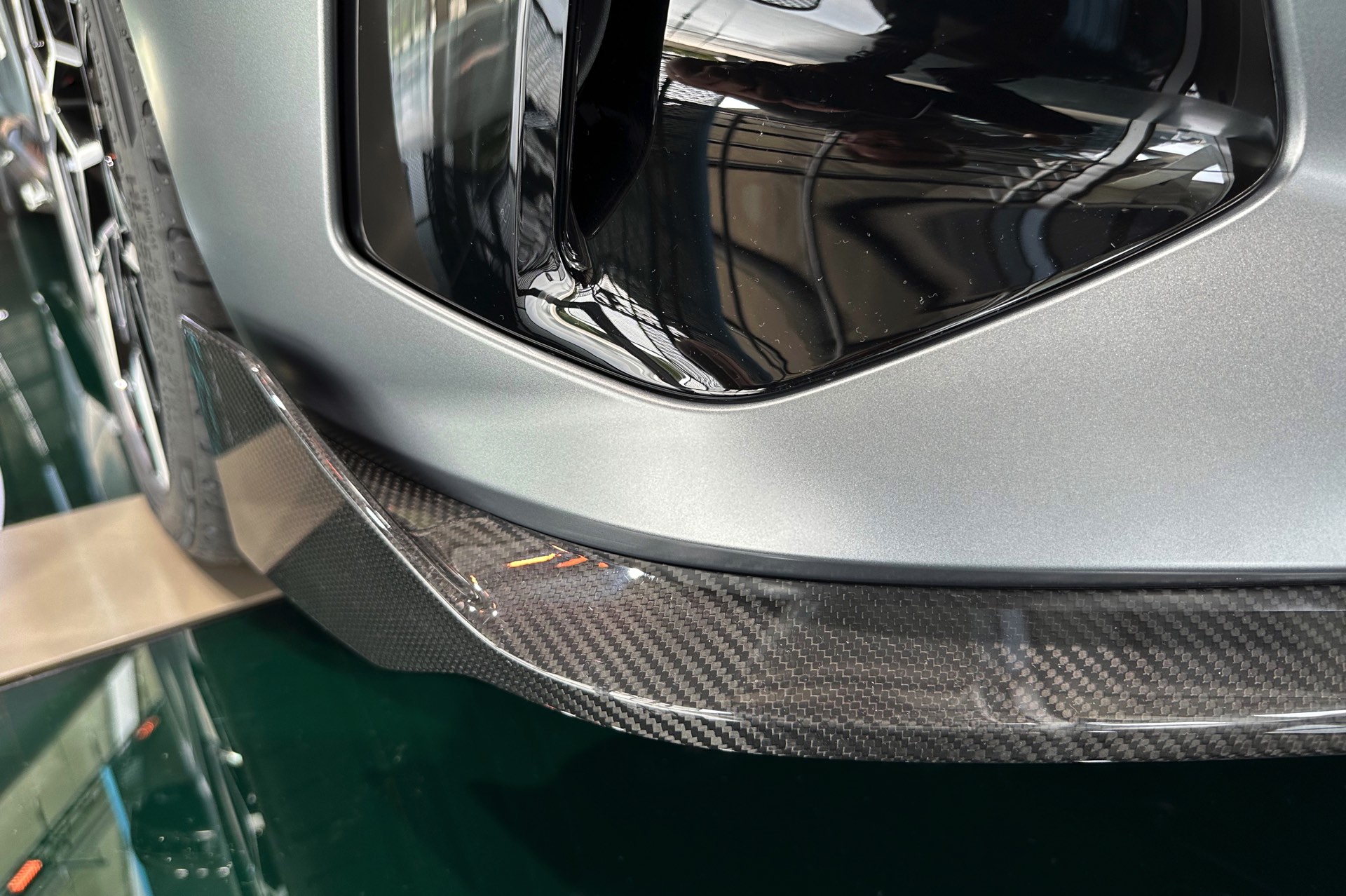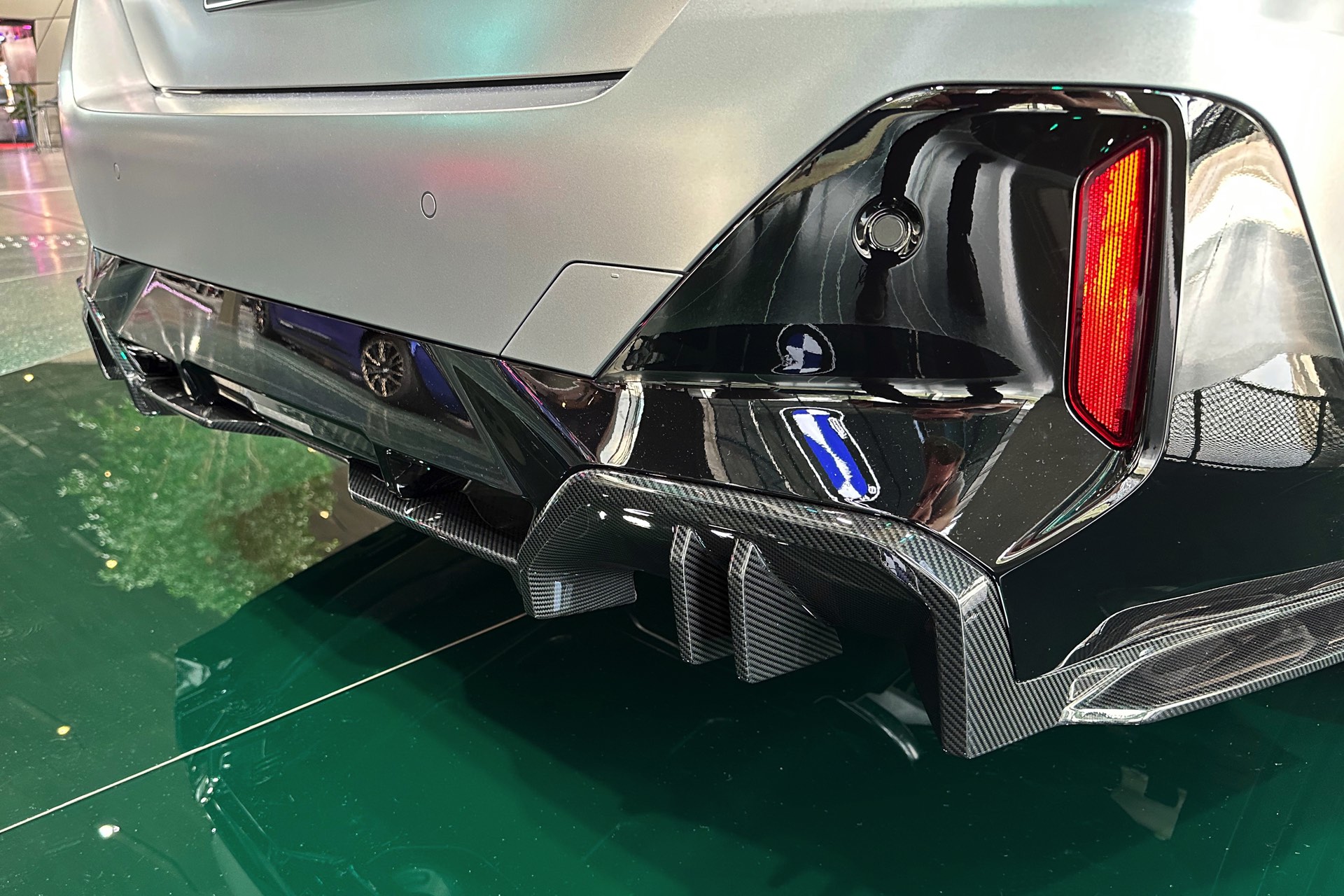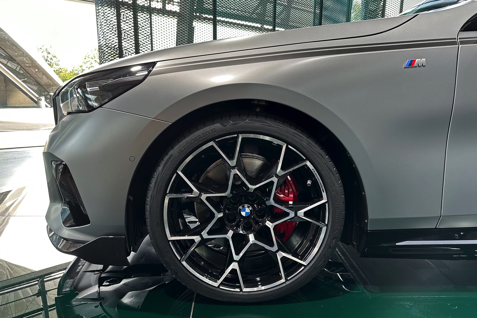 Der 81,2 kWh große Akku des BMW i5 M60 genügt für 455 bis 516 Kilometer Elektro-Reichweite gemäß WLTP, die gezeigte Konfiguration bewegt sich dabei mit Sicherheit im untersten Bereich dieser Angabe. Klar ist auch, dass die nachträglich installierten Carbon-Teile aus dem M Performance-Programm den ohnehin schon sechsstelligen Preis weiter in die Höhe treiben: Schon der Grundpreis liegt bei 99.500 Euro, sodass schon die 3.750 Euro teure Lackierung in Frozen Pure Grey für den Schritt in den sechsstelligen Bereich genügt. Was die Kunden dafür bekommen, zeigen unsere Fotos aus der BMW Welt: