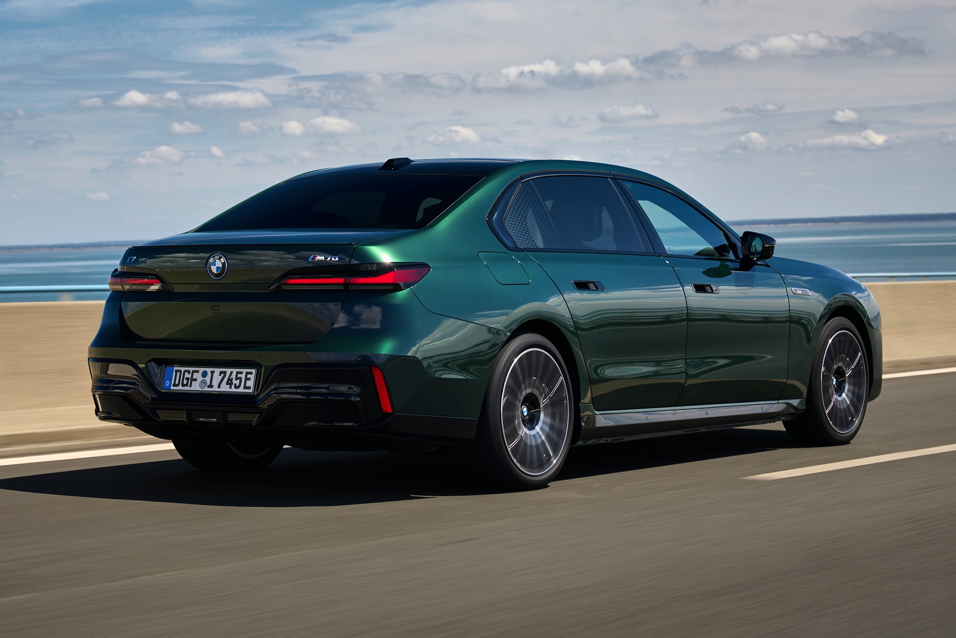 In den Radhäusern des gezeigten BMW i7 M70 sehen wir die 21 Zoll großen Leichtmetallräder Vielspeiche 1055i Bicolor, die genau wie die Farbe nur als Sonderwunsch erhältlich sind. Für Kunden, die mit einem Grundpreis von 181.800 Euro für den derzeit stärksten und schnellsten Vertreter der G70-Familie kein Problem haben, dürften aufpreispflichtige Sonderwünsche aber ohnehin nur selten ein Hindernis darstellen.