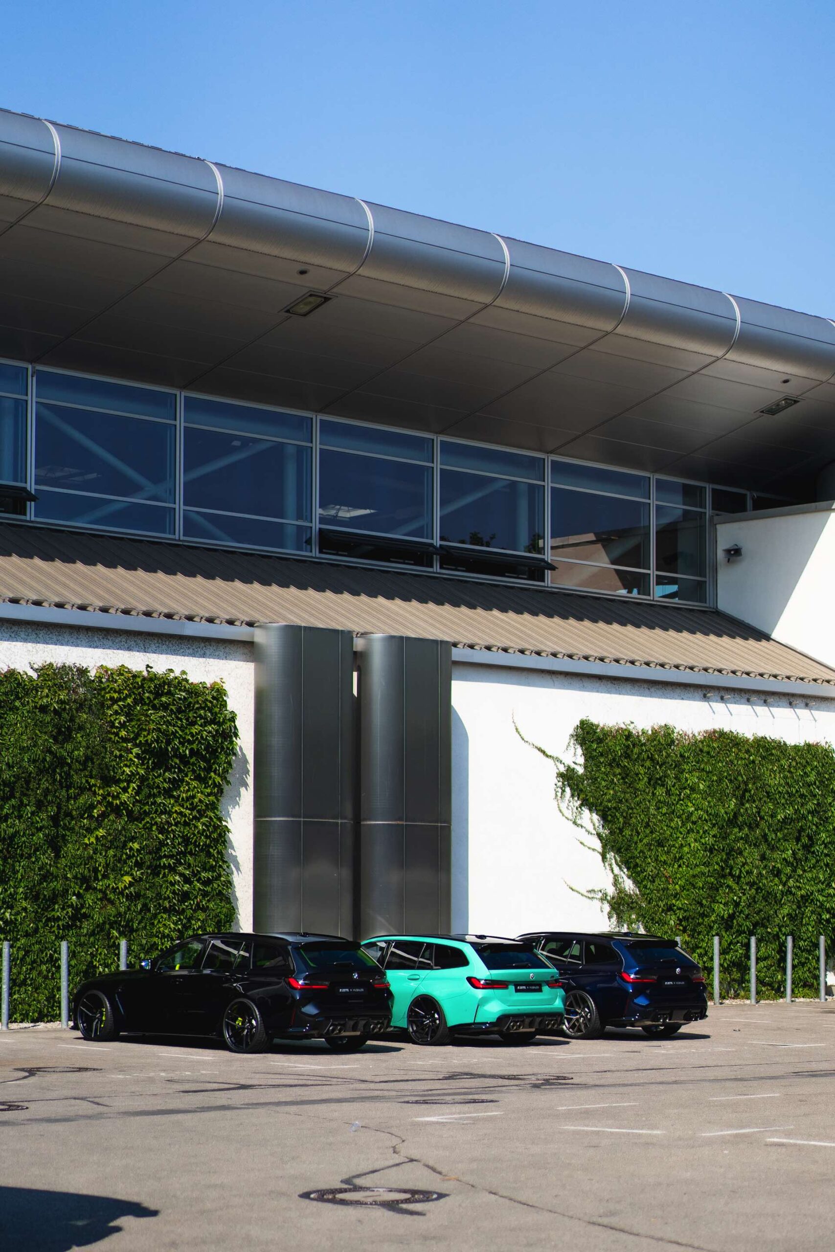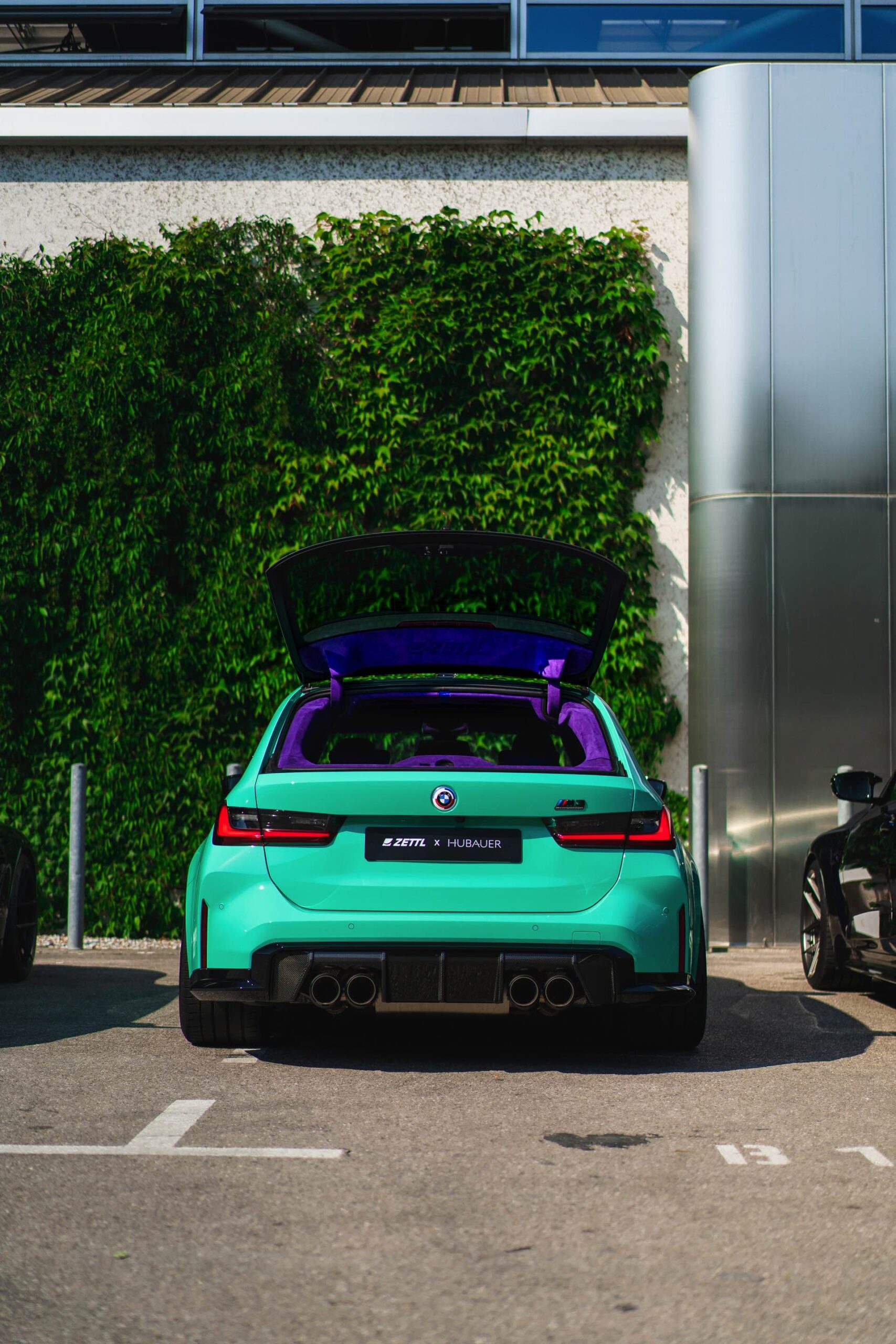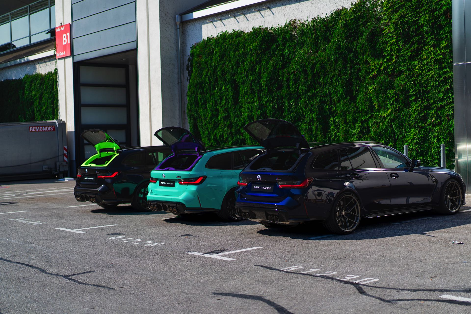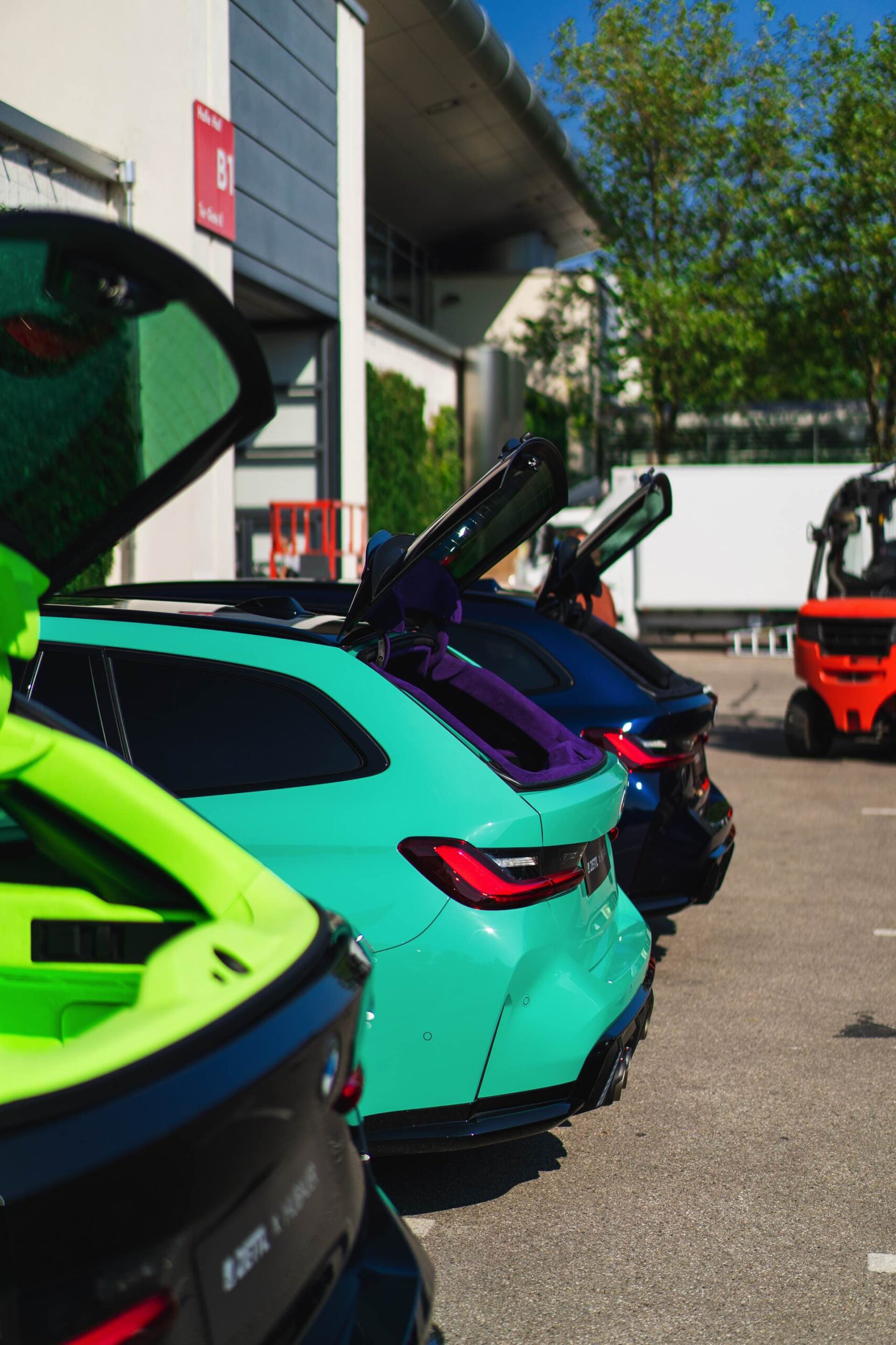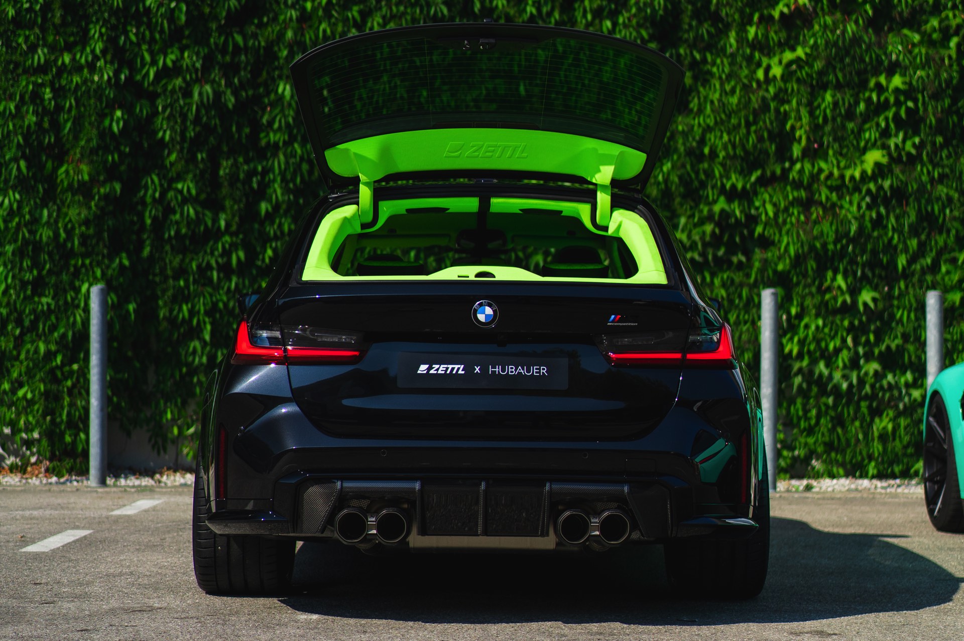 Bei den aktuellen Exterieur-Aufnahmen zeigt sich, dass der Innenraum mit in einer markanten Farbe wie ‘verde scandal’ auch zufällig vorbeilaufende Betrachter erreicht, sobald sich eine Tür oder auch nur die separat zu öffnende Heckscheibe des M3 Touring öffnet. Außerdem wird klar, wie speziell die drei bereits ab Werk 510 PS starken Kombis auch äußerlich auftreten – wobei der G81 von JP Performance mit seiner Individual-Lackierung in Mint zweifellos die meiste Aufmerksamkeit erregen dürfte.
