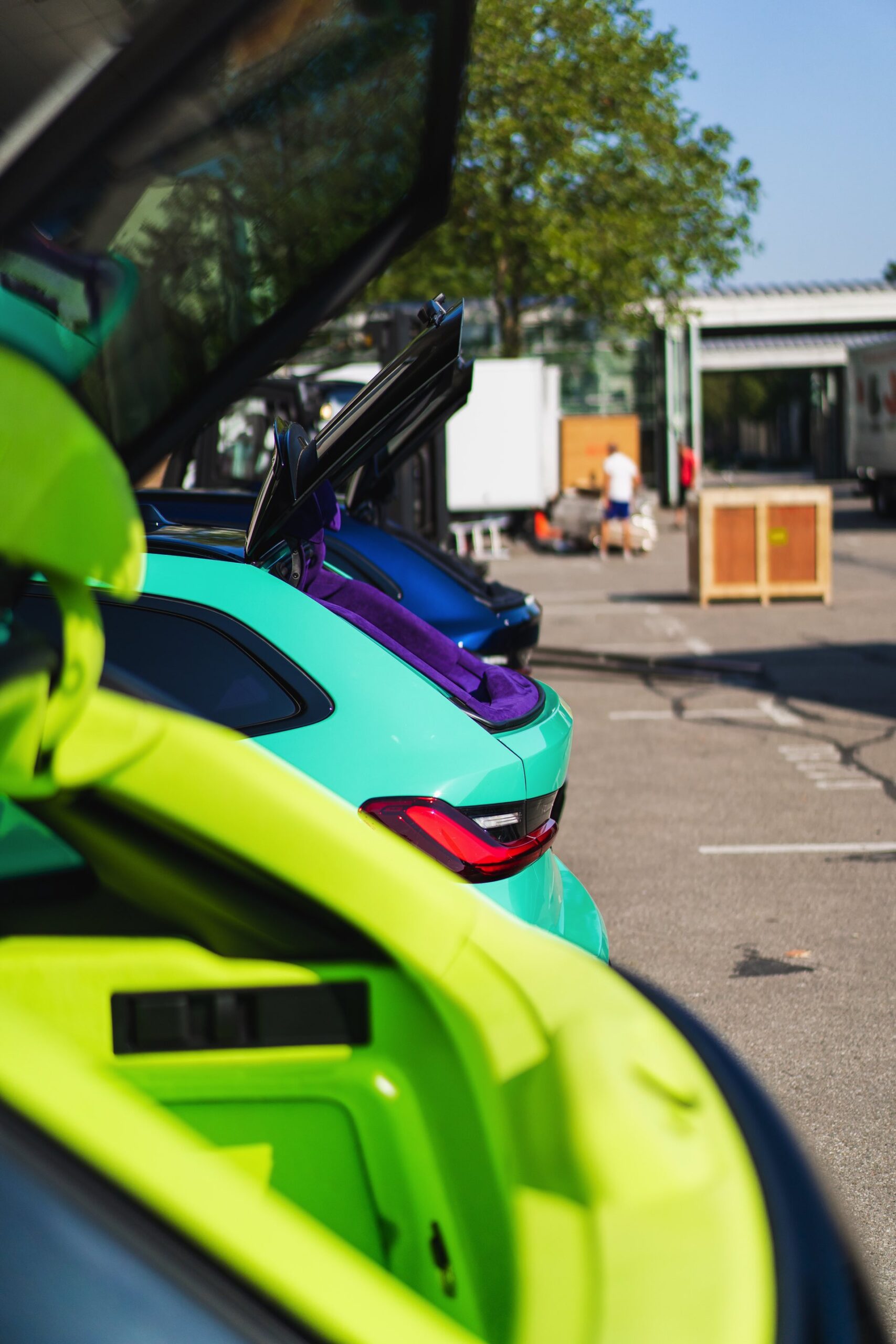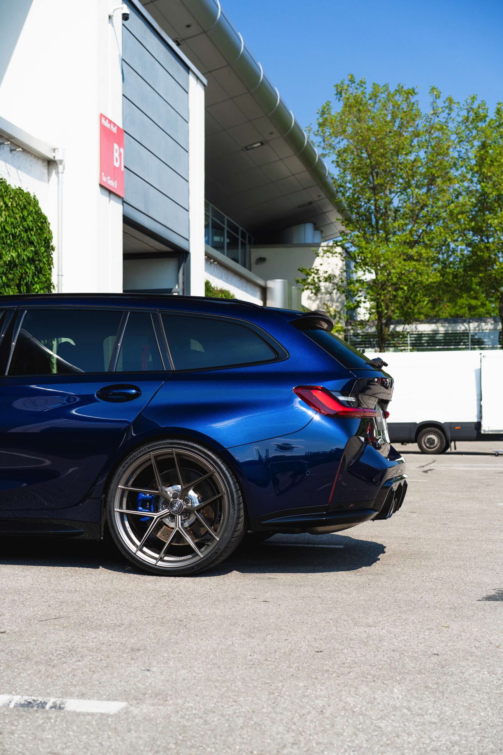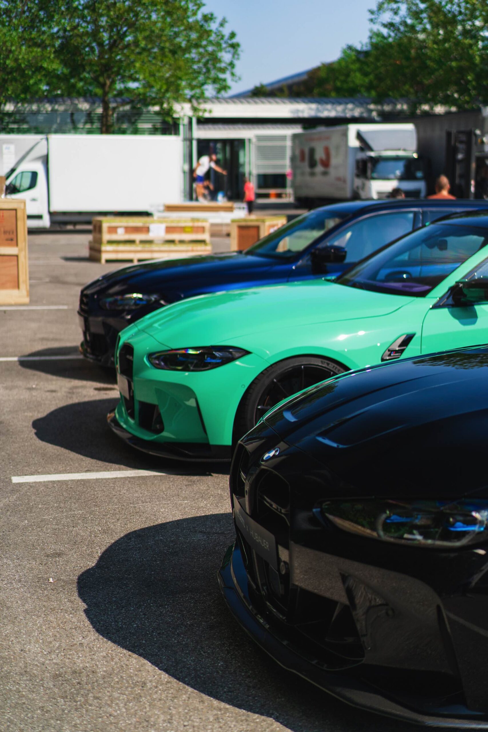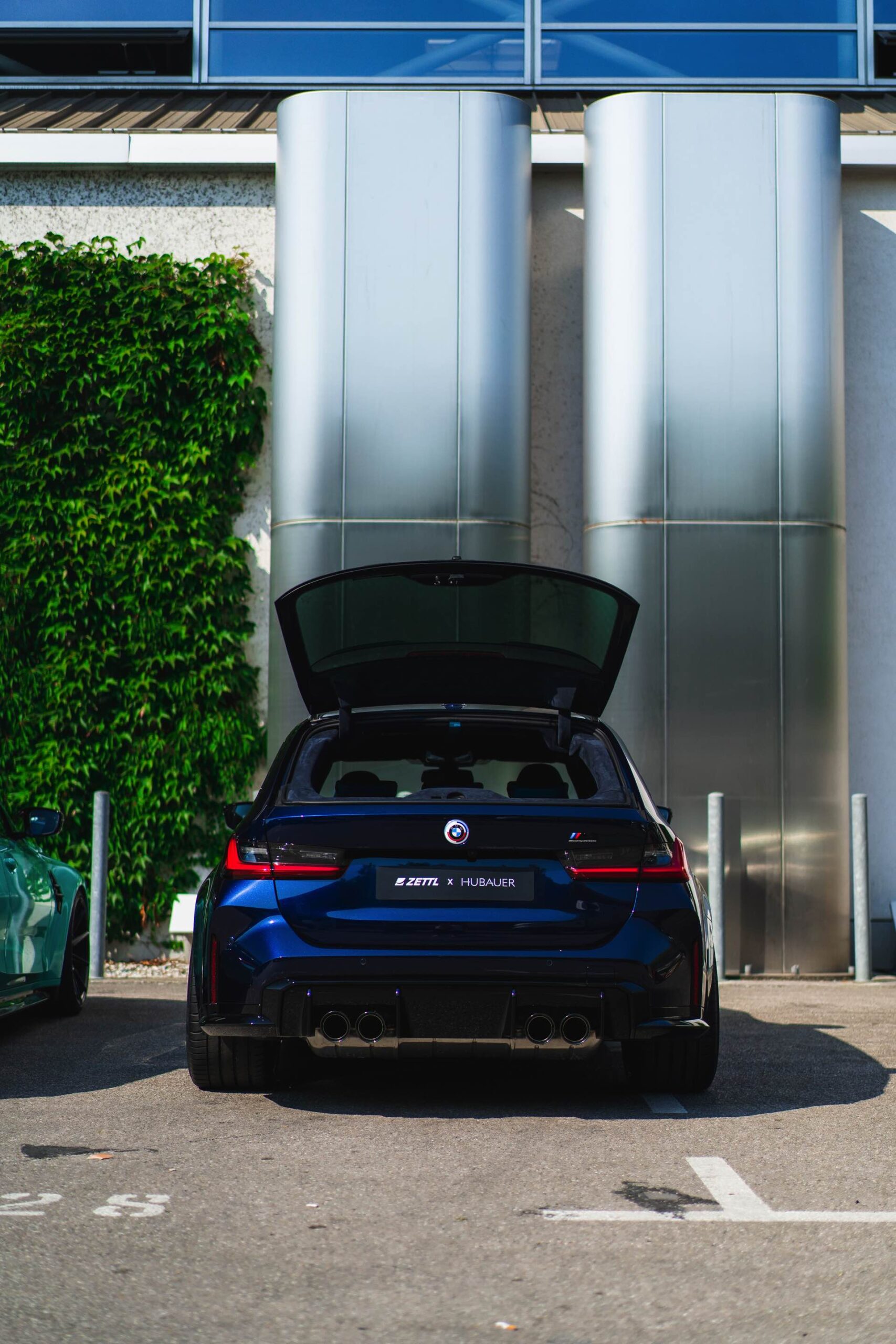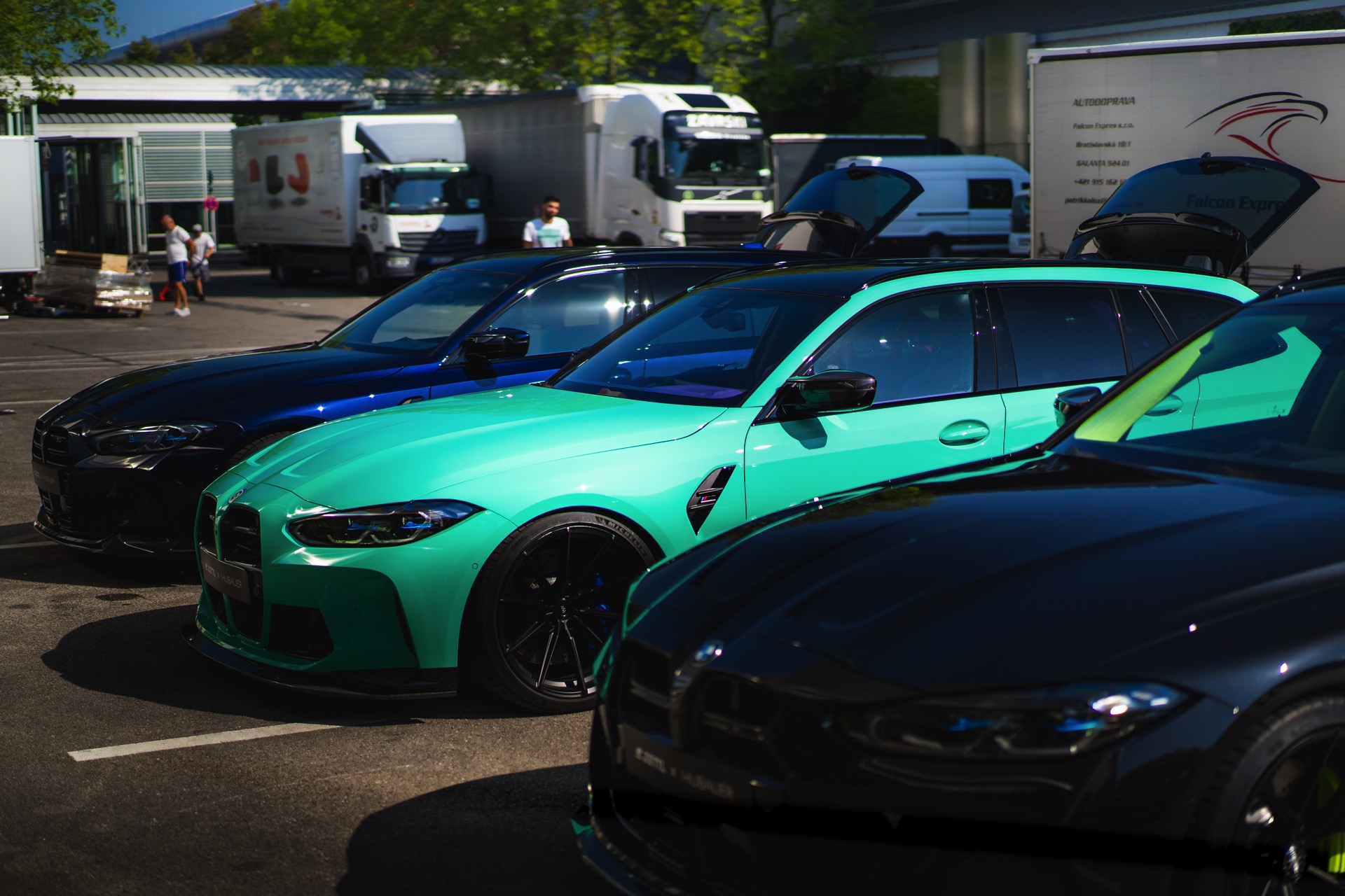 Bei den aktuellen Exterieur-Aufnahmen zeigt sich, dass der Innenraum mit in einer markanten Farbe wie ‘verde scandal’ auch zufällig vorbeilaufende Betrachter erreicht, sobald sich eine Tür oder auch nur die separat zu öffnende Heckscheibe des M3 Touring öffnet. Außerdem wird klar, wie speziell die drei bereits ab Werk 510 PS starken Kombis auch äußerlich auftreten – wobei der G81 von JP Performance mit seiner Individual-Lackierung in Mint zweifellos die meiste Aufmerksamkeit erregen dürfte.
