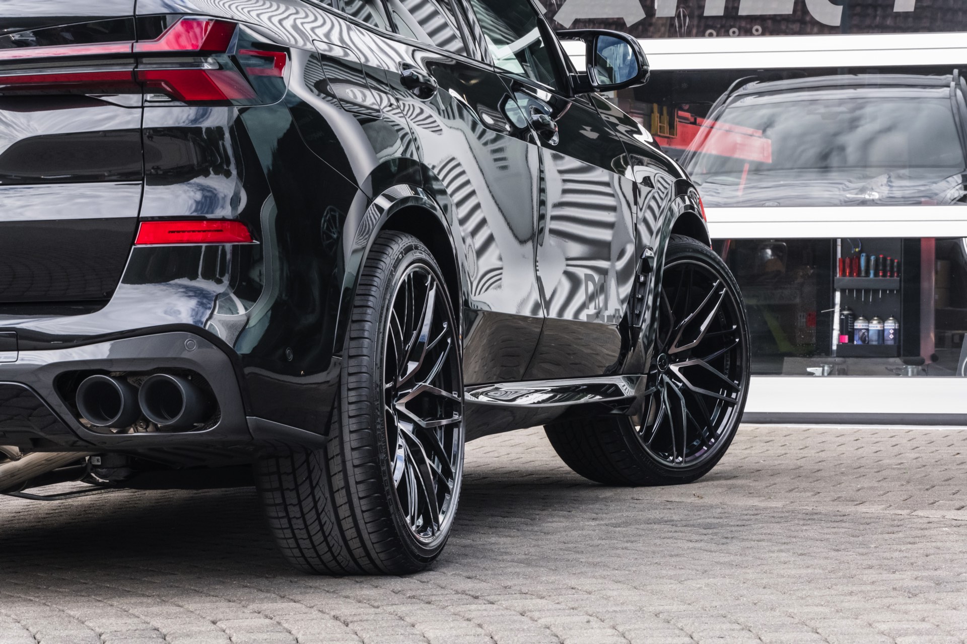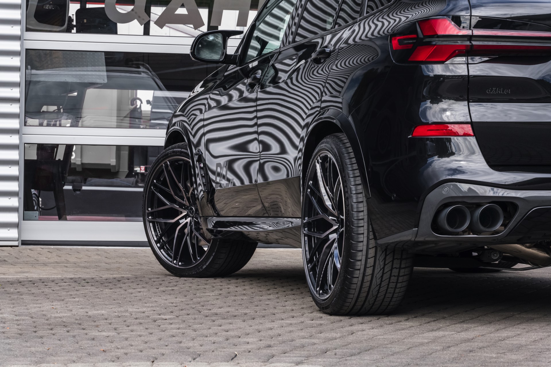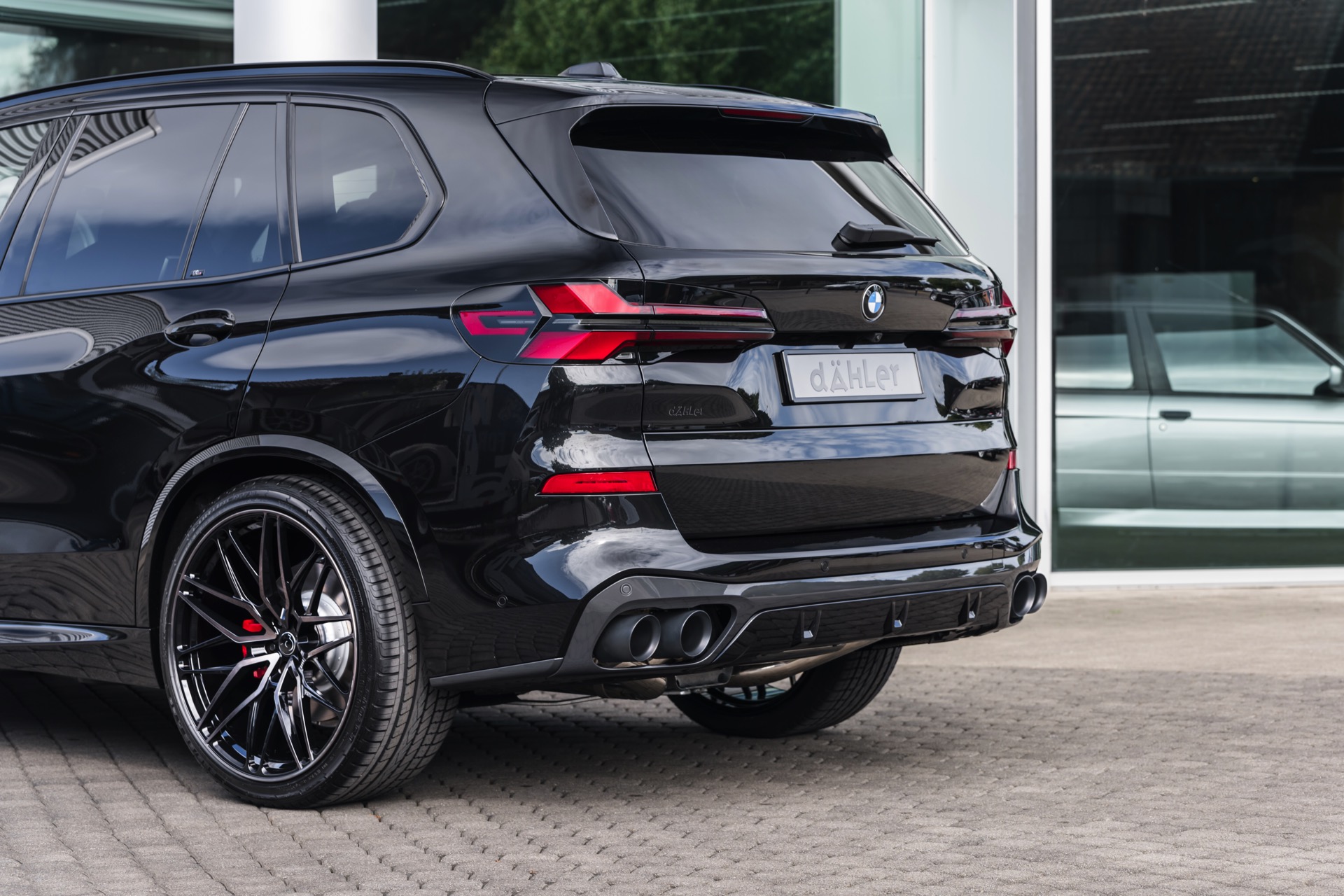Neben der gesteigerten Leistung umfasst das Dähler-Tuning auf Wunsch auch eine Edelstahl-Abgasanlage mit vier 100-Millimeter-Endrohren und markanterem Sound – für den Export auch mit einer CAN-Bus-Steuerung für die Abgasklappen. Noch wichtiger für die nachgeschärfte Optik sind aber sicher die 23 Zoll großen Schmiedefelgen im Design CDC2: Die rundum mit 305 Millimeter breiten Reifen bestückten Felgen füllen selbst die riesigen Radhäuser des BMW X5 locker aus und sind für alle Individualisierungs-Fans in verschiedenen farblichen Finishs erhältlich.