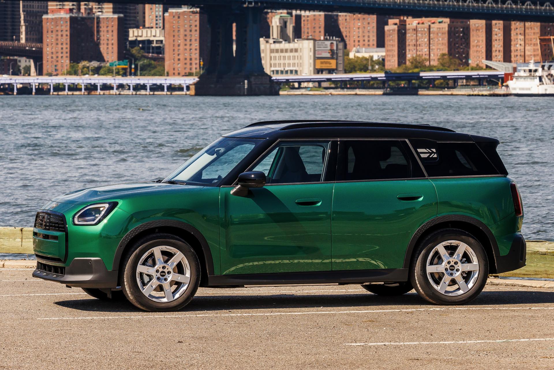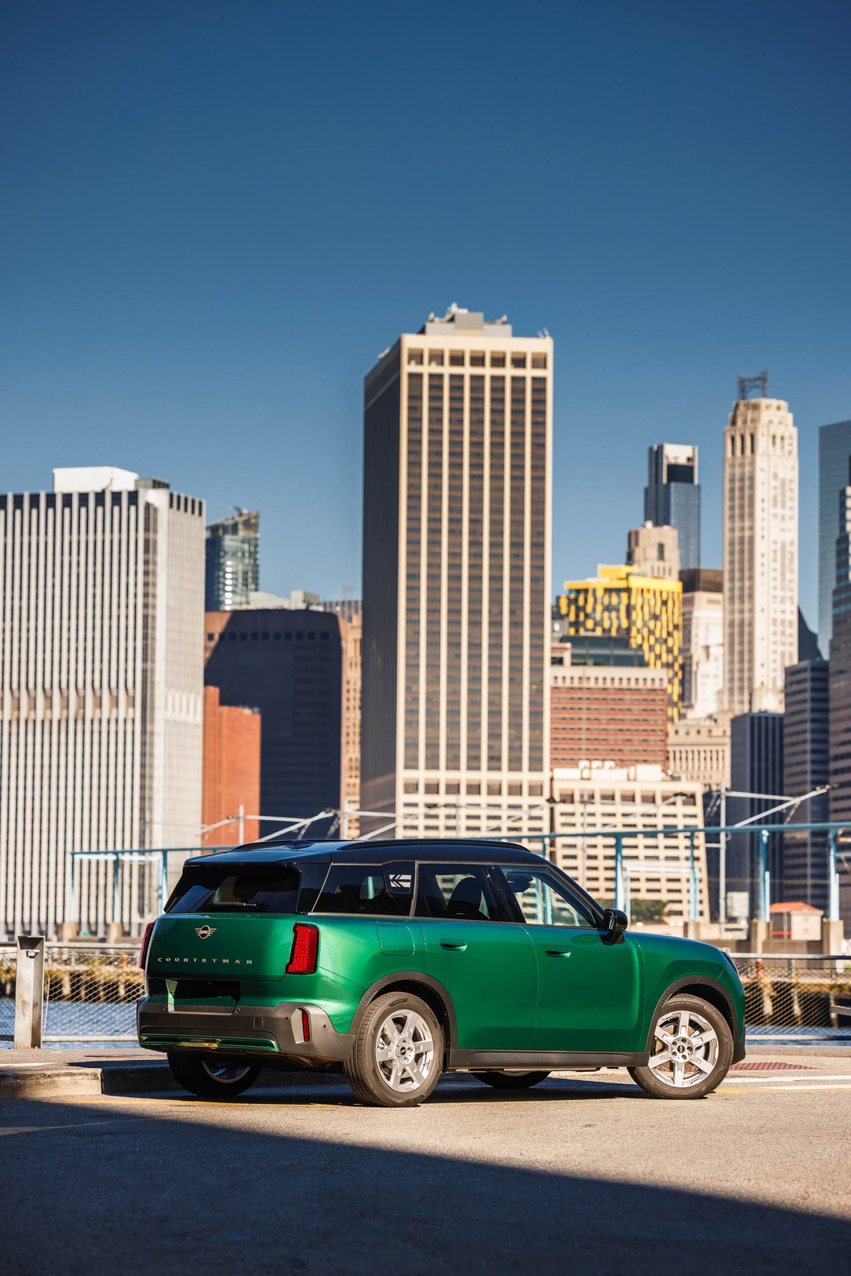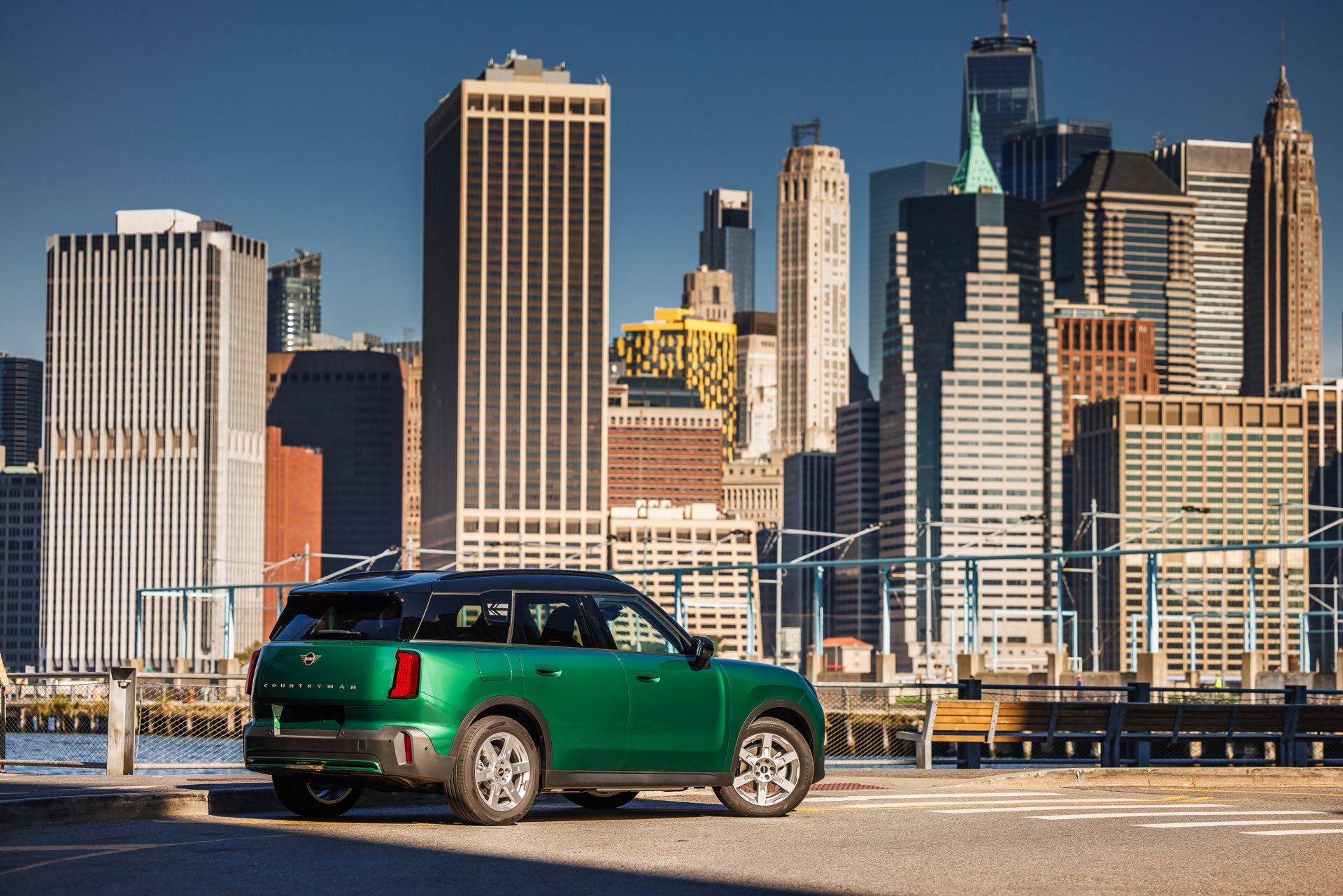 Auf den ersten Blick könnte man den neuen MINI Countryman (U25) vor der imposanten Skyline für einen “Englishman in New York” halten, aber im Fall des neuen SUV handelt es sich aller britischen Wurzeln zum Trotz um einen Deutschen: Der Countryman wird ausschließlich im BMW Werk Leipzig gebaut und soll von dort aus in alle Welt exportiert werden. Die neuen Fotos zeigen das City-SUV erneut in British Racing Green, schließlich ist Grün im Kontext der US-Pemiere bei der Climate Week NYC genau die richtige Farbe.