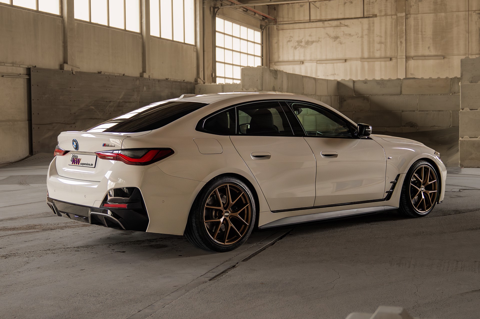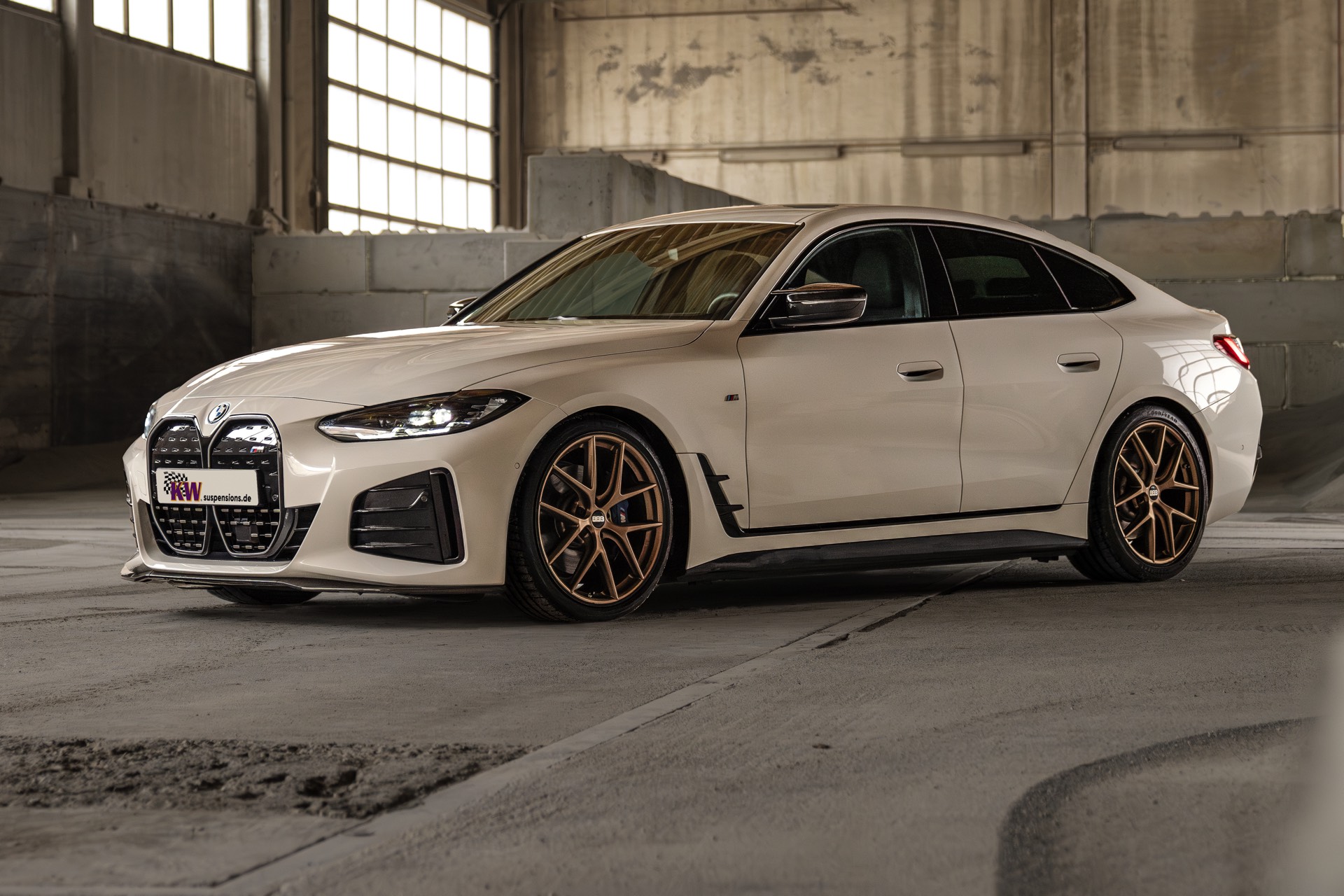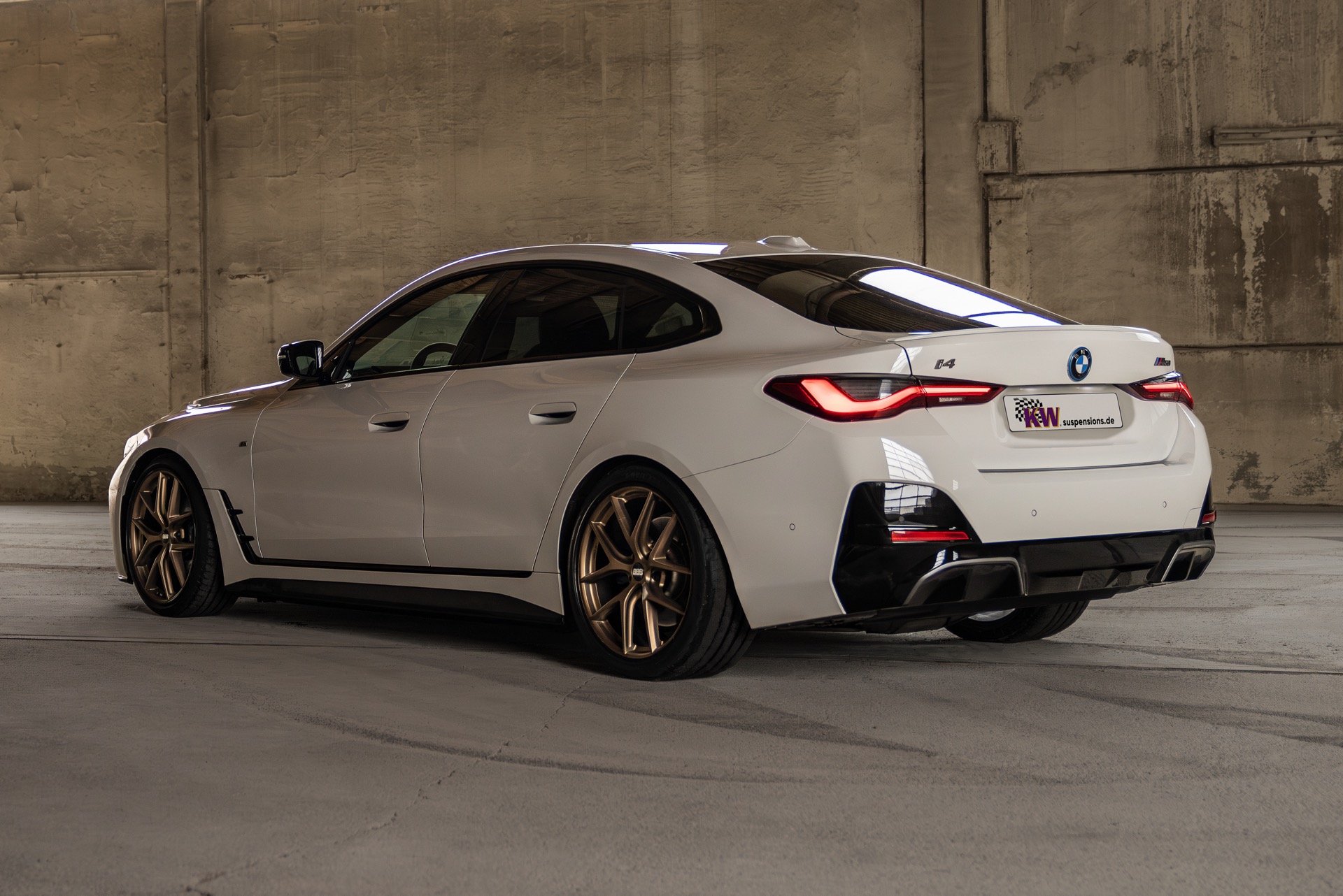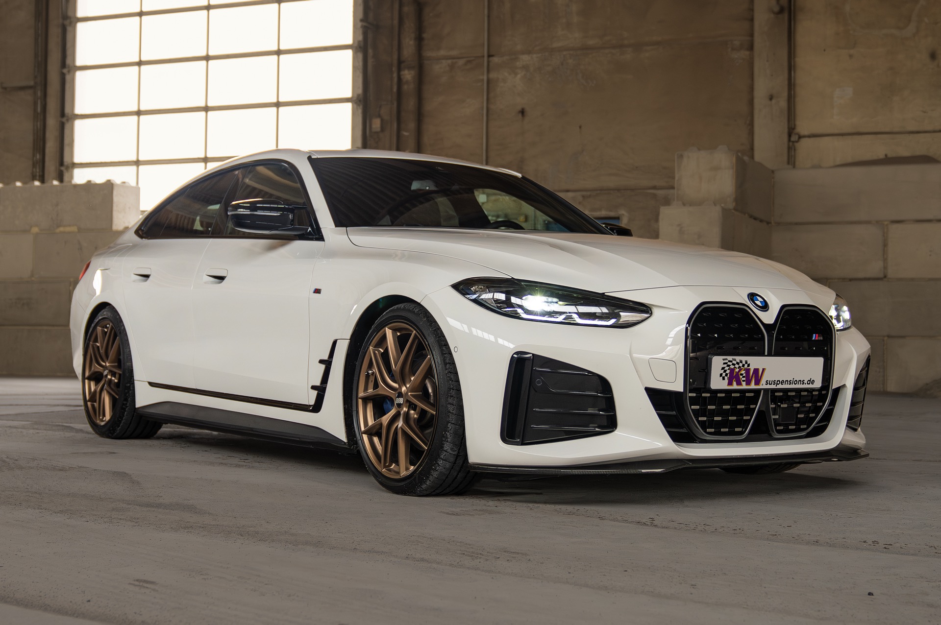 Wer seinen BMW i4 M50 etwas näher an die Topmodelle heranrücken will, erhält nun Unterstützung von KW Automotive: Die Fahrwerks-Experten aus Fichtenberg bieten ihr KW DDC Plug&Play Gewindefahrwerk nun auch für das BMW i4 M50 Gran Coupé mit seinem serienmäßigen Luftfahrwerk an der Hinterachse an. Mit dem Fahrwerk lässt sich je nach persönlichen Vorlieben bei Fahrverhalten und Optik eine stufenlose Tieferlegung um 20 bis 40 Millimeter vorn und 15 bis 35 Millimeter hinten realisieren, sodass auch die Felgen noch besser zur Geltung kommen. "