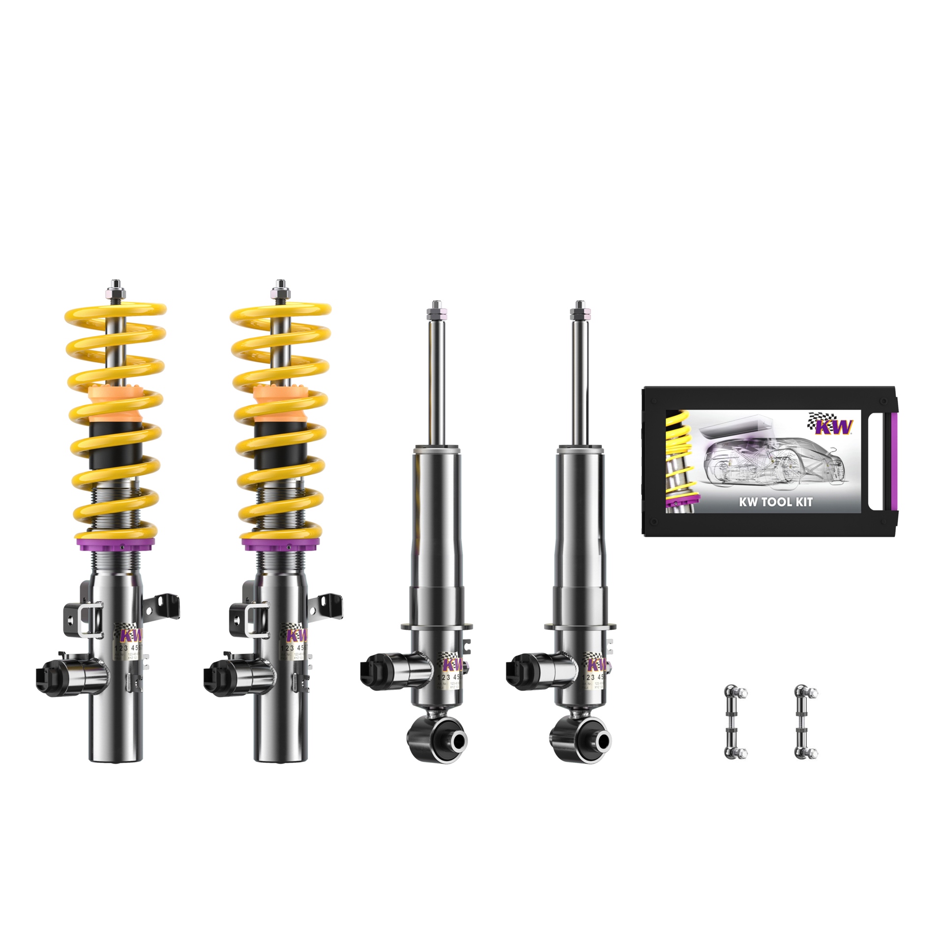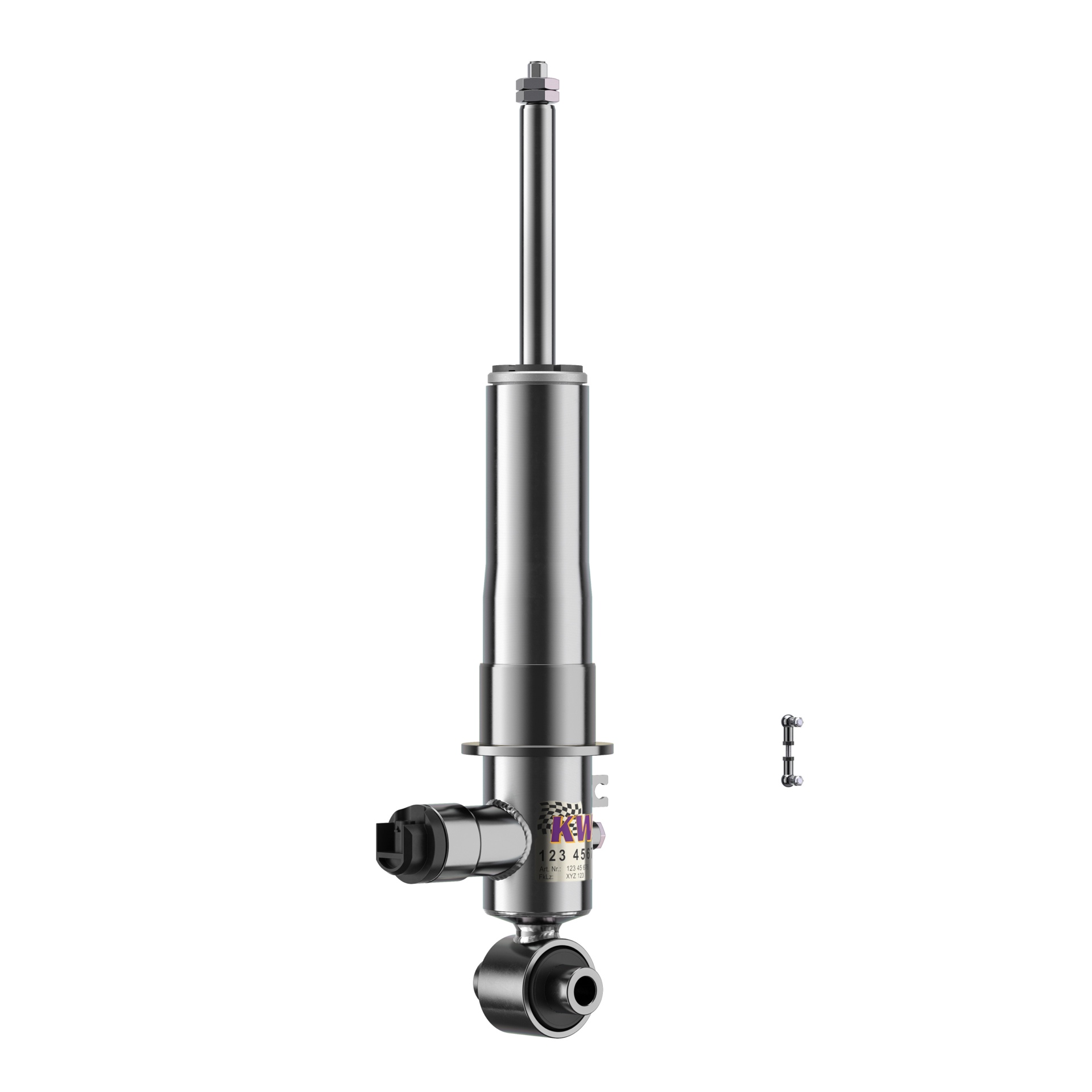 Florian Johann (KW Brand Manager): “Genau für solche Fahrzeuge mit Luftfederung bieten wir seit diesem Jahr verstärkt Komplettfahrwerke an. So haben wir für das vollelektrische i4 M50 Gran Coupé neue adaptive KW DDC Hinterachsdämpfer konstruiert. Die gesamte Auslegung des Dämpfers mit seinem elektromagnetischen Proportionalventil, die Kolbenstangenbestückung, der Ausfederweg sowie die gekürzten KW-Edelstahldämpfergehäuse sind für die Serienluftfederung angepasst worden.