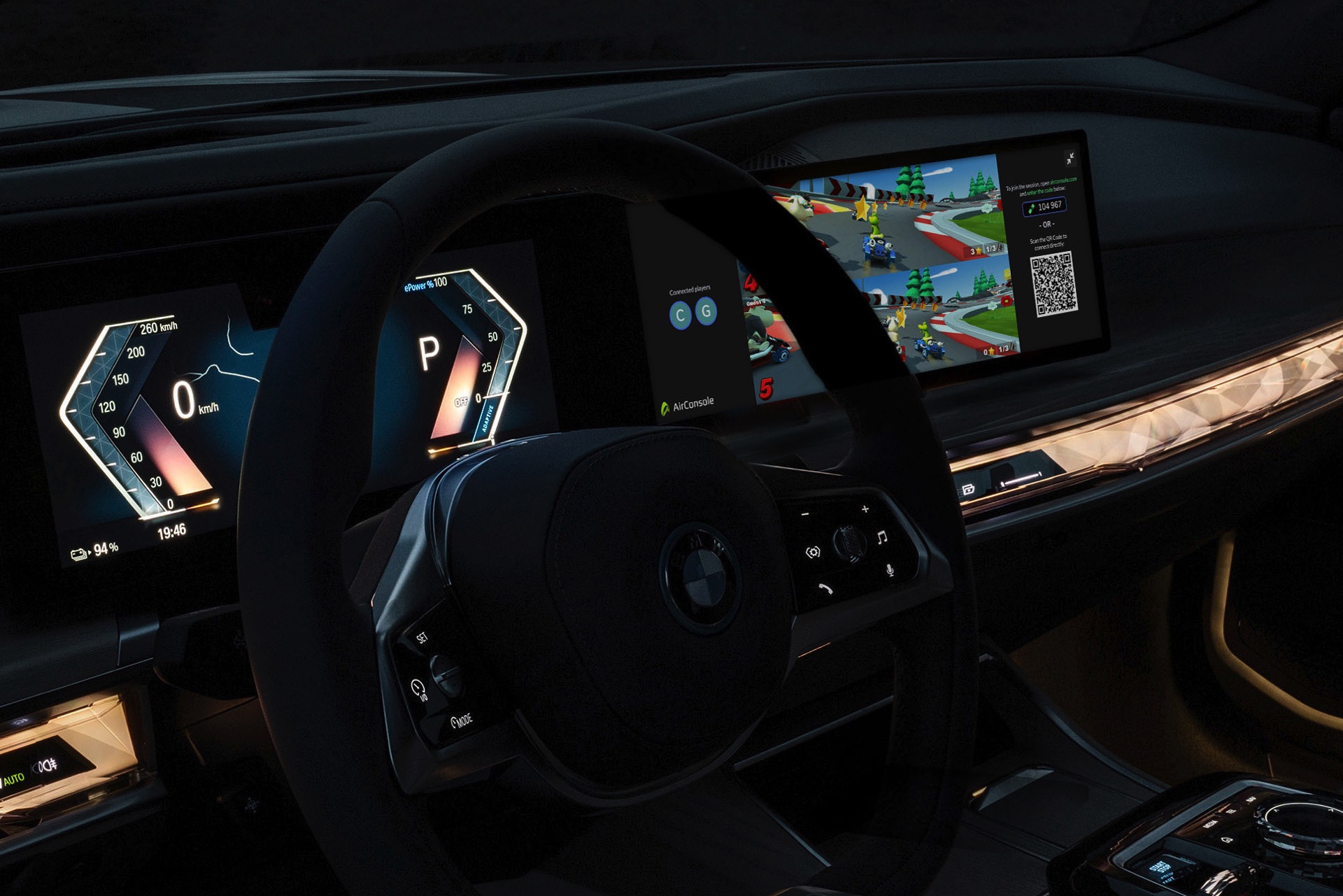 Egal ob im Stau oder beim Warten auf weitere Mitfahrer, fast jeder Autofahrer hat schon so manche langweilige Minute in seinem Auto verbracht. Für Situationen wie diese hat der neue BMW 5er (G60) die AirConsole an Bord, die ganz einfach das Spielen kleinerer Spiele auf dem großen Curved-Display erlaubt. Als Controller dient dabei das eigene Smartphone, das durch den Scan eines QR-Codes mit dem Infotainment-System des Fahrzeugs verbunden wird. Der eigentliche Clou: Auf der AirConsole kann auch im Multiplayer-Modus gegeneinander gespielt werden, wodurch sich allen Insassen neue Entertainment-Optionen eröffnen. Theoretisch können dabei bis zu sieben Spieler gegeneinander antreten, selbst ein voll besetzter X7 überfordert die virtuelle Konsole also nicht.