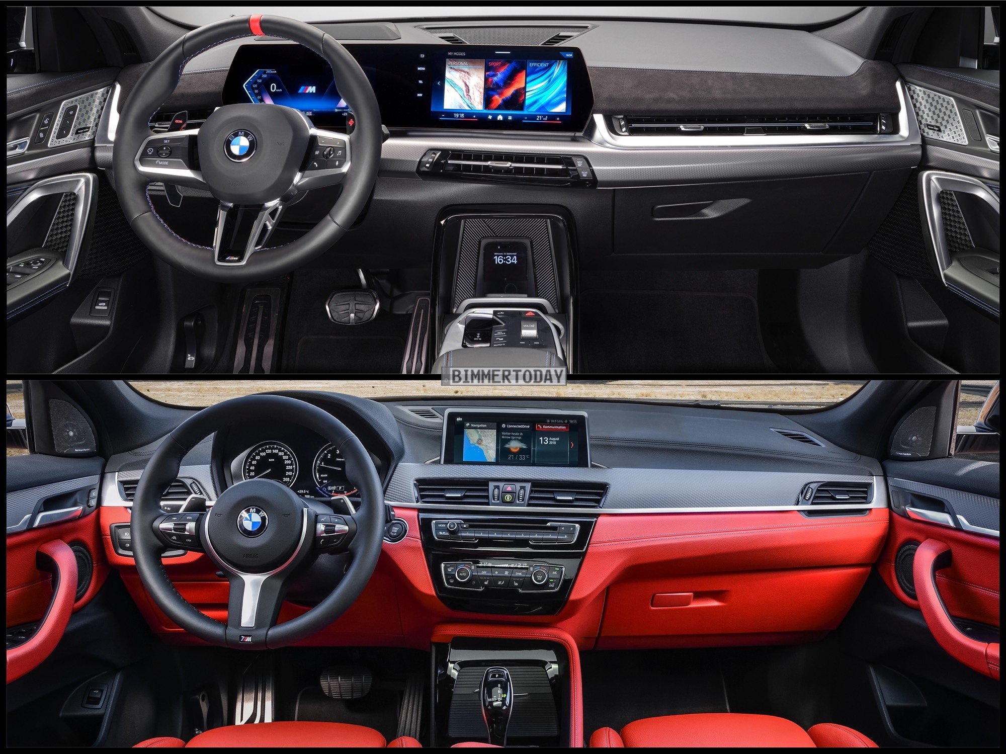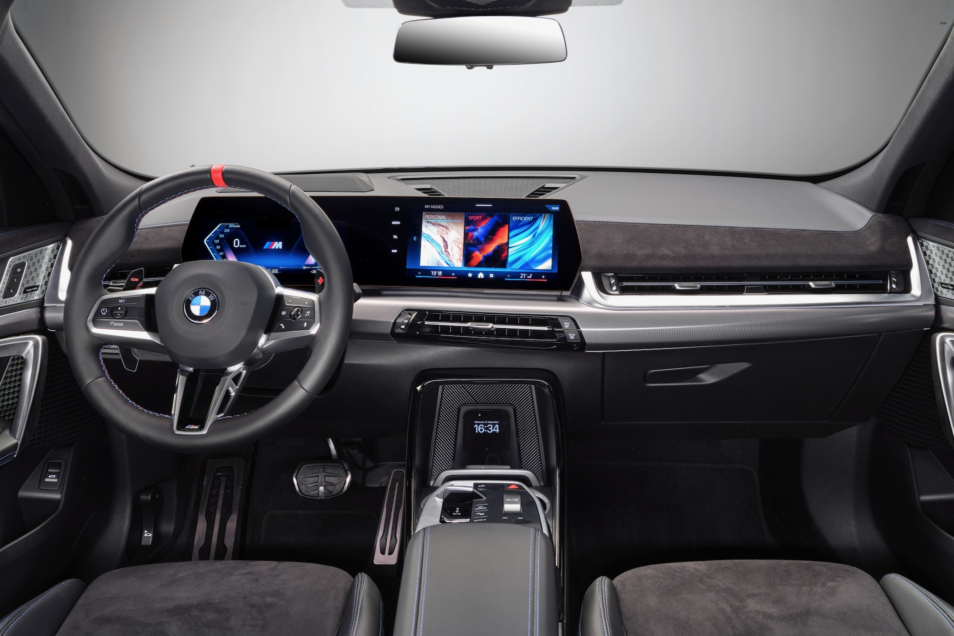 Genau wie außen sind die Unterschiede zwischen den Generationen auch im Cockpit unübersehbar. Prägend ist nun das große Curved-Display, das die beim ersten X2 auch physisch klar getrennten Bereiche von Instrumenten- und Infotainment-Anzeigen unter einem gemeinsamen Deckglas vereint. In Form des Android-basierten iDrive 9 ist außerdem ein wesentlich leistungsfähigeres und vielfältiger individualisierbares System an Bord.