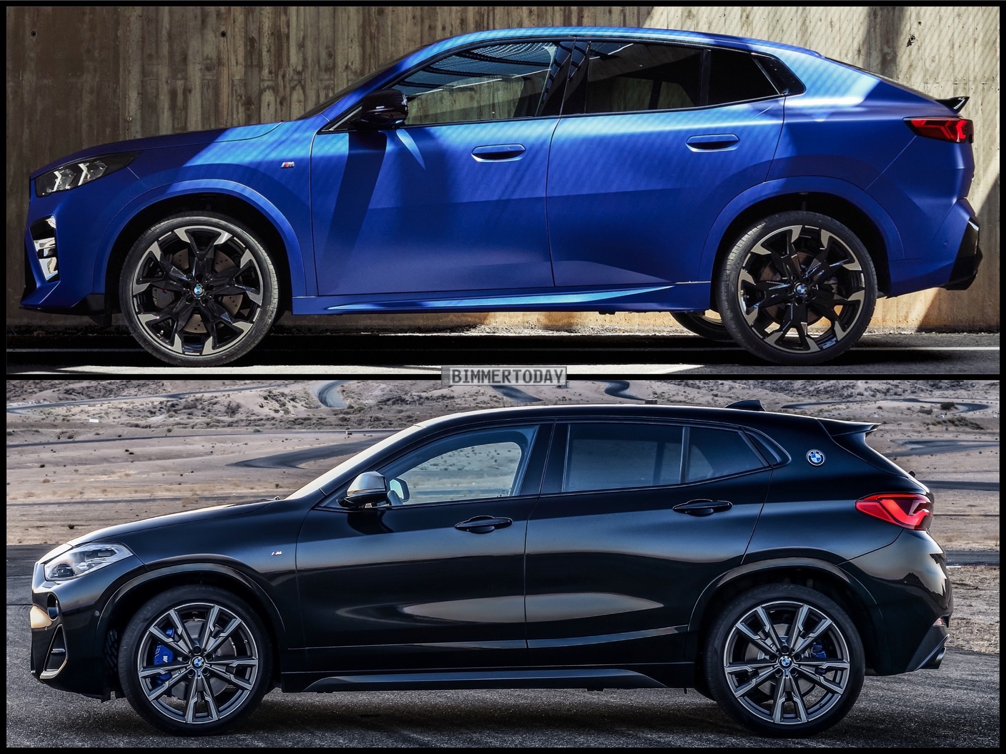 Trotz gleichem Namen und prinzipiell ähnlicher Positionierung könnten die erste und die zweite Generation des BMW X2 kaum unterschiedlicher sein: Wie unser Bild-Vergleich nochmals verdeutlicht, unterscheidet sich gerade die Seitenansicht erheblich und lässt die Neuauflage wesentlich dynamischer wirken – konnte man die erste Generation (F39) nur mit viel gutem Willen als SUV-Coupé bezeichnen, fällt der neue X2 (U10) mit seiner flach abfallenden Dachlinie ohne jeden Zweifel in diese Kategorie.