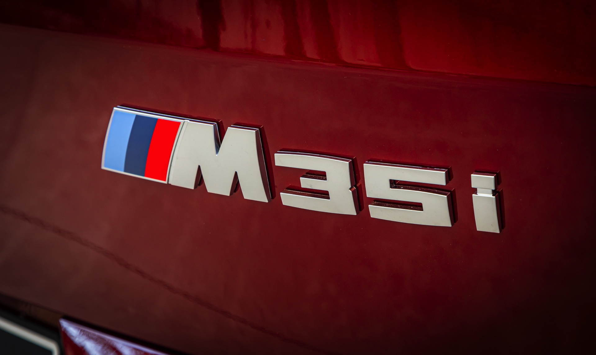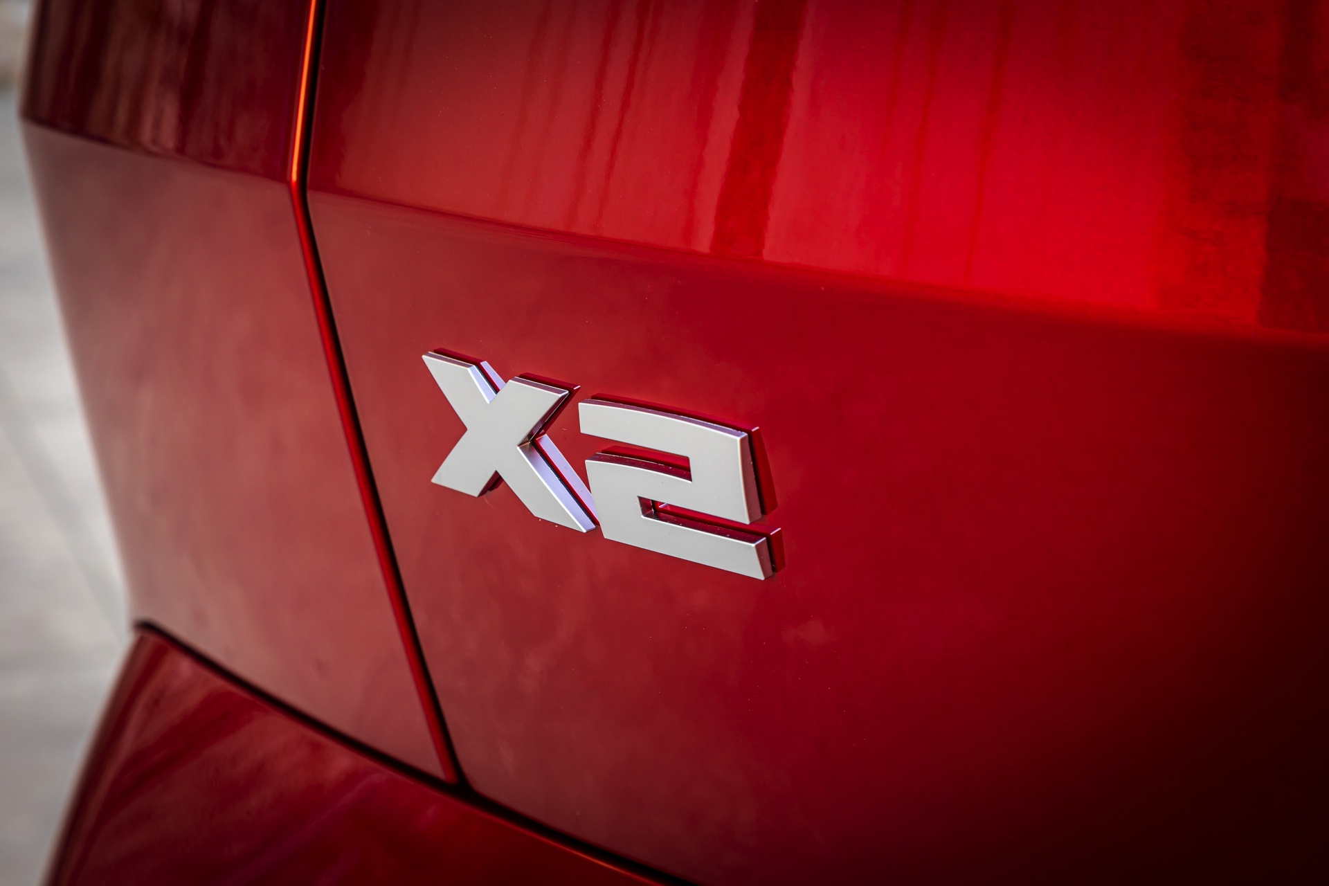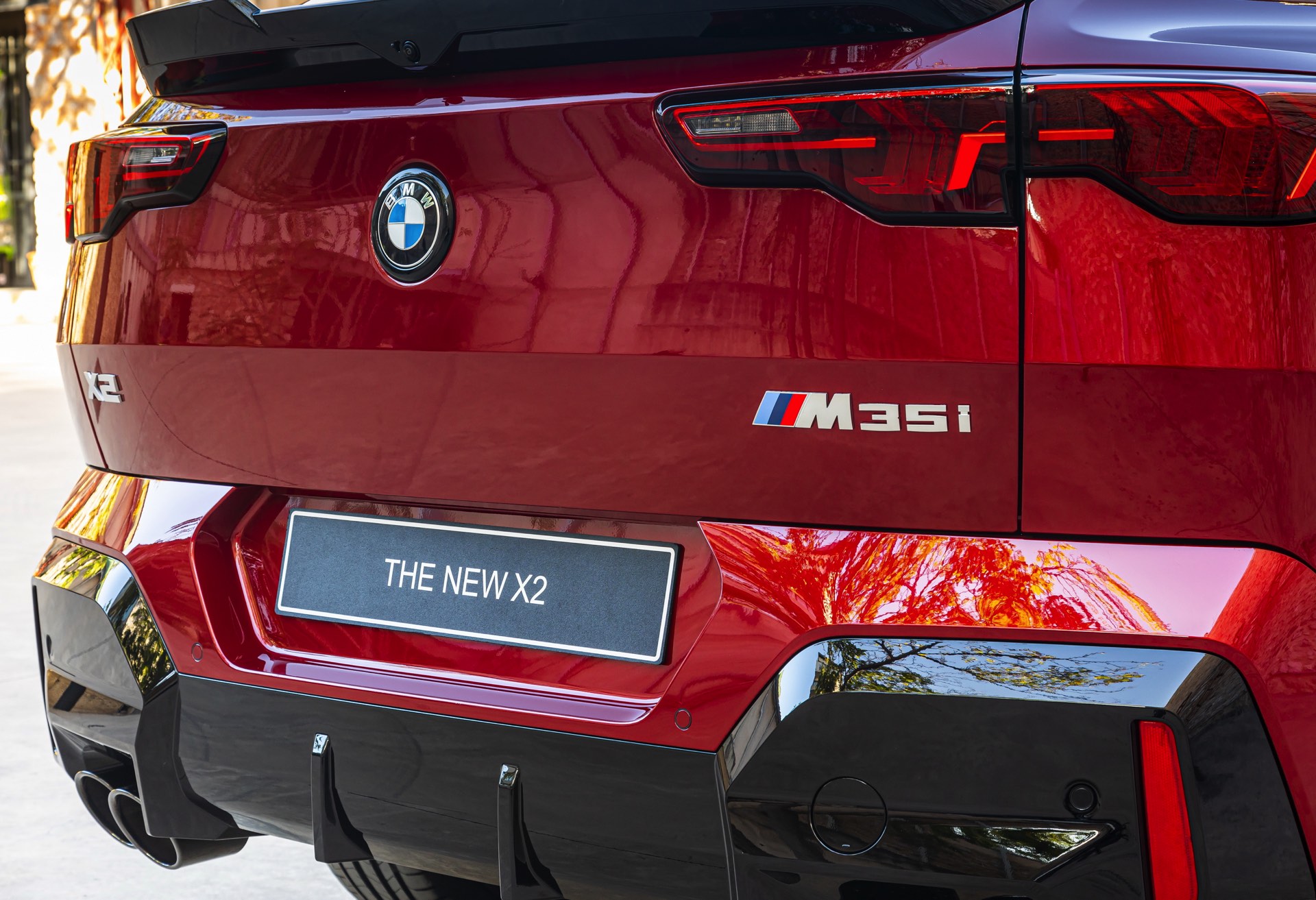 Im Vergleich zum rein elektrischen iX2 trägt der BMW X2 M35i nicht nur eine völlig eigenständige Niere mit horizontalen Streben, sondern auch exklusive M-Außenspiegel und eine in der Mitte abgeflachte Spoiler-Lippe auf der Heckklappe. Dank M Sport Pro-Paket kommt die Niere mit schwarzer Einfassung zum Einsatz, die in diesem Fall auch über die optionale “Iconic Glow”-Einfassung mit Beleuchtung verfügt. Erkennungszeichen Nummer 1 dürften für viele Betrachter aber die vier Endrohre sein, die den X2 M35i nicht nur vom iX2 abgrenzen, sondern auch von den schwächeren X2-Modellen mit Verbrennungsmotor: Auch die Einstiegsmodelle X2 sDrive20i und X2 sDrive18d verzichten auf sichtbare Endrohre. "