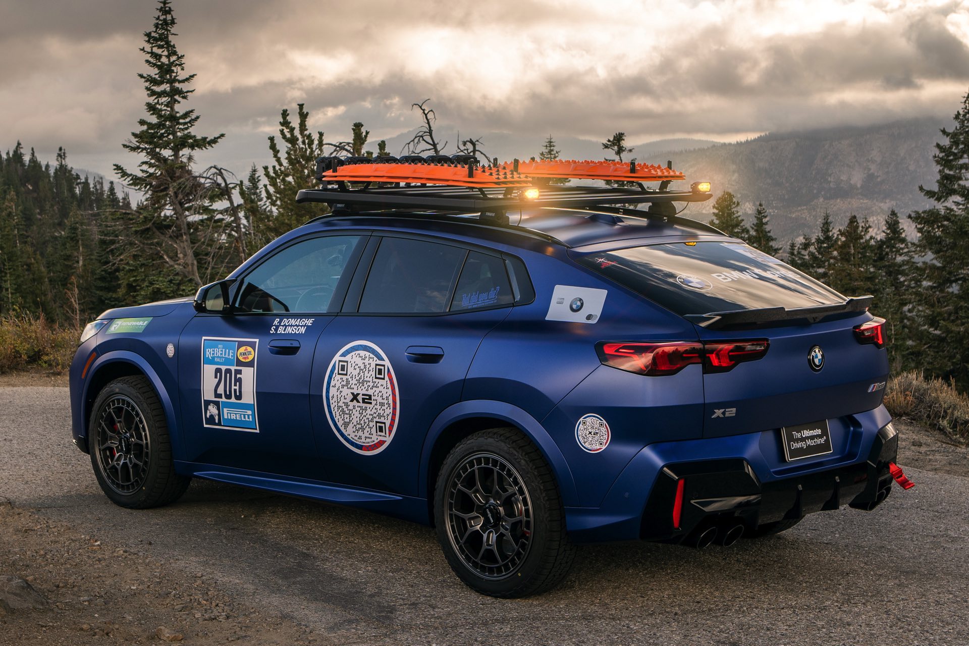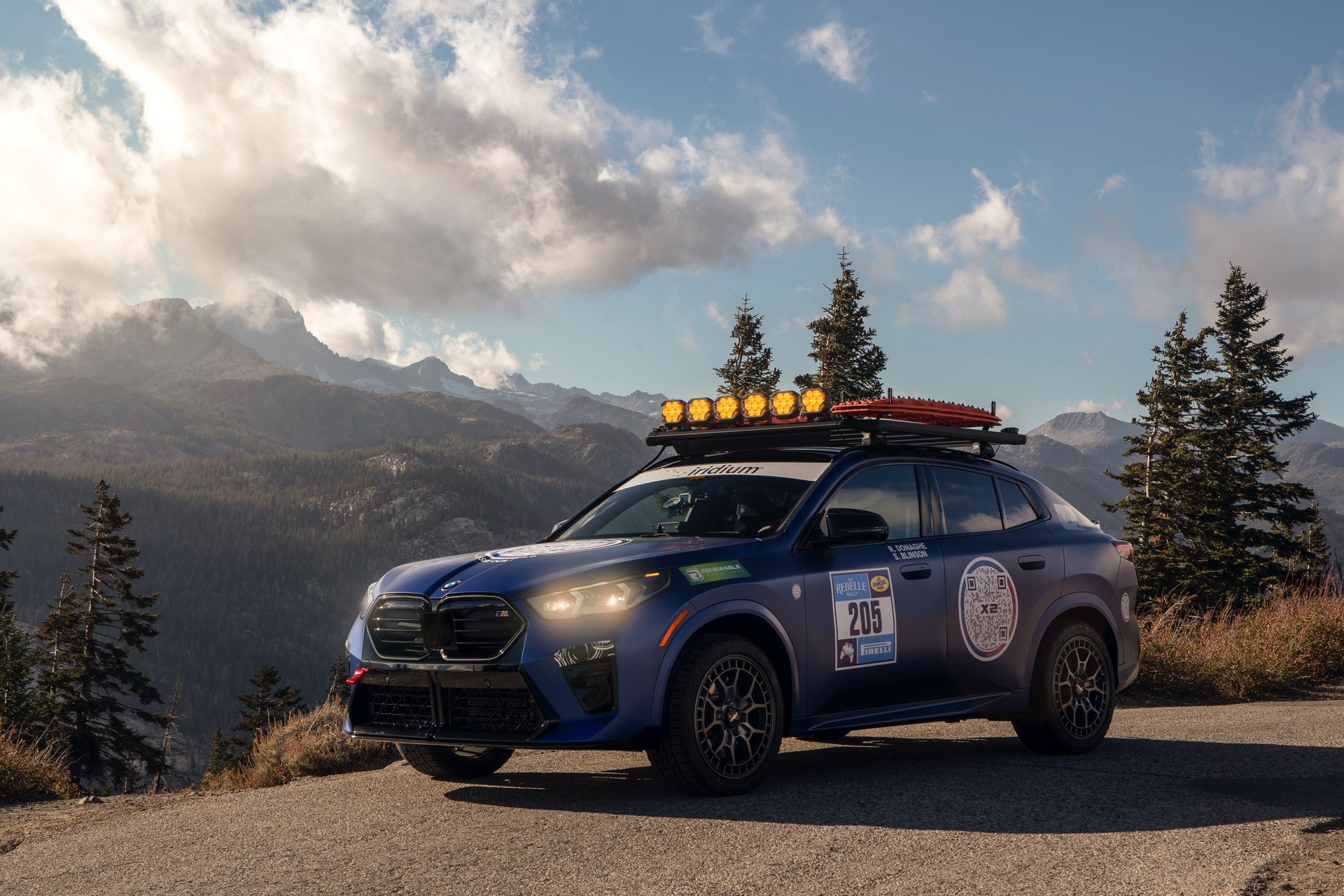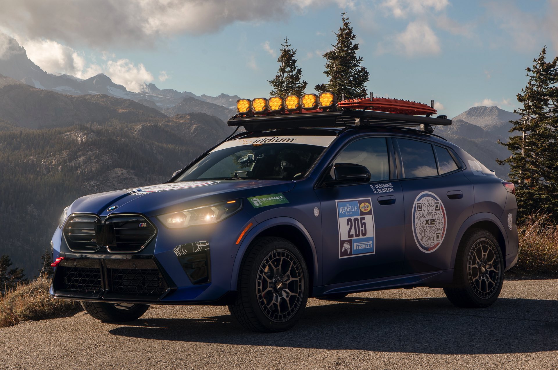 Für den Einsatz bei der Rebelle Rally hat der BMW X2 M35i lediglich einige kleinere Modifikationen erhalten, die im Wesentlichen der Sicherheit dienen: Der in Regensburg eigentlich eher für den Asphalt-Dschungel als für ausgedehnte Offroad-Einsätze gebaute X2 erhält ZMO-M-Räder von Rotiform, auf denen robuste Falken Wildpeak AT Trail-Reifen montiert sind. Auf dem Dach sind eine Träger-Plattform von Thule sowie zusätzliche Lichttechnik von Morimoto verbaut, die gerade bei Dämmerung und Dunkelheit hilfreich sein dürfte. "