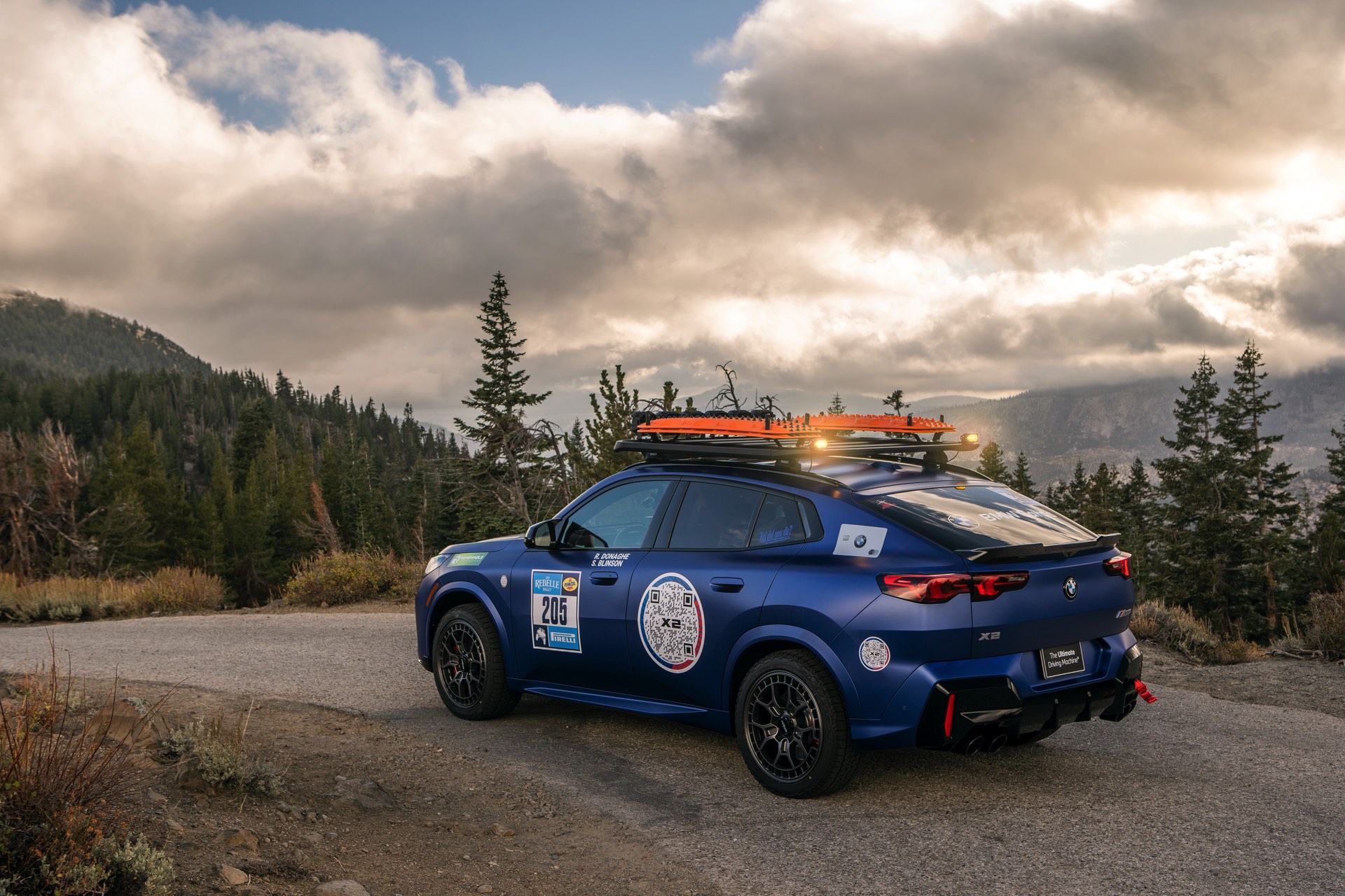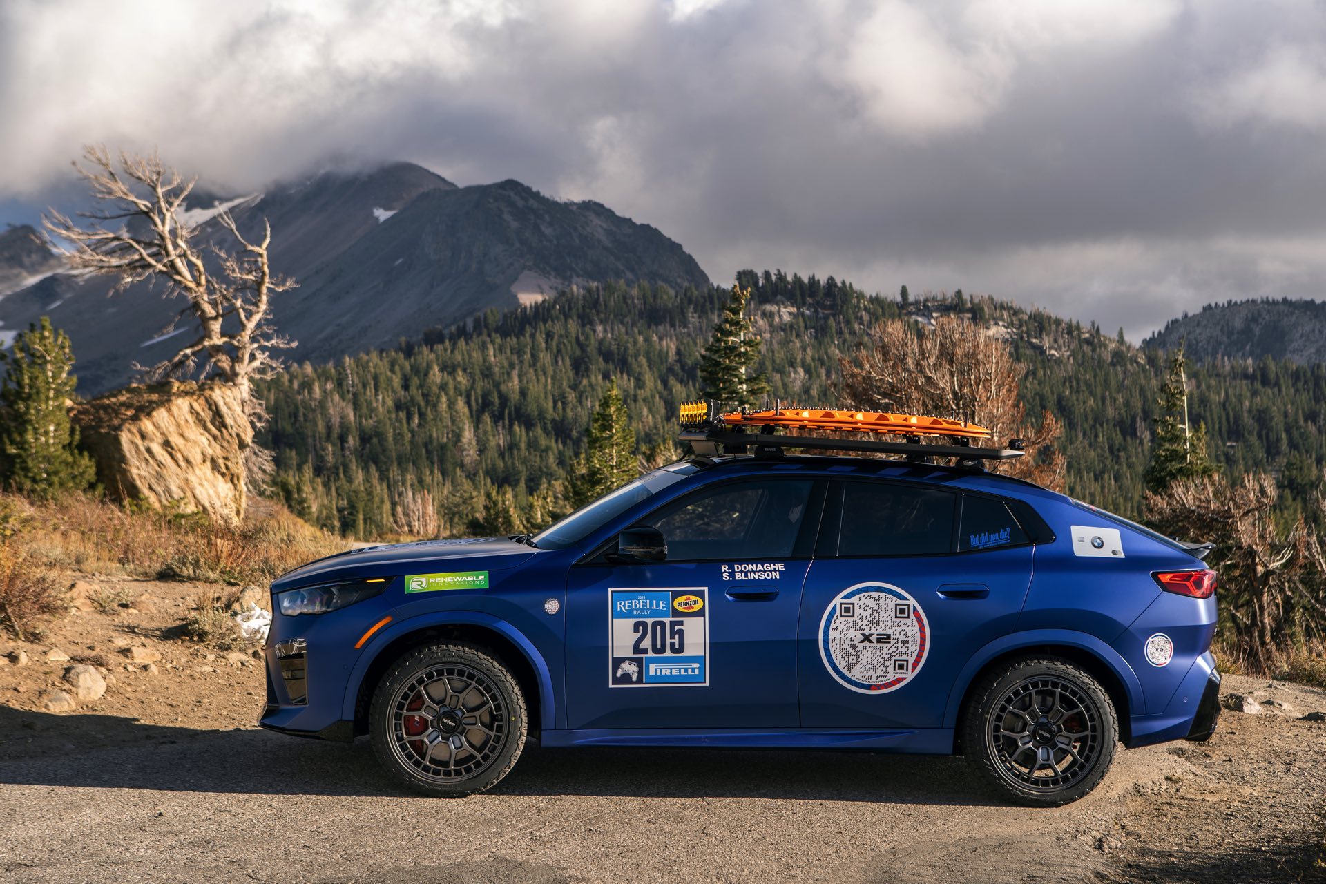 Am Steuer des BMW X2 M35i sitzen mit Rebecca Donaghe und Sedona Blinson zwei Fahrerinnen, die die Rallye bereits aus früheren Jahren bestens kennen. Die Fotos zeigen die Startnummer 205 mit Offroad-Zubehör und matter Lackierung in Frozen Portimao Blue, wichtiger als die Optik ist aber zweifellos das Abschneiden gegen die Rivalen X-Cross-Kategorie. In dieser Klasse tritt der neue X2 unter anderem gegen Ford Mach-E, Subaru Outback, Hyundai Santa Cruz und Kia Telluride an.