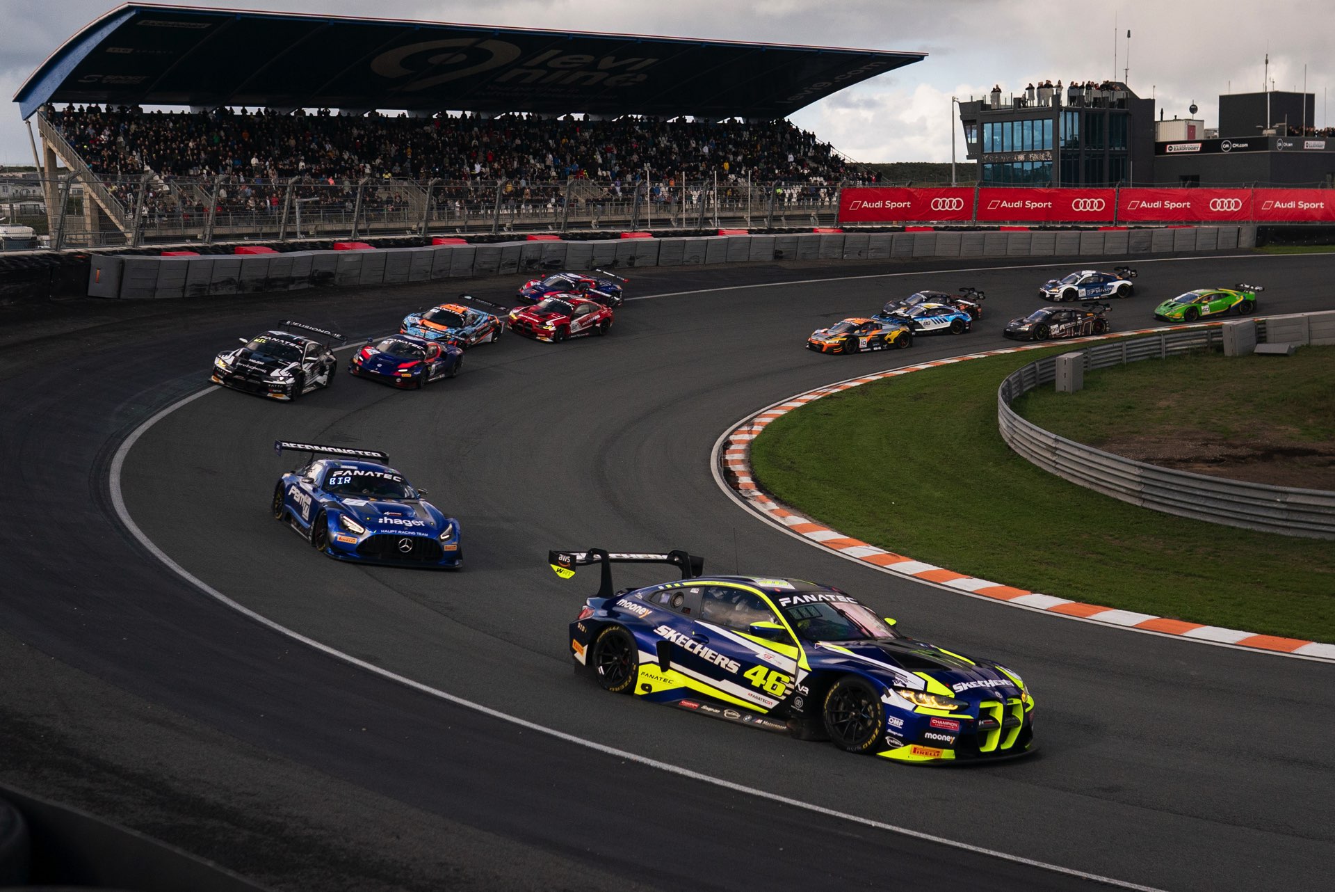 Zandvoort hätte der krönende Abschluss für die erste Saison von Valentino Rossi im BMW M4 GT3 werden können, doch am Ende verhinderte plötzlich einsetzender Starkregen den zweiten Sieg der italienischen Motorrad-Legende: Nach dem Start von Pole Position und einer starken Performance im Trockenen lagen Rossi und sein Teamkollege Maxime Martin klar in Führung, aber der unvermittelt einsetzende Regen brachte das ganze Feld auf Slicks in Verlegenheit. Zu diesem Zeitpunkt saß Maxime Martin am Steuer und er konnte den M4 nach einem kleinen Fehler auf Position 2 liegend in die Box bringen, doch in den Kampf um den Sieg konnte die Startnummer 46 von nun an nicht mehr eingreifen.