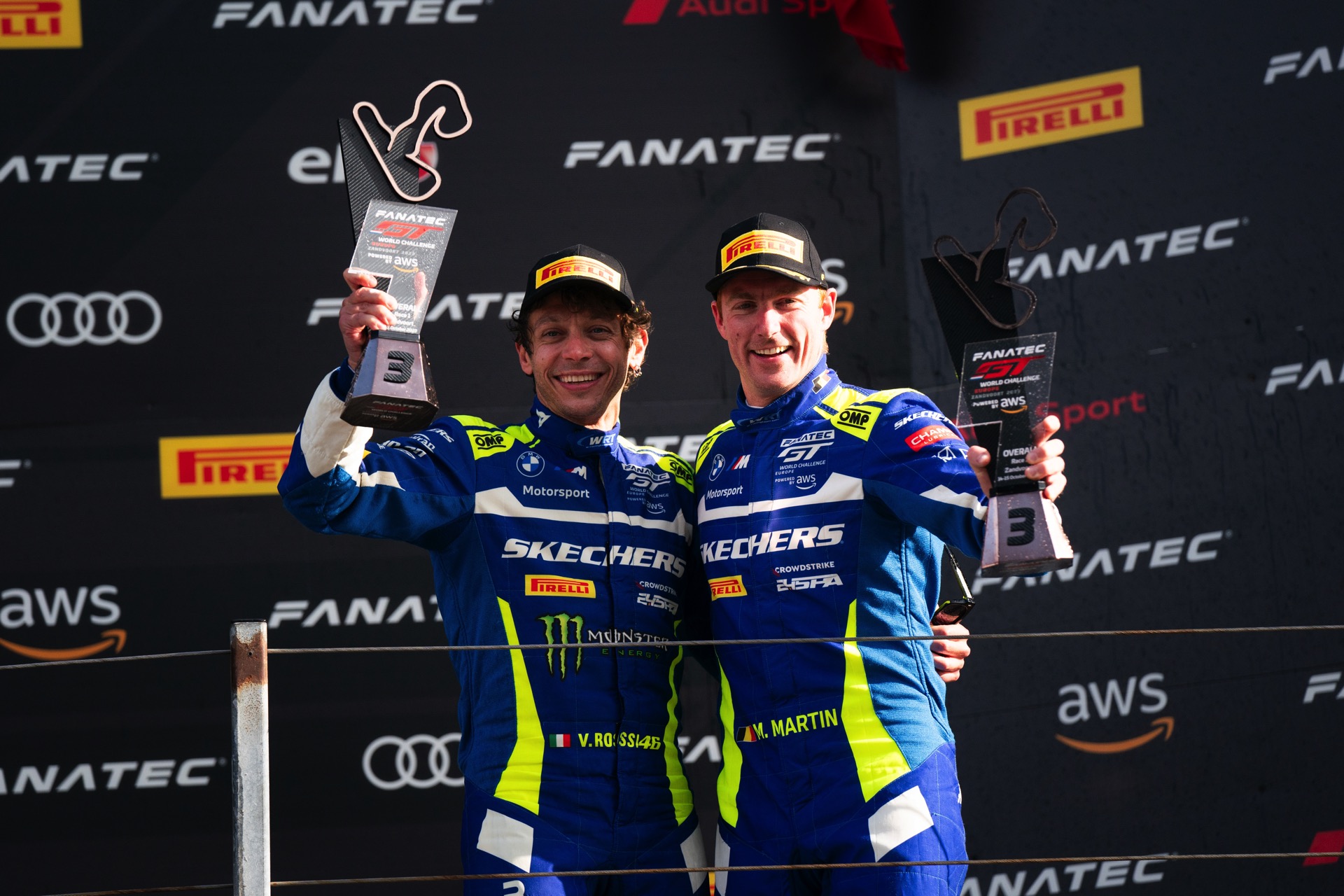 Besser lief es am Sonntag für die Teamkollegen von Rossi und Martin: Charles Weerts und Dries Vanthoor kamen im BMW M4 GT3 mit der Startnummer 32 auf dem zweiten Rang ins Ziel, das vom zweiten Platz gestartete Schwesterfahrzeug mit Startnummer 30 wurde von Niklas Krütten und Calan Williams auf Rang drei ins Ziel gefahren und brachte damit einen zweiten WRT-BMW aufs Podium – dafür gab es nicht nur viele Punkte, sondern auch den Sieg im GTWC Gold Cup und im GTWC Sprint Gold Cup für das Duo Krütten & Williams.